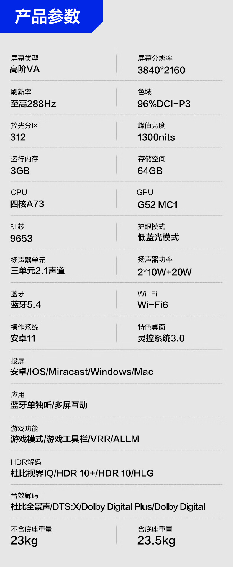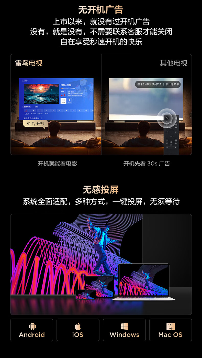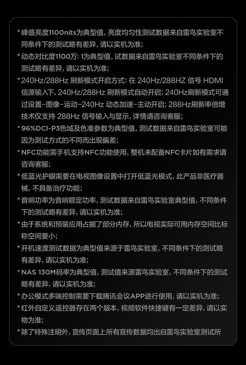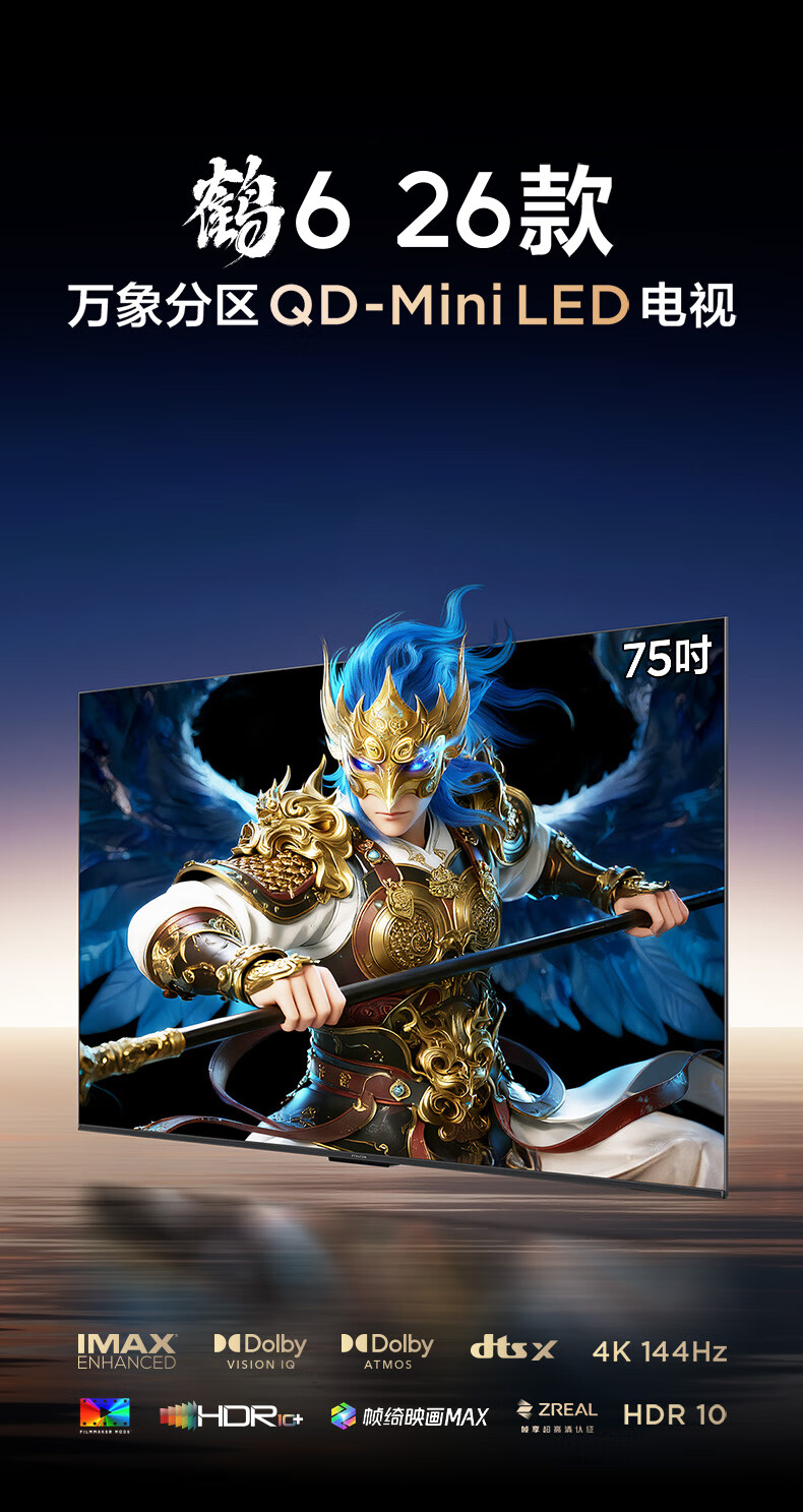 FFALCON Thunderbird TV Crane 6 26 models 75-inch Vientiane partition QD-MiniLED 1300nits high-end VA Onkyo audio 288Hz high brush 75-inch flat-screen TV