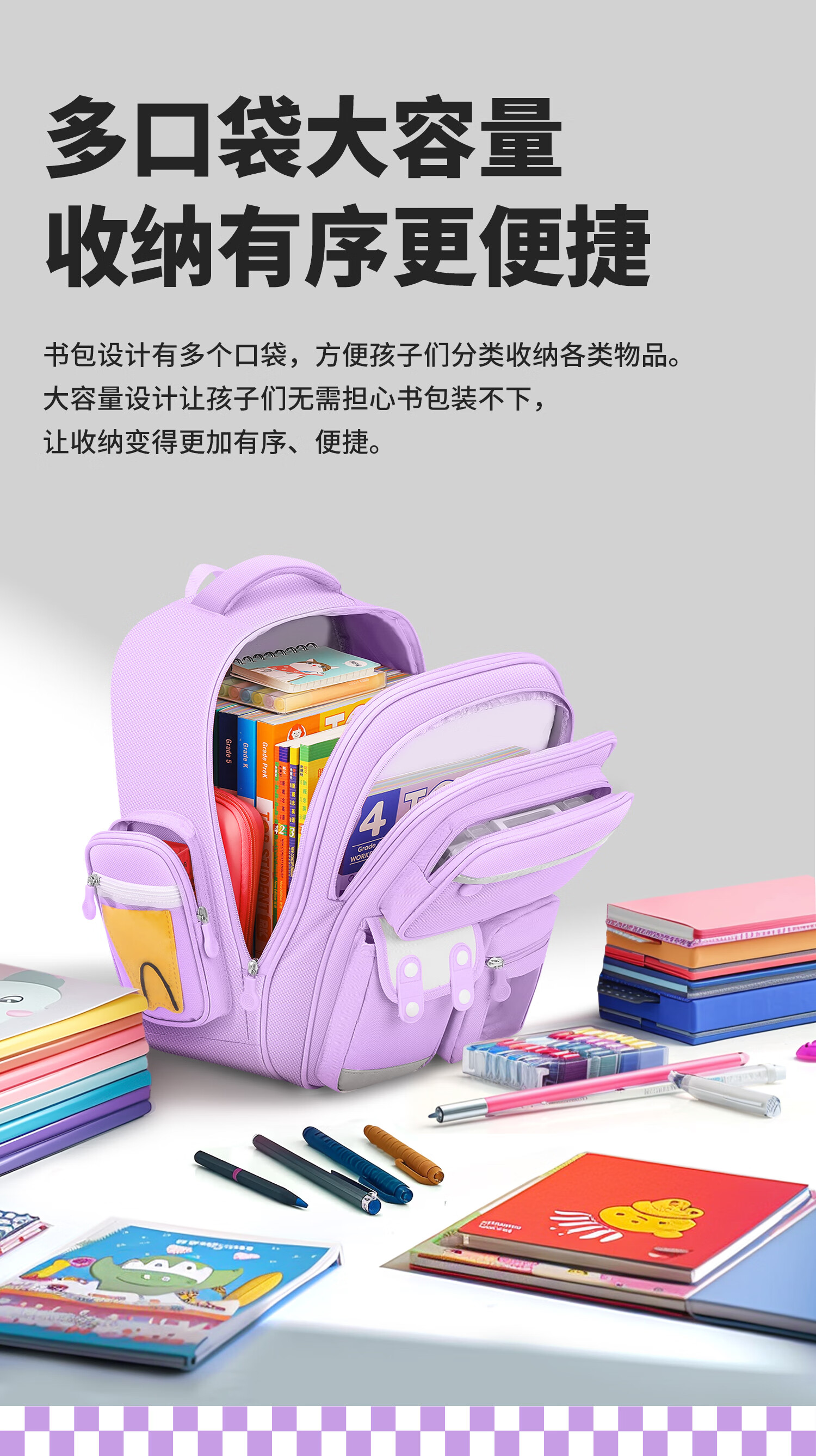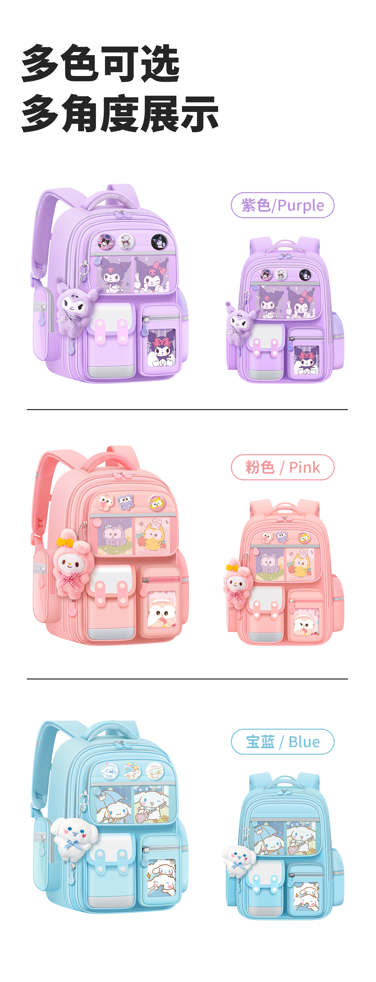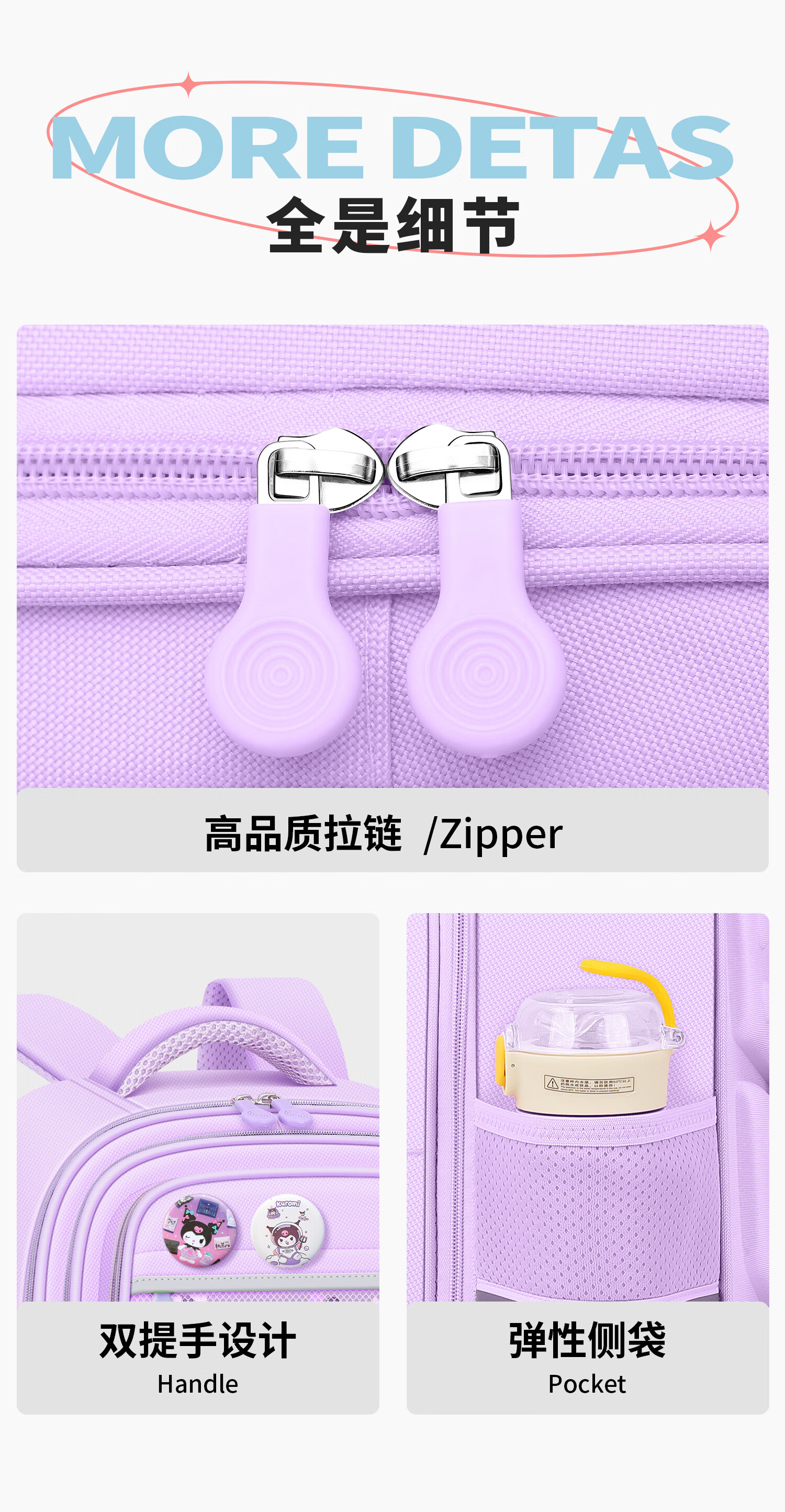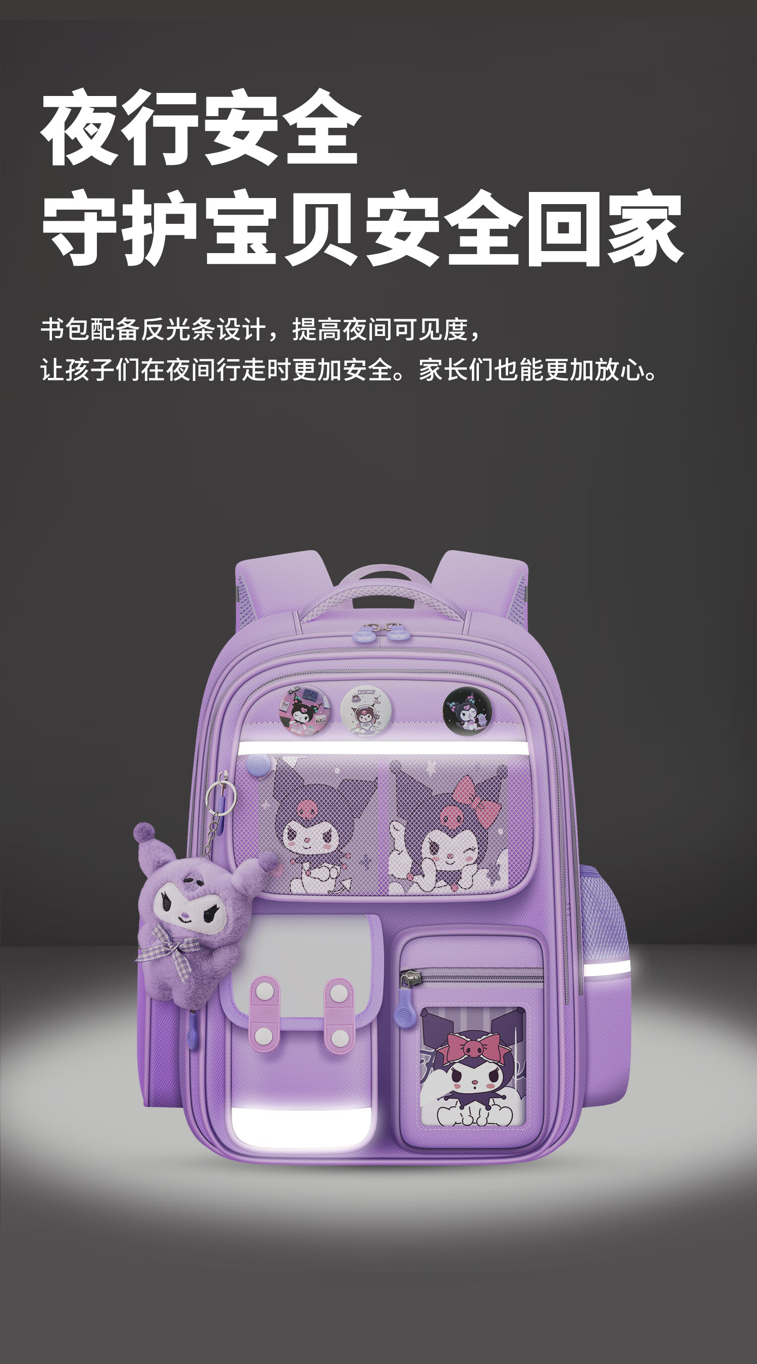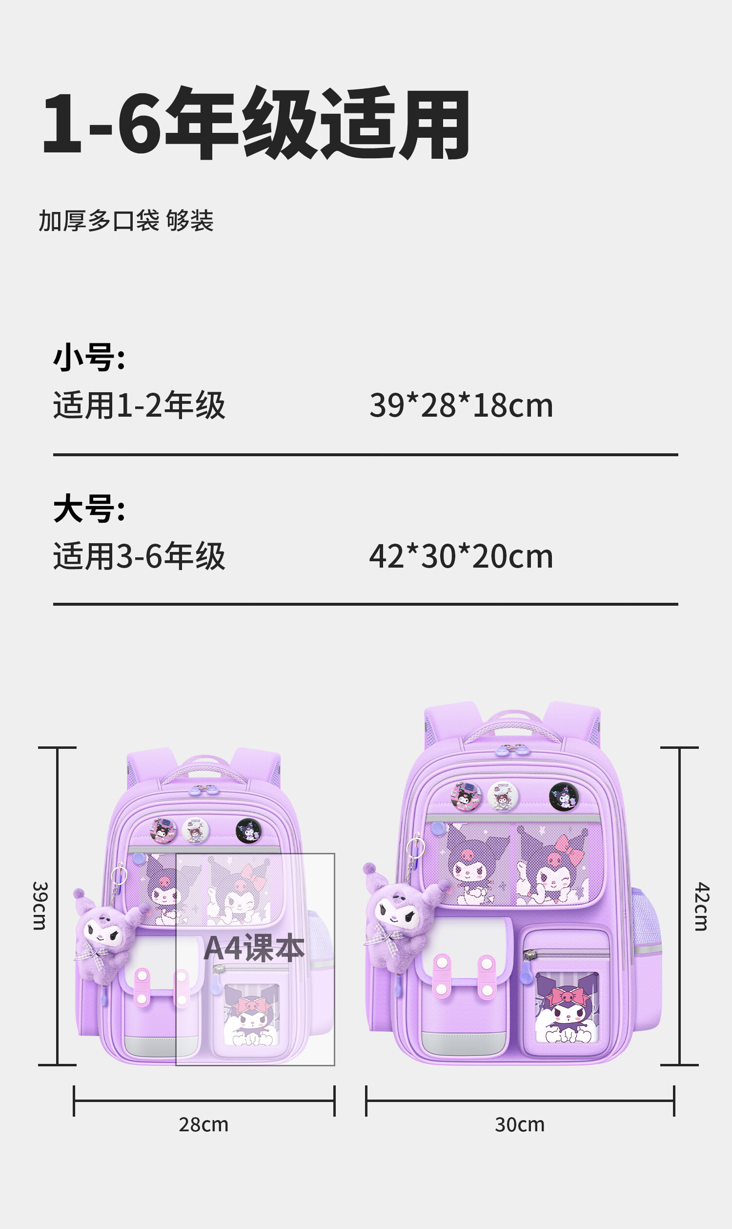 Dr. Wen Kuromi's new school bag for primary school girls in grades 1-3-6 to reduce burden and protect spine, cute Melody large purple (Kulomi) grade 3-6 school bag + accessories (including 1 pendant, 6 badges and 3 cards)