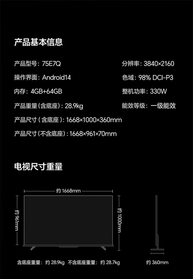 Hisense TV E7Q 75 inches Xinxin chip H6 overclocked version Obsidian Pro 2600 partition National subsidy World Cup TV 75E7Q e7npro upgrade 75 inches