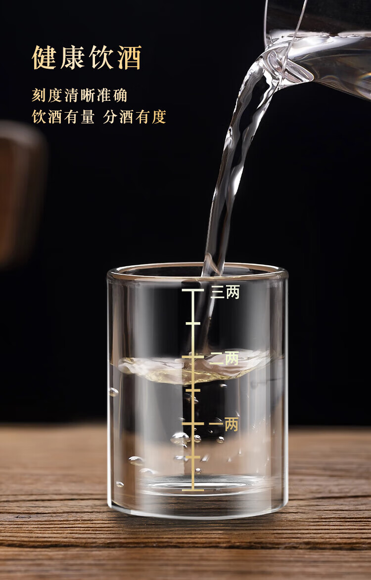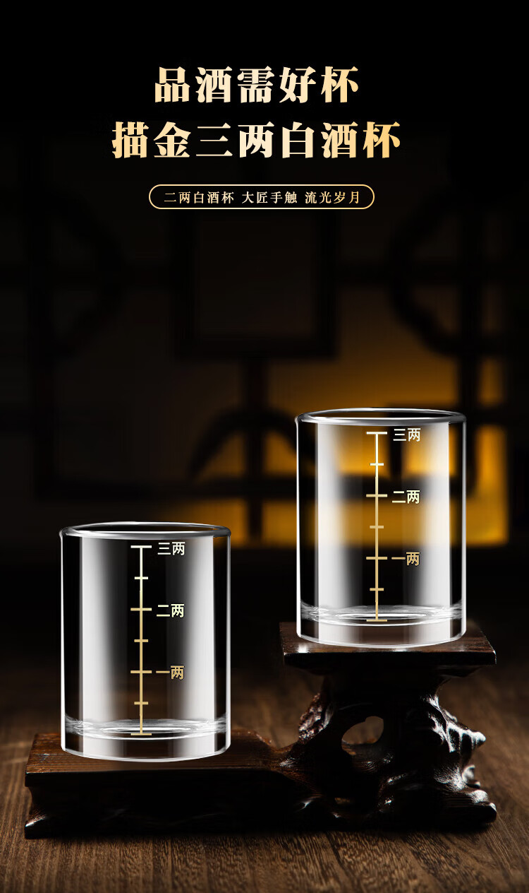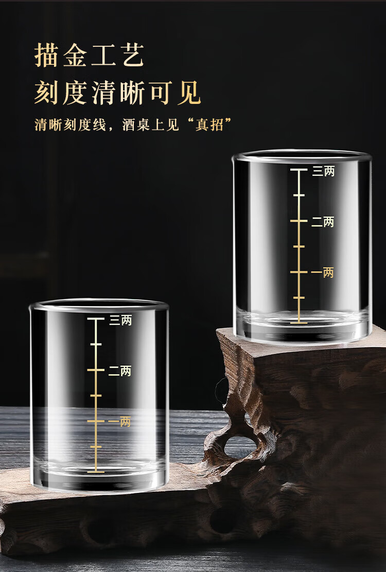 Fat Donglai Chinese-style white wine cup, two, two, three, and two cups, gold painted wine glass with scale, white wine cup set, same style as Fat Donglai, three or two cups - 2 pieces