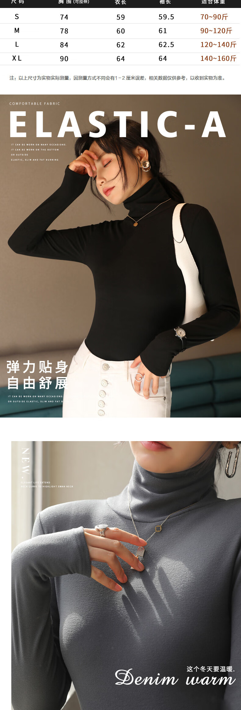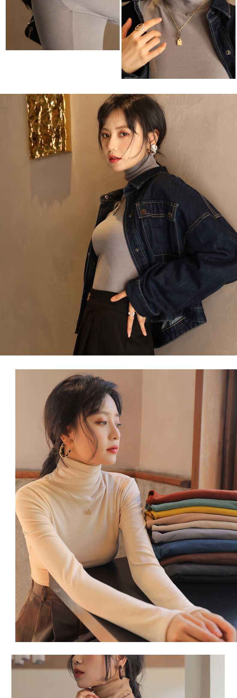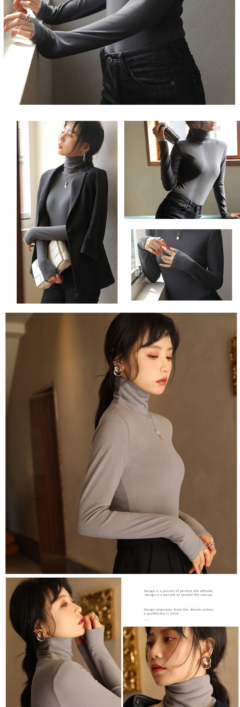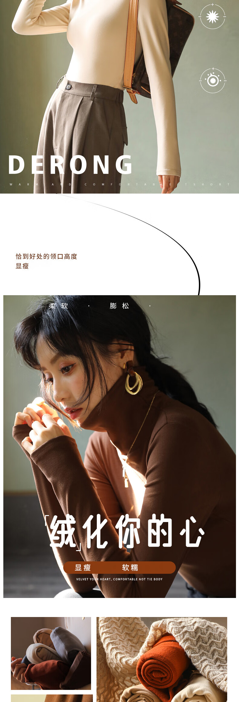 Yunshun solid color German velvet pile high collar bottoming shirt for women, autumn and winter velvet thickened long-sleeved bottoming top tights turtleneck bottoming shirt - apricot M