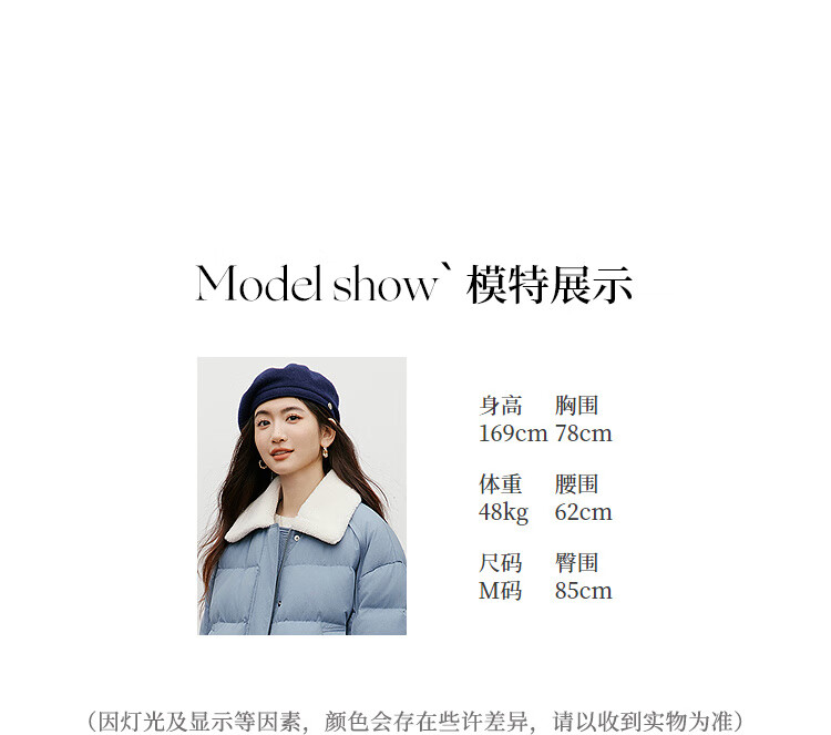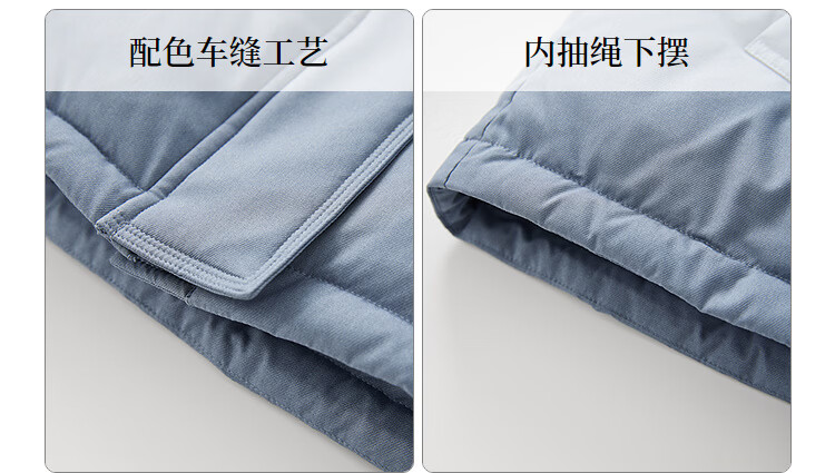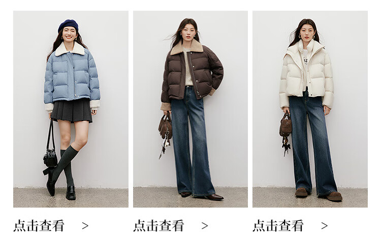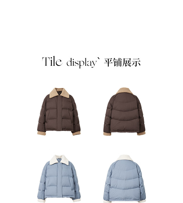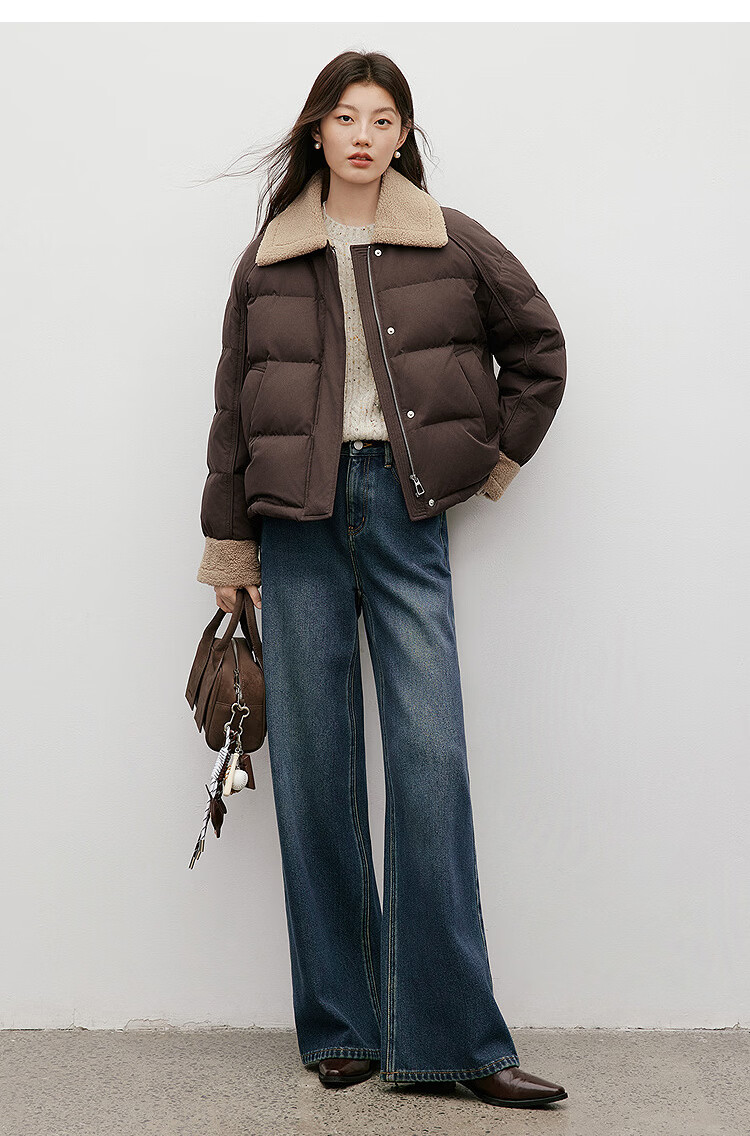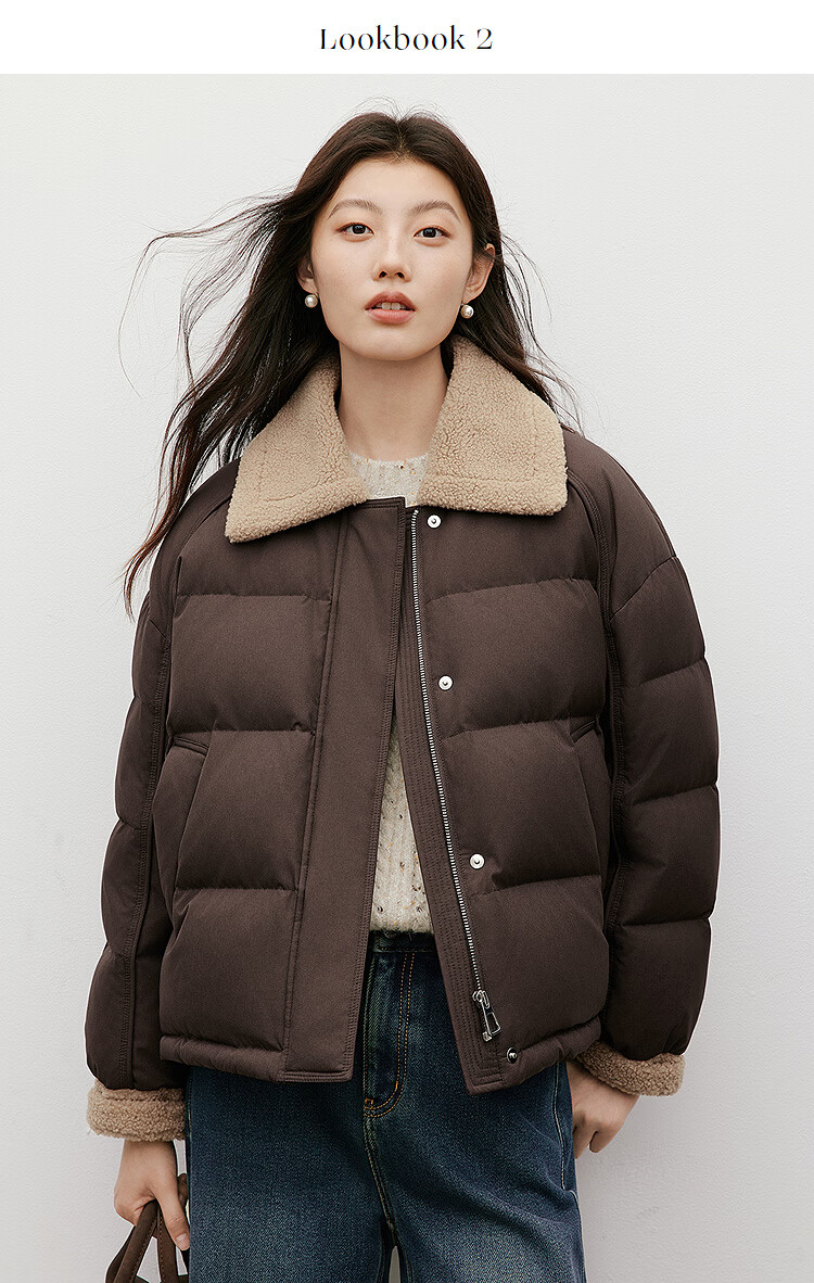 Red sleeve (hopeshow) Barn style down jacket 2025 winter new women's 90 white duck down splicing lapel loose warm short coat Ice fog blue 402 S