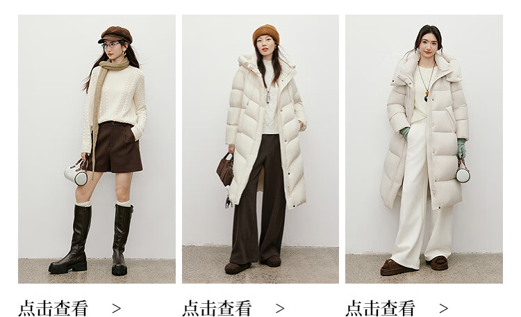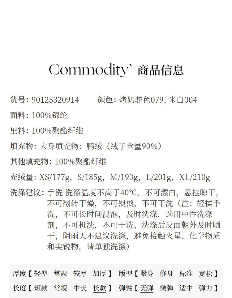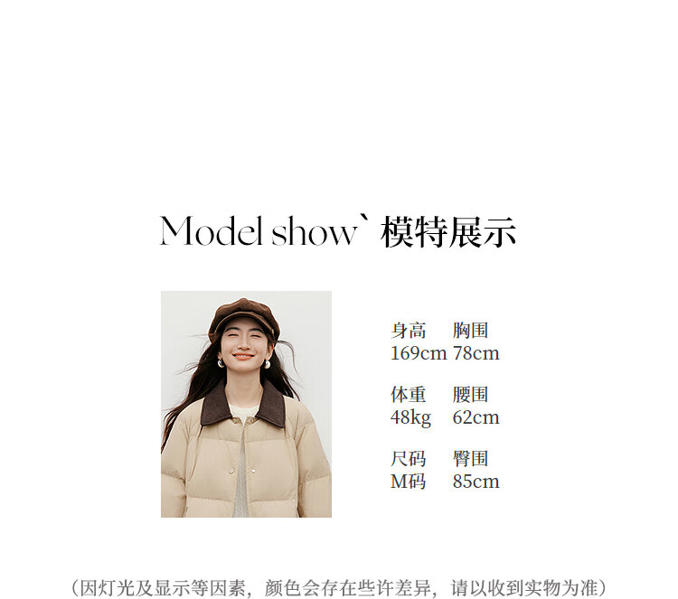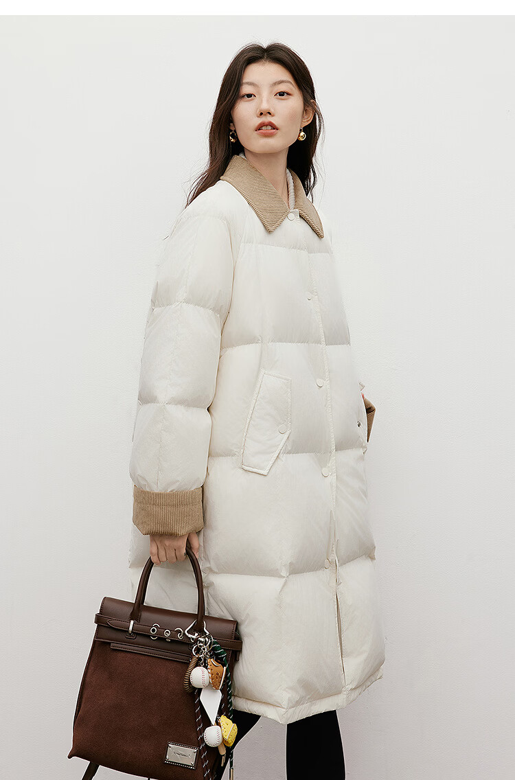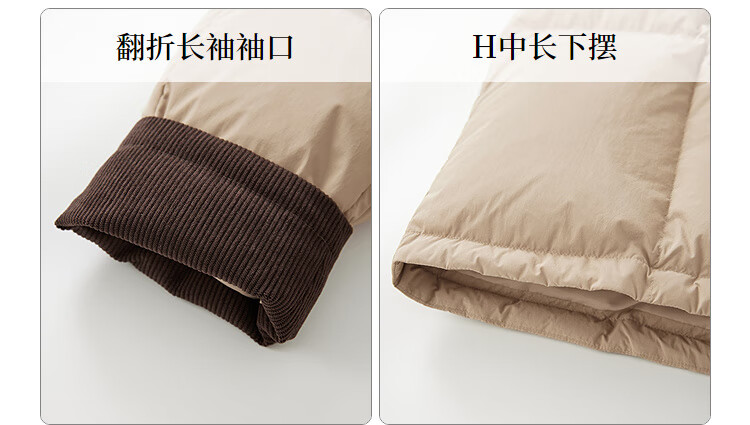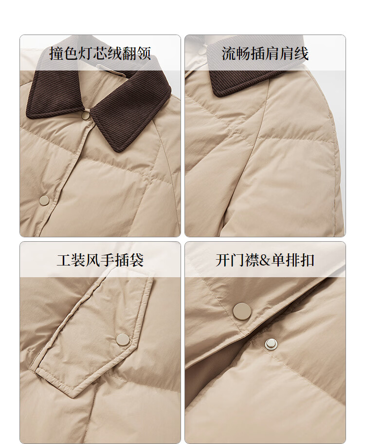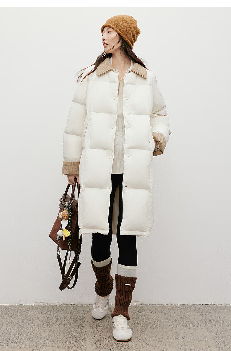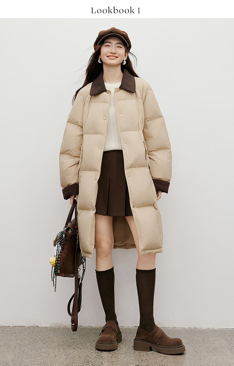 Red sleeves (hopeshow) super nice contrast collar down jacket 2025 winter new women's 90 white duck down Barn style casual mid-length coat roasted milk camel color 079 M