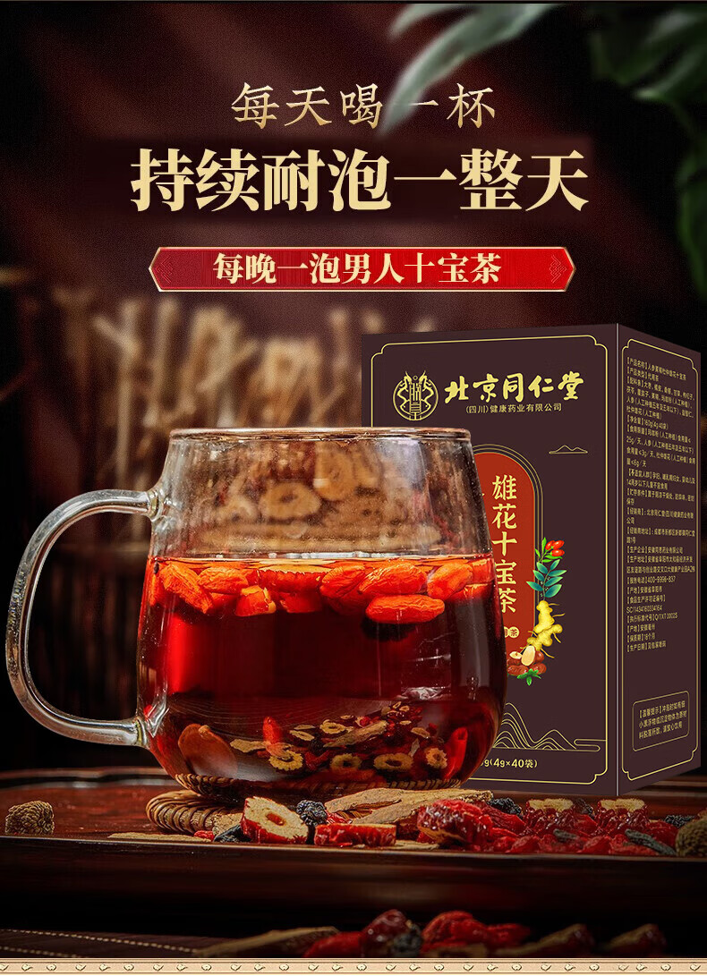 Tongrentang Tongrentang health tea for men nourishes the kidneys, nourishes the liver, nourishes the liver, protects the liver, and nourishes the liver. Babao tea nourishes essence, nourishes qi, nourishes blood, and strengthens yang. Brown sugar ginger tea can be combined with aphrodisiacs, premature ejaculation, sensitive tea leaves that stay up late to nourish qi and blood.