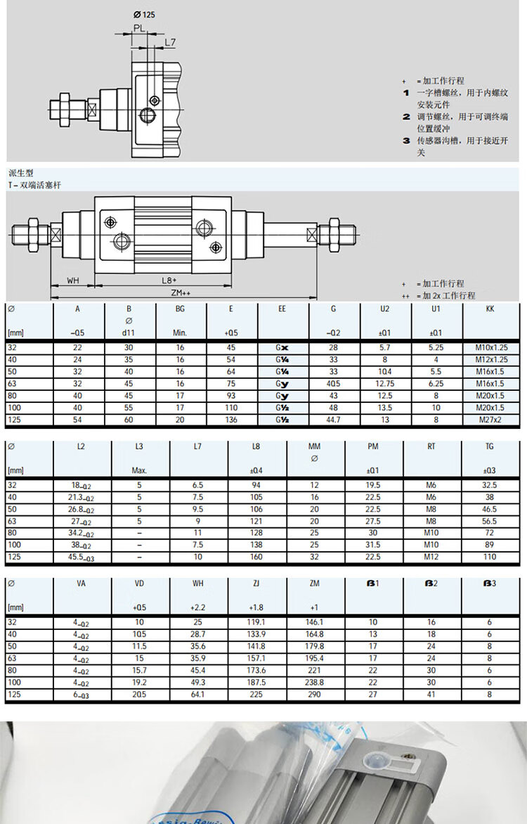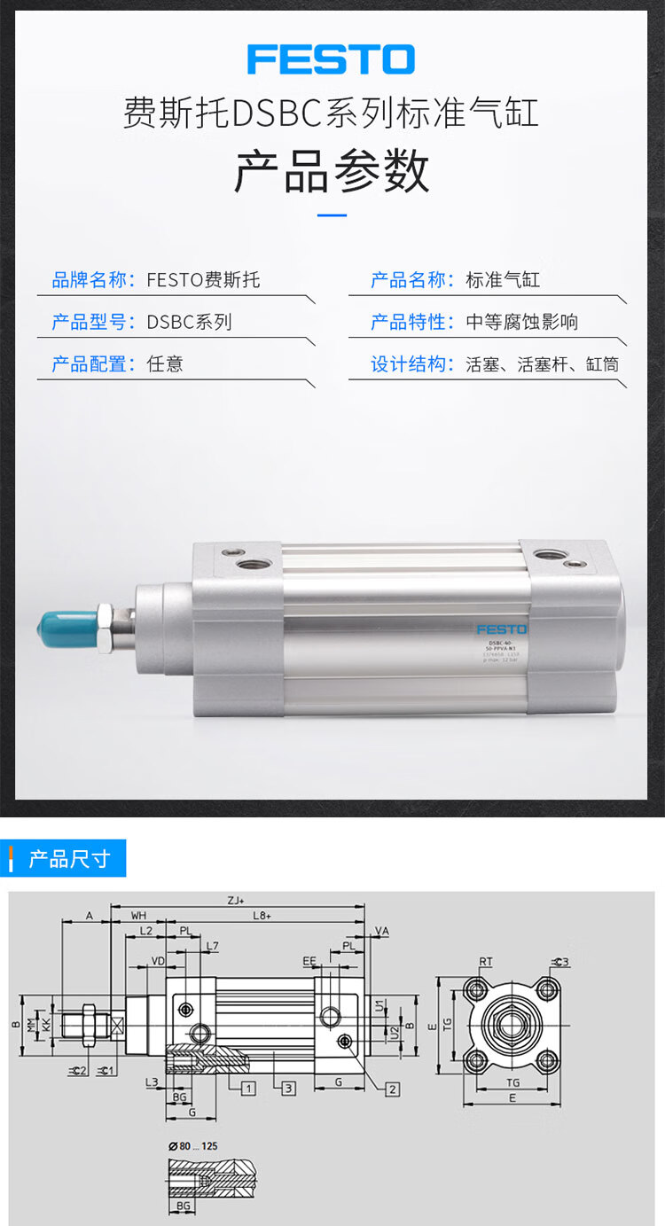 FESTO Festo cylinder DSBC/DSBG-32-25-40-50-63-80-100-125-PPVA-N3 DSBC-50-125-PPVA-N3