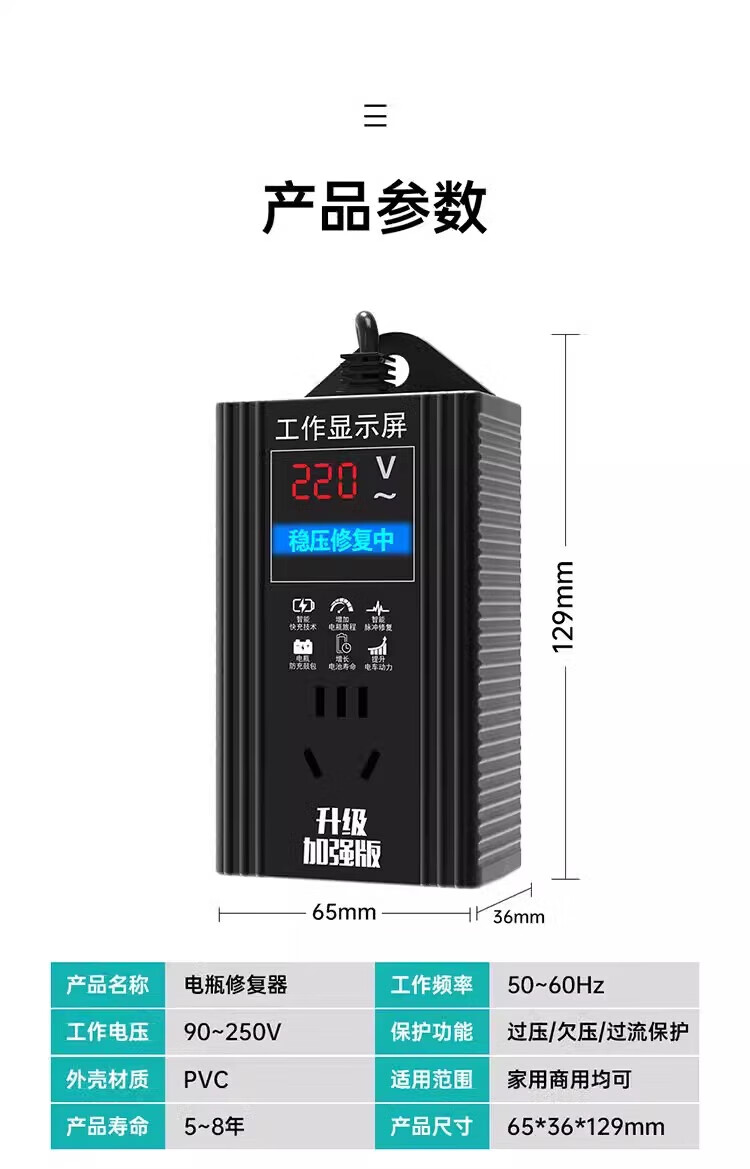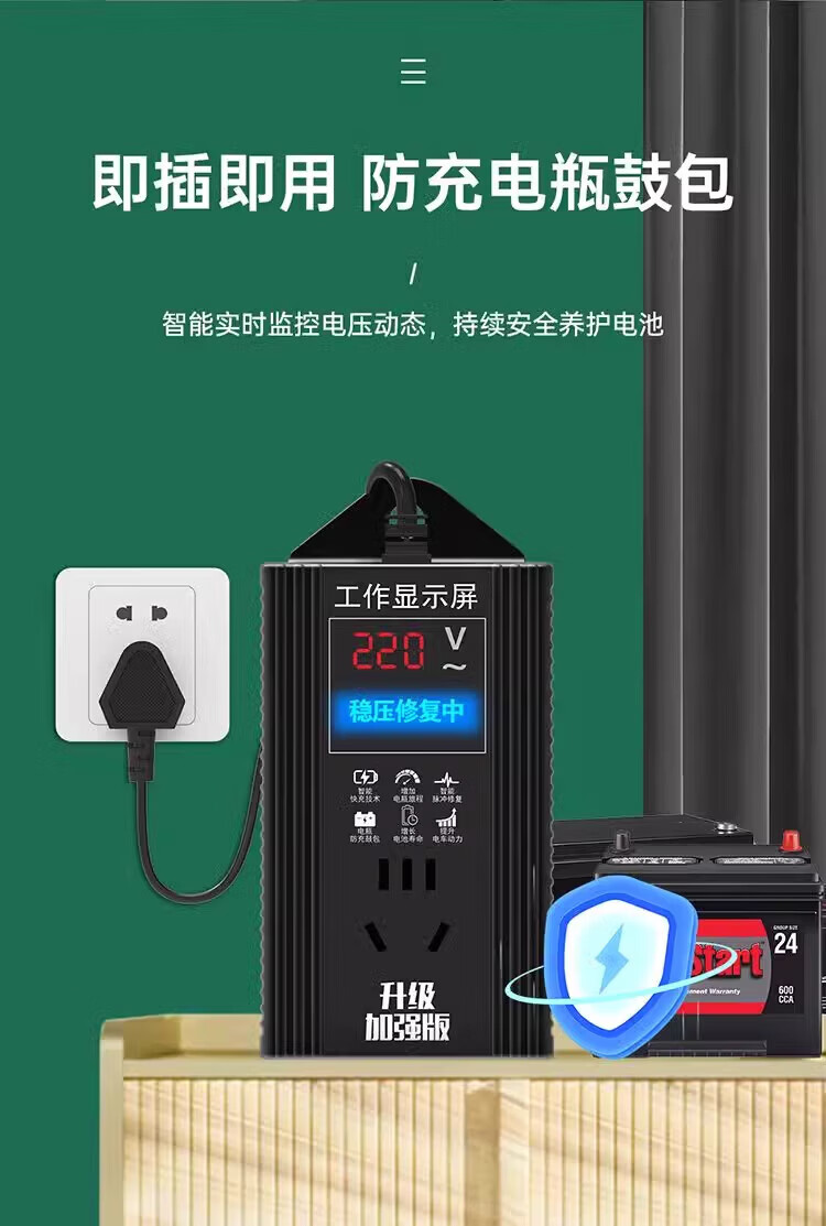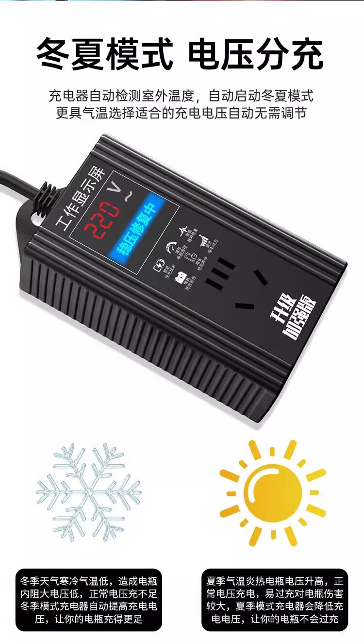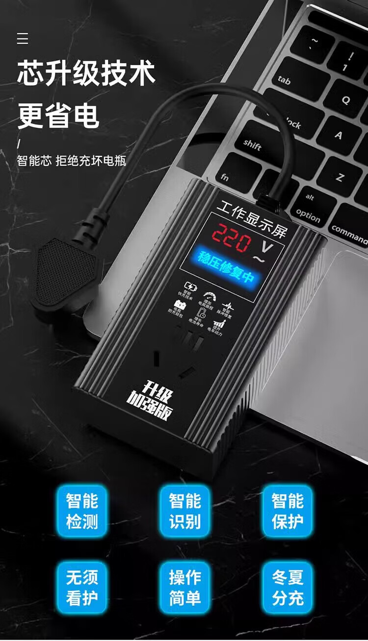 Ersan Electric Vehicle Battery Repair Artifact 12-96V Universal Fully Automatic Pulse Repair Battery Automatic Power Off Winter and Summer Voltage Stabilization Protection + Maintenance + Repair