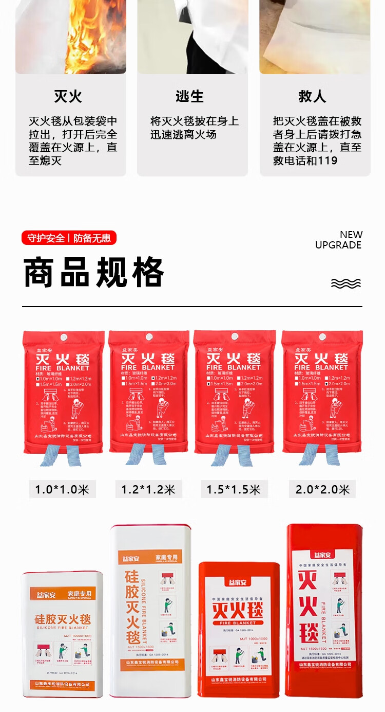 Fire national standard fire extinguishing blanket commercial household kitchen flame retardant escape glass fiber silicone mat silicone 1.5M*1.5M fire extinguishing blanket package inspected