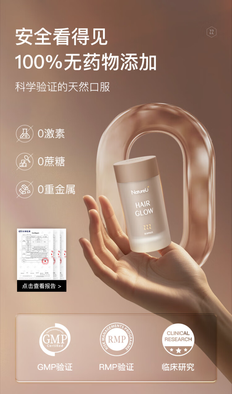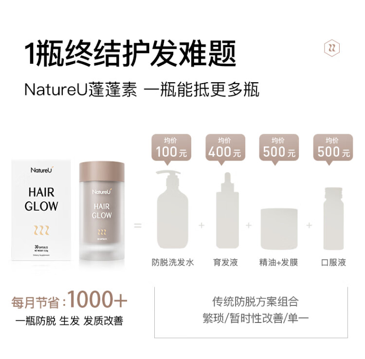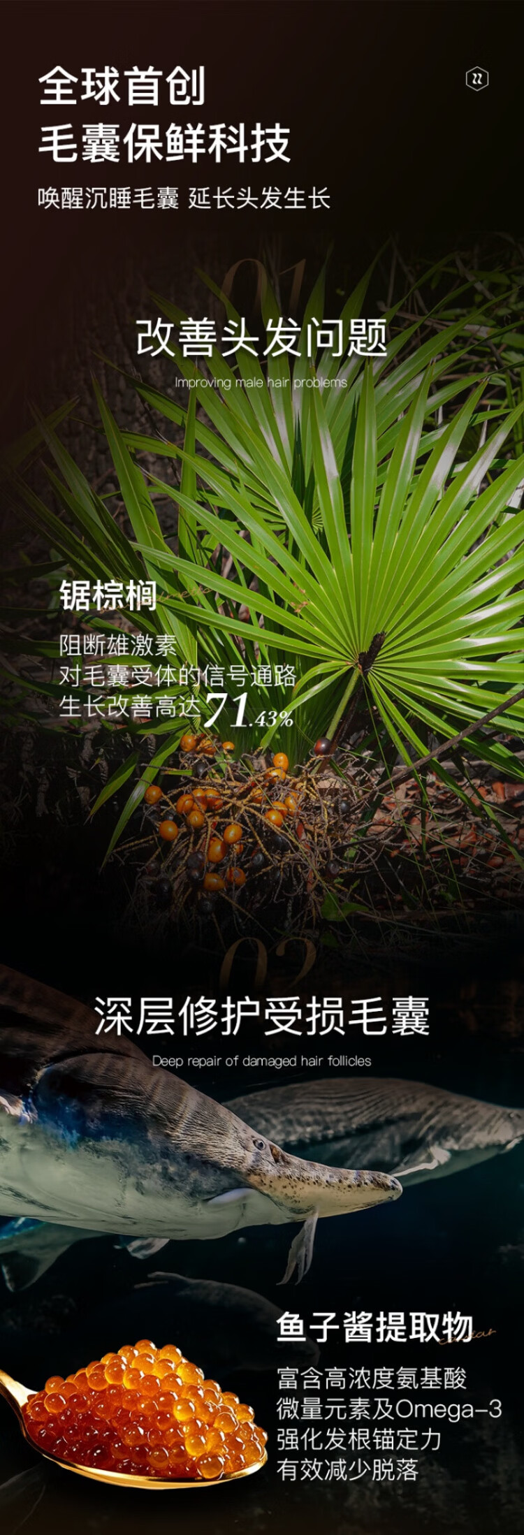NatureU hair loss prevention hair care biotin saw palmetto unisex a-reductase caviar repair hair follicles anti-hair loss small black shield 6 bottles (repair hair follicles)