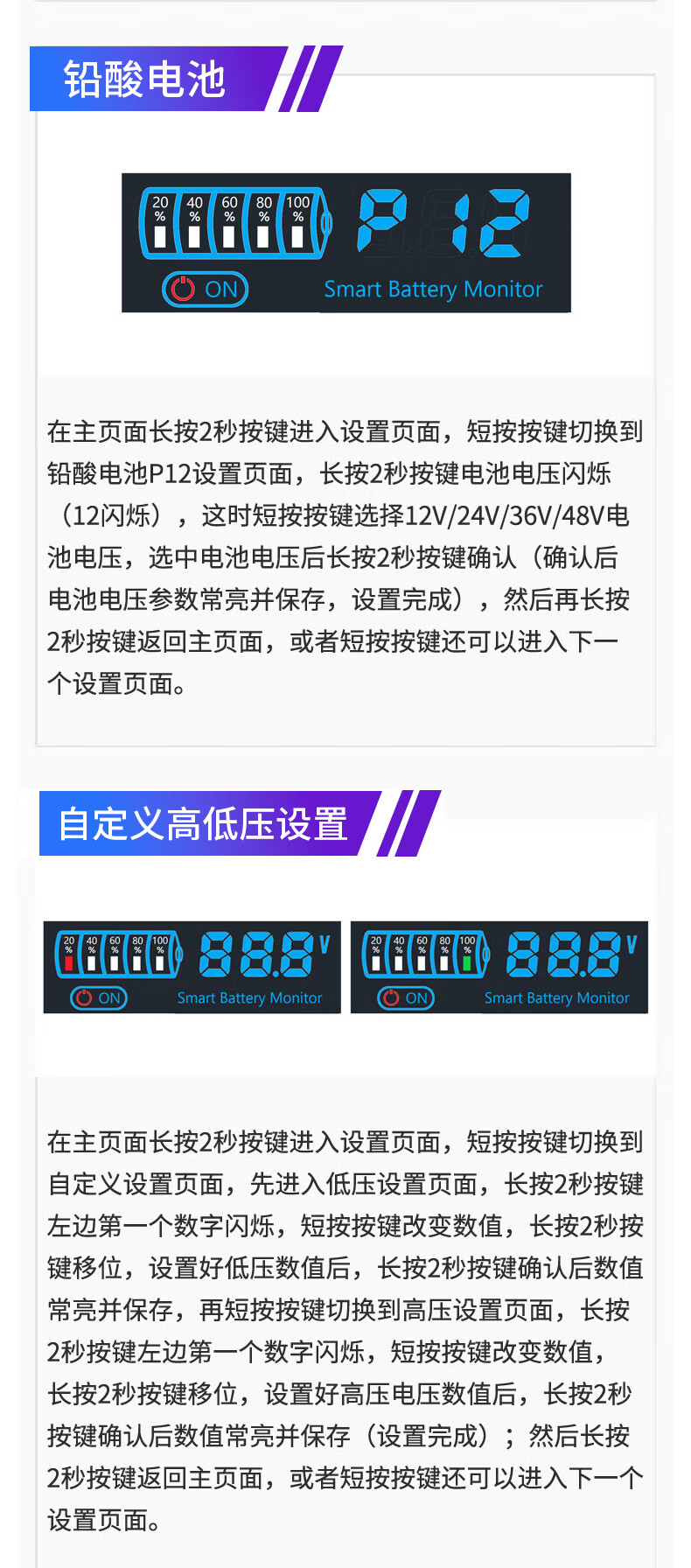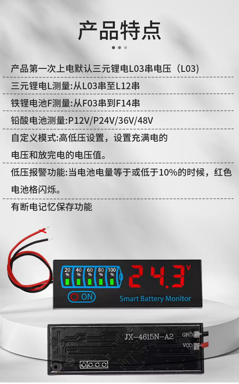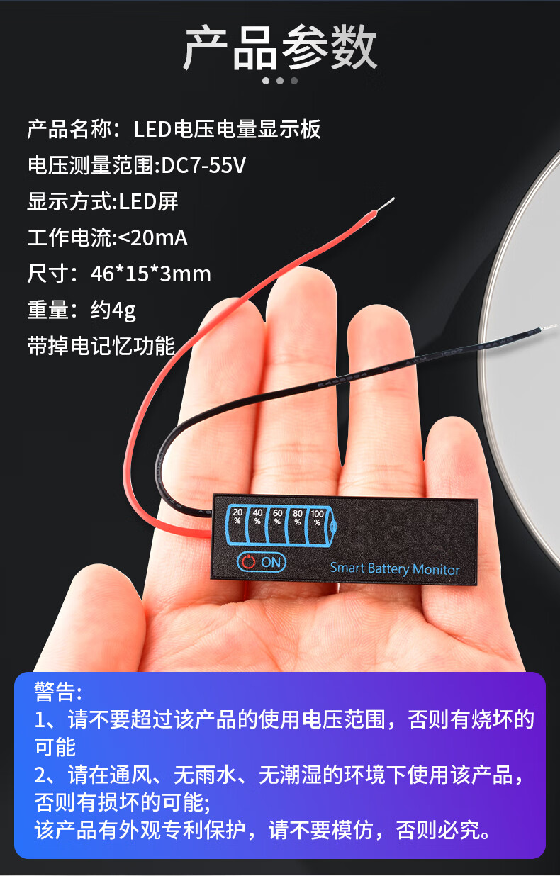 LED voltage and power display board DC7-55V lead-acid ternary lithium iron phosphate battery power display white display (DC7-55V) no specifications