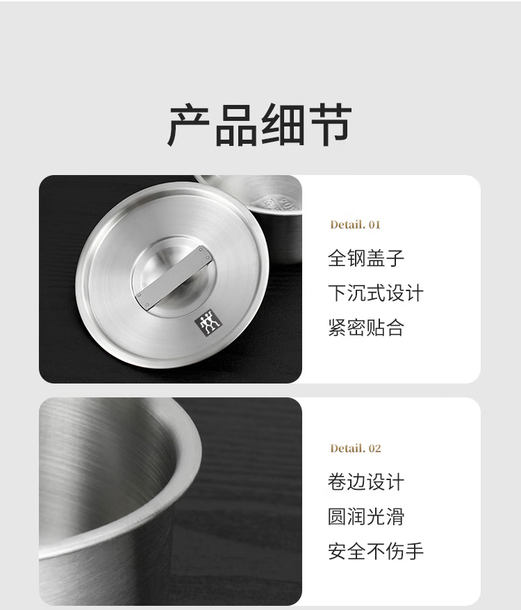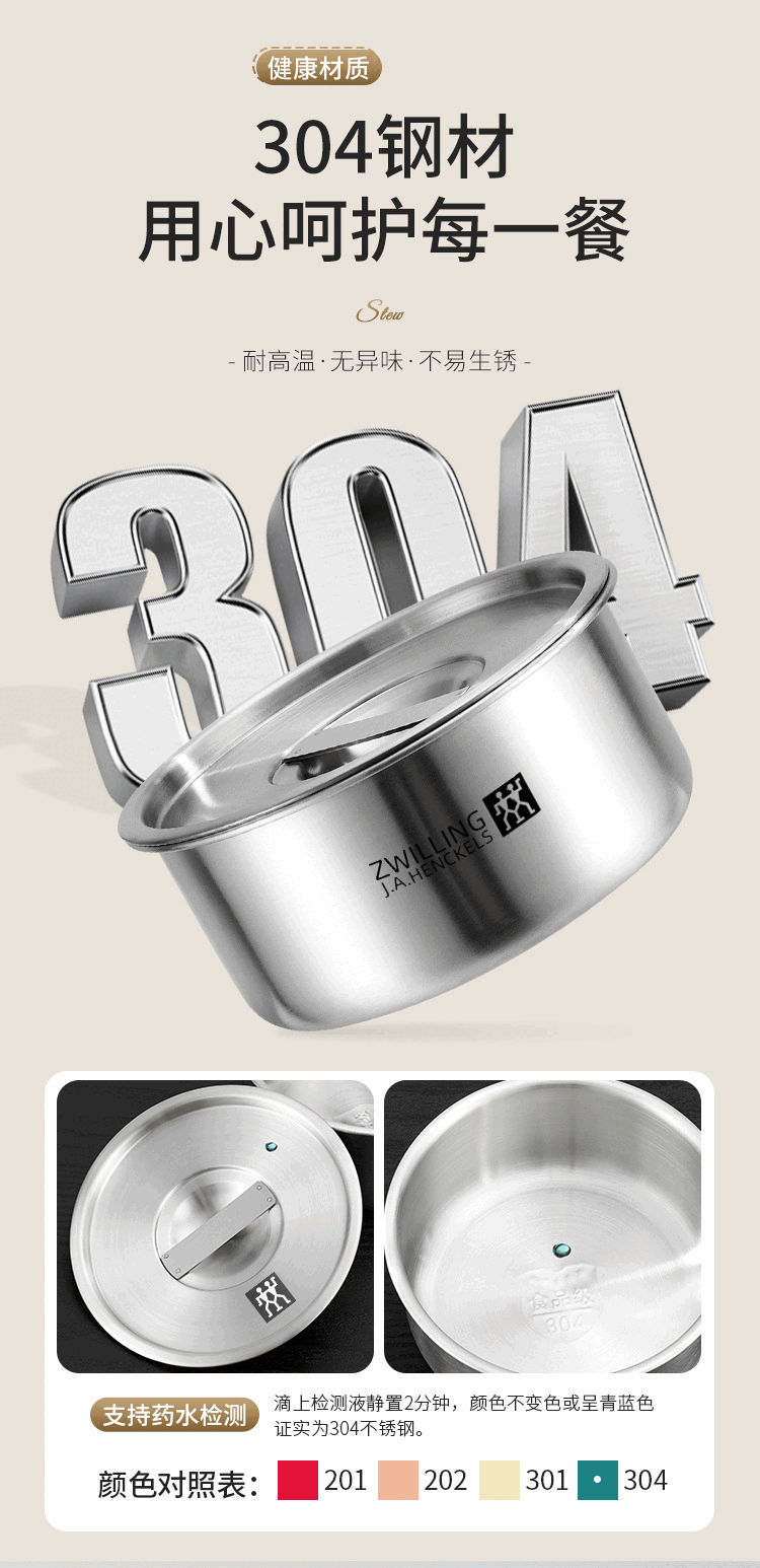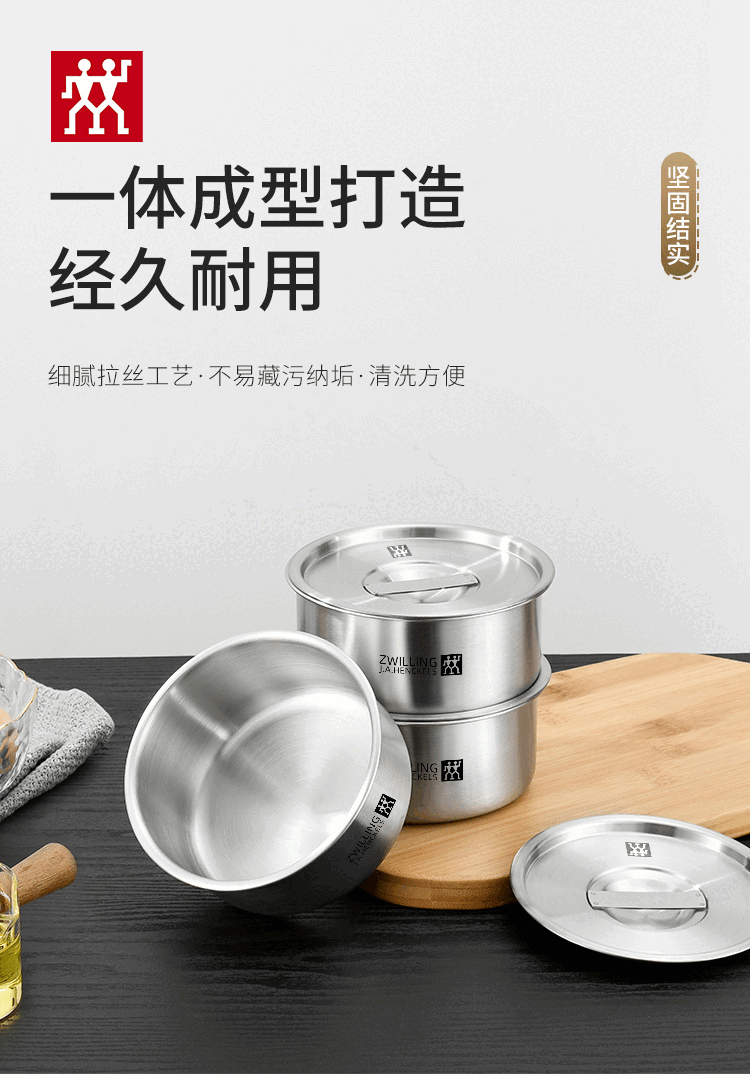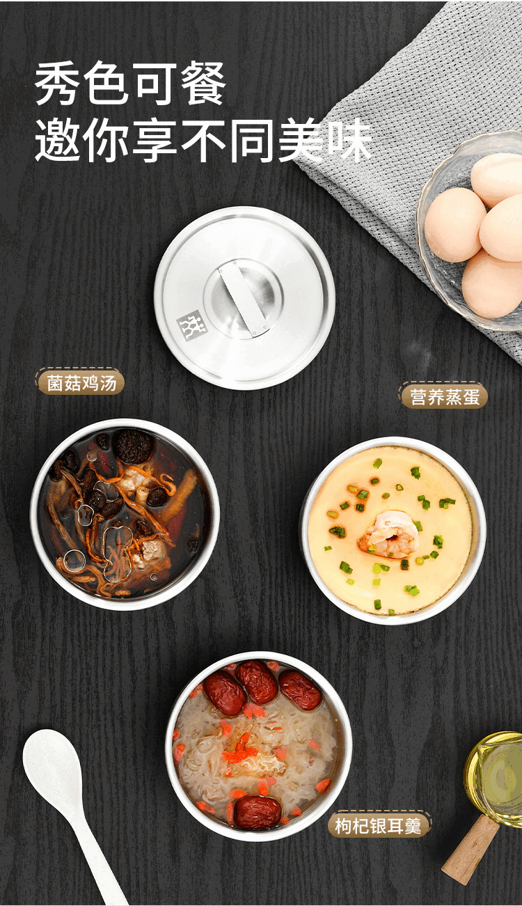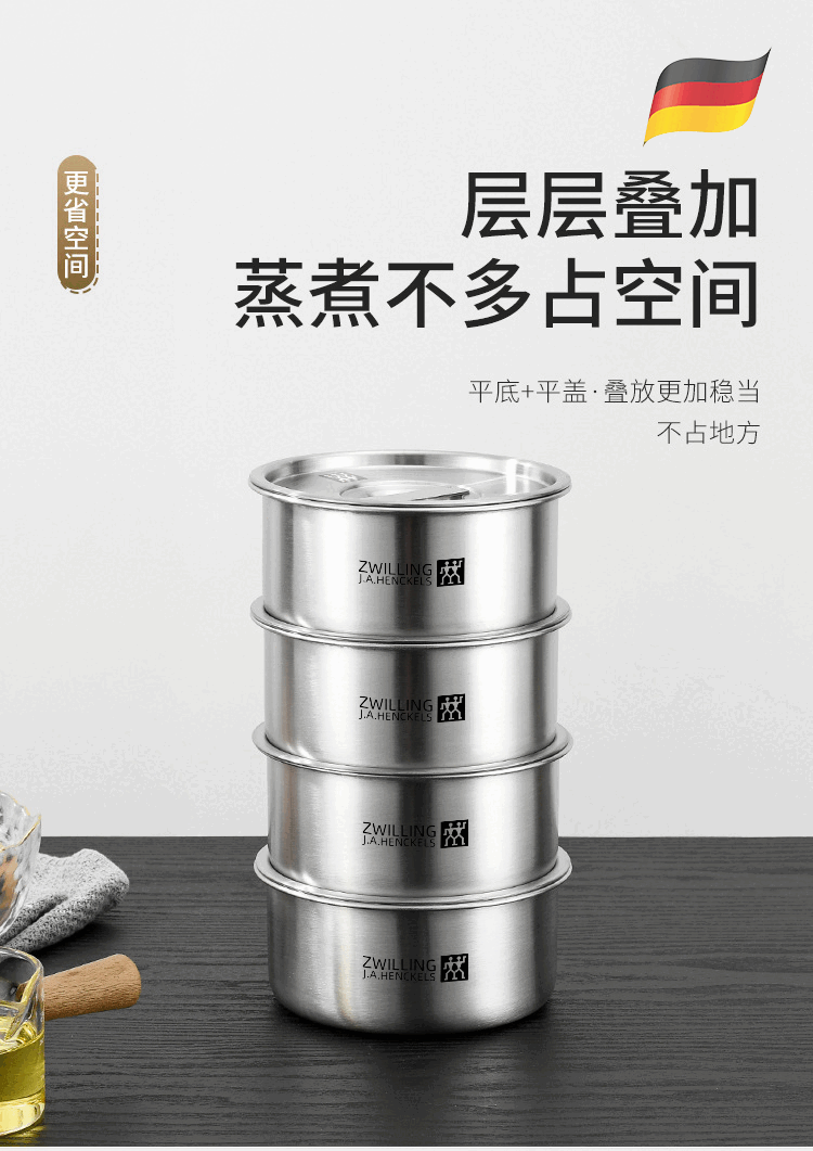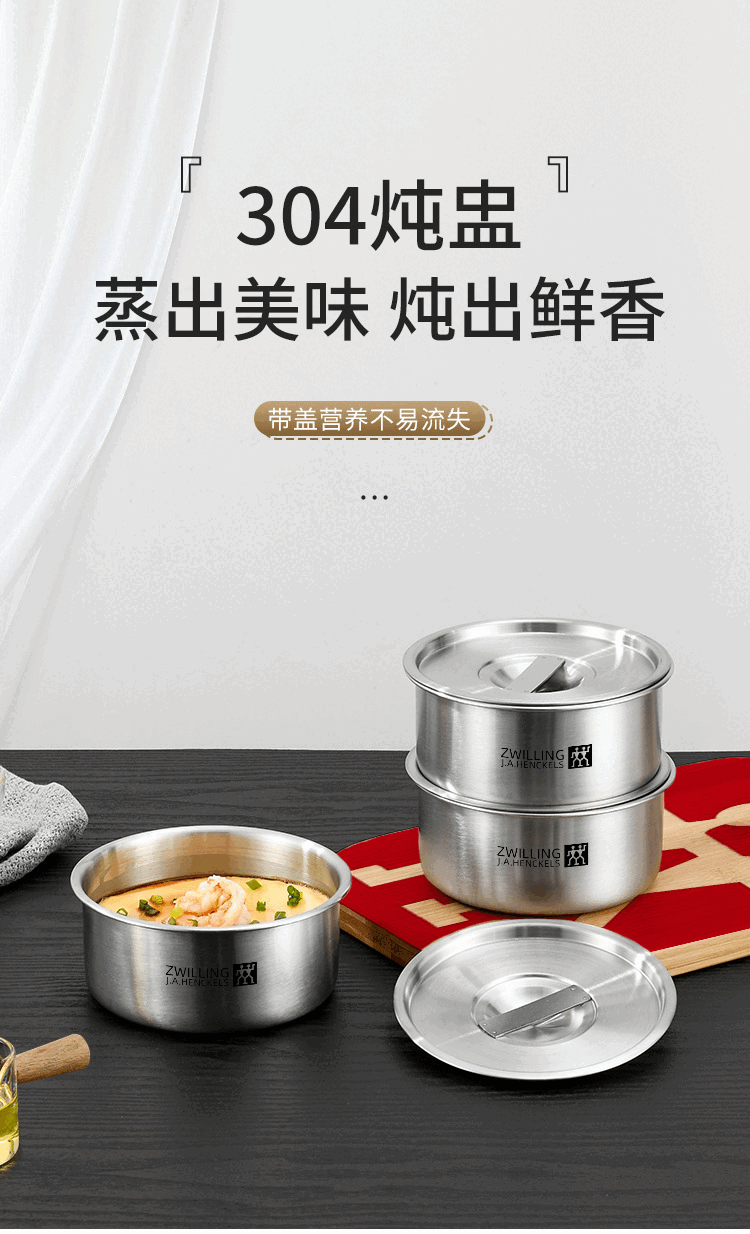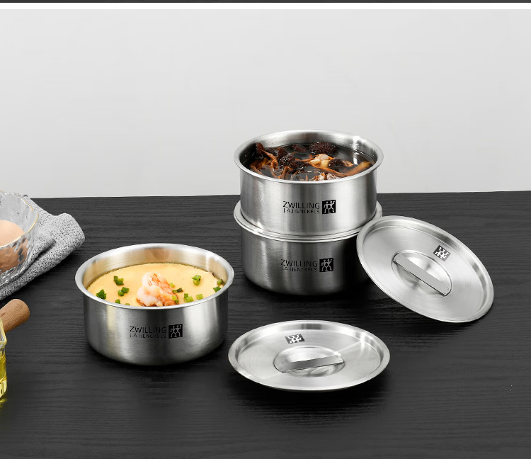 Zwilling German stainless steel steaming bowl stew pot water-proof stew children's bowl small bowl supplementary food bowl steamed egg bowl with lid steamed egg bowl
