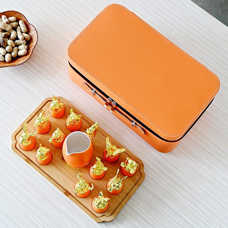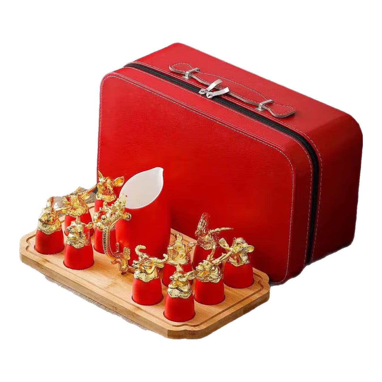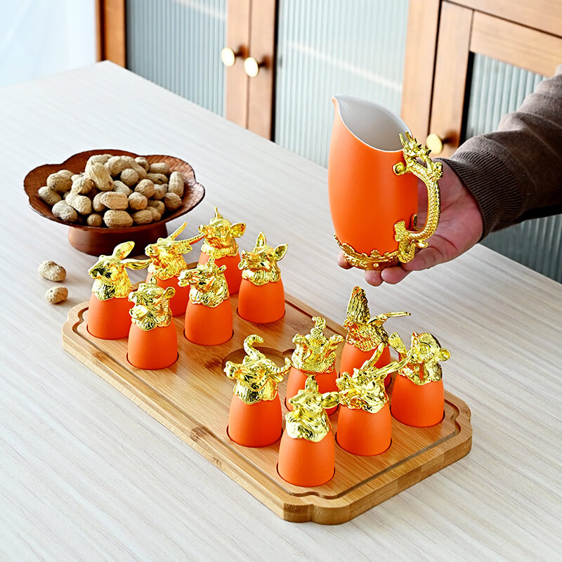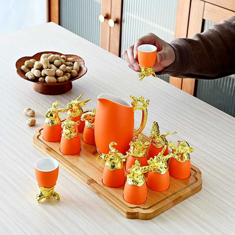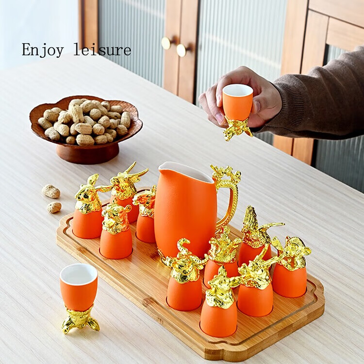 Twelve zodiac animal head ceramic small wine glasses and wine sets, Lobo sets, household white wine glasses, gift-giving, high-end ceramic wine sets, Twelve zodiac animals, red gift box, random color