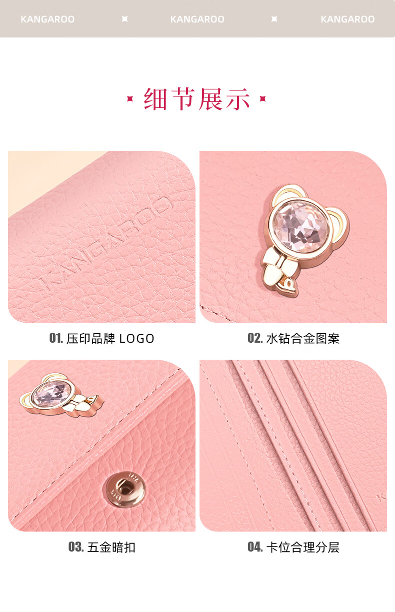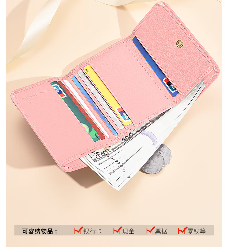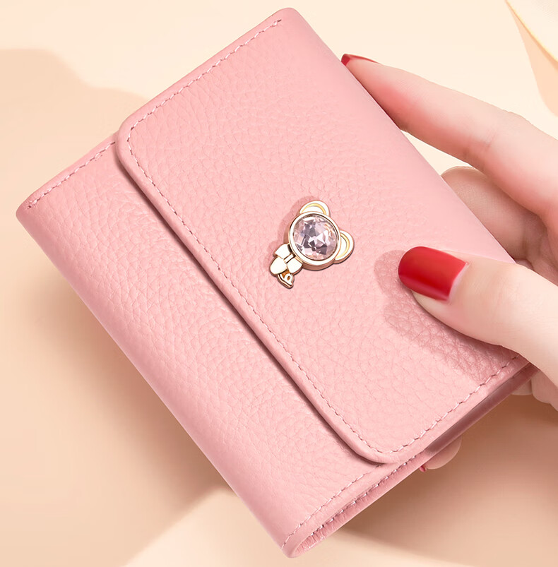 Kangaroo New Women's Genuine Leather Short Wallet Niche Wallet Fashion Soft Cowhide Pink Coin Purse Girls Card Holder Pink-Snake