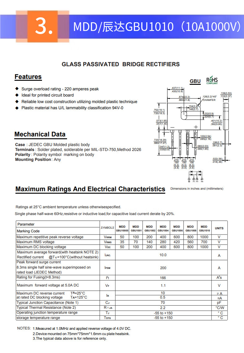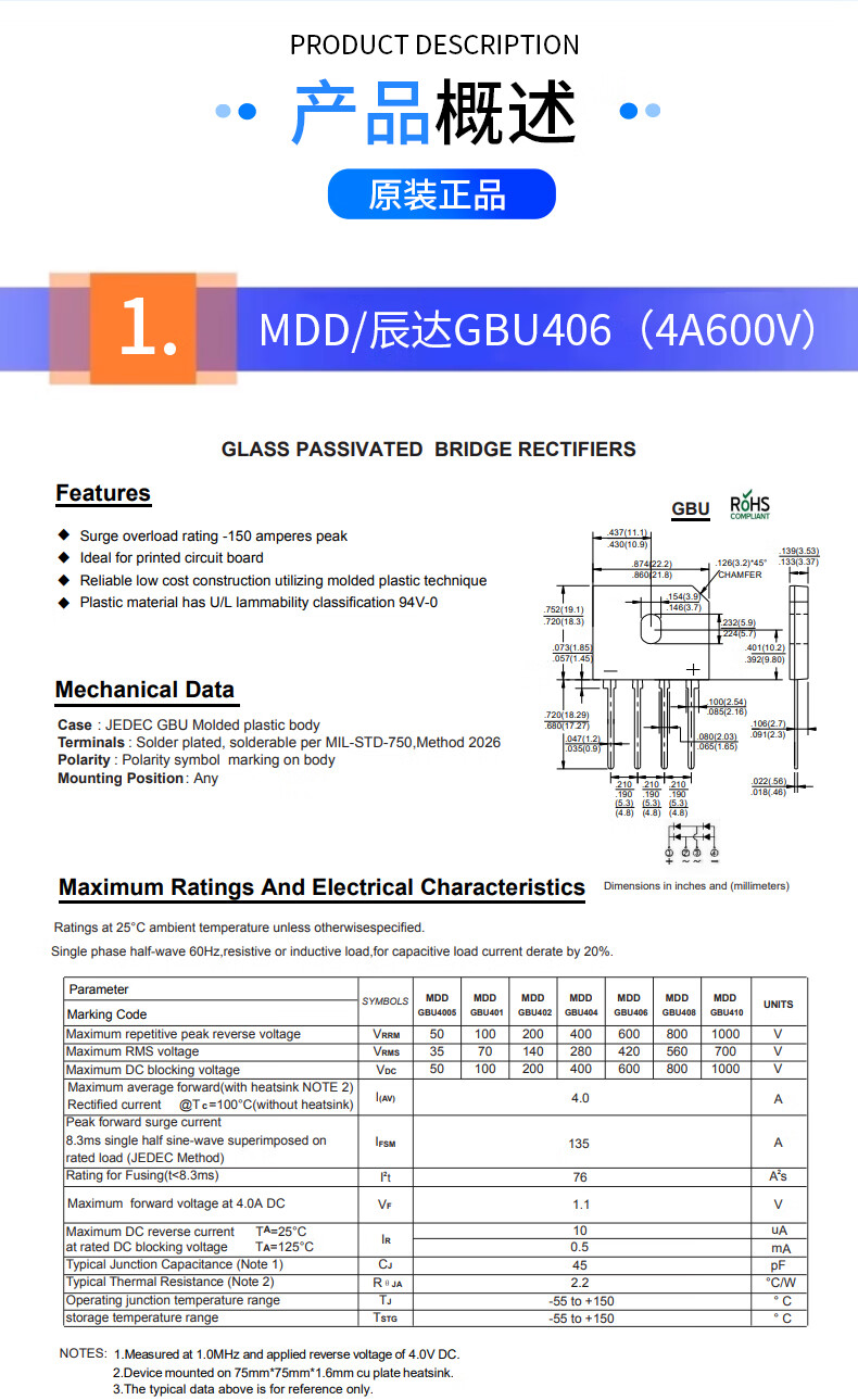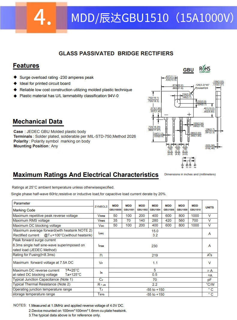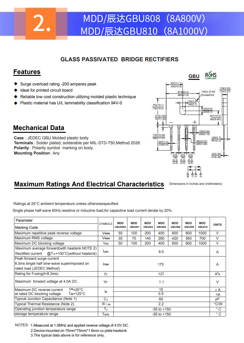 MDD Chenda GBU406GBU808 GBU810 GBU1010 GBU1510GBU2510 rectifier bridge MDD/Chenda GBU2510 (25A1000V) 2 pieces without specifications