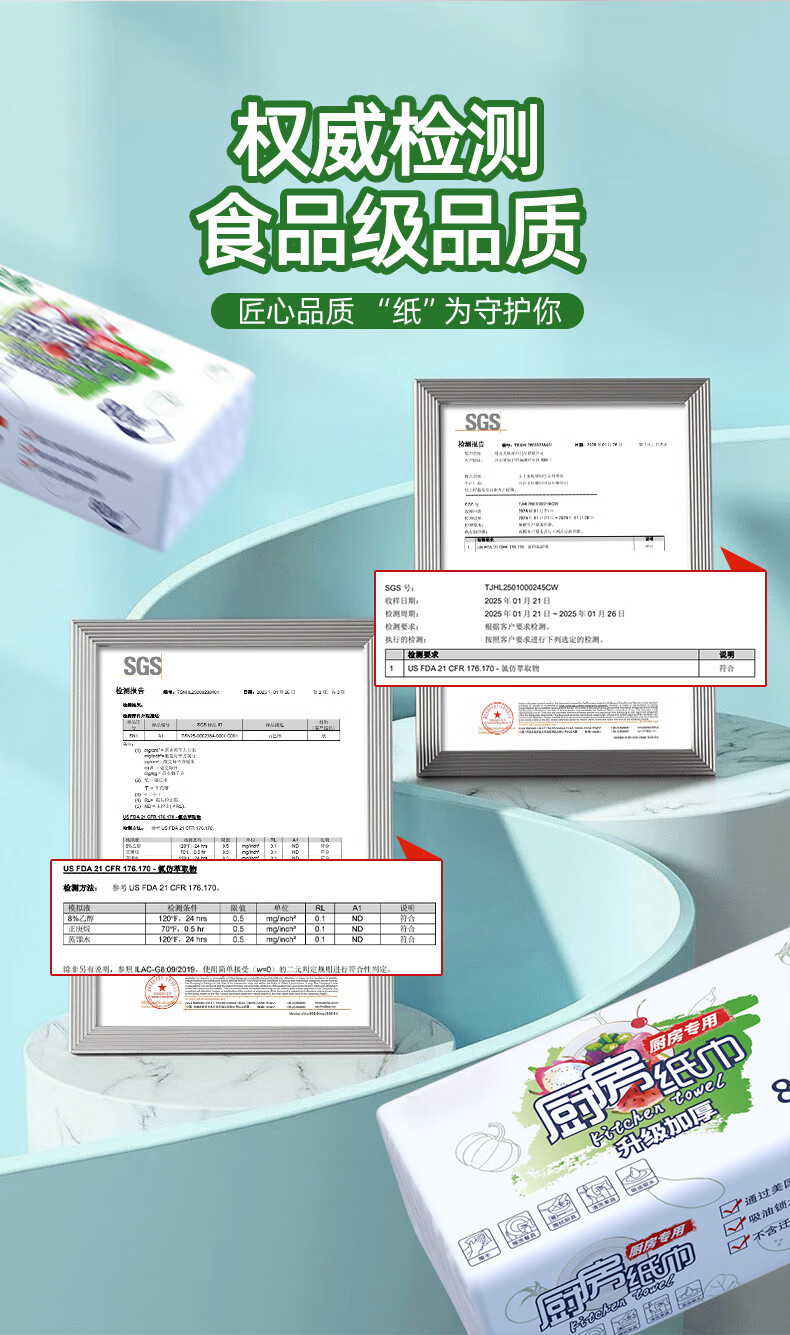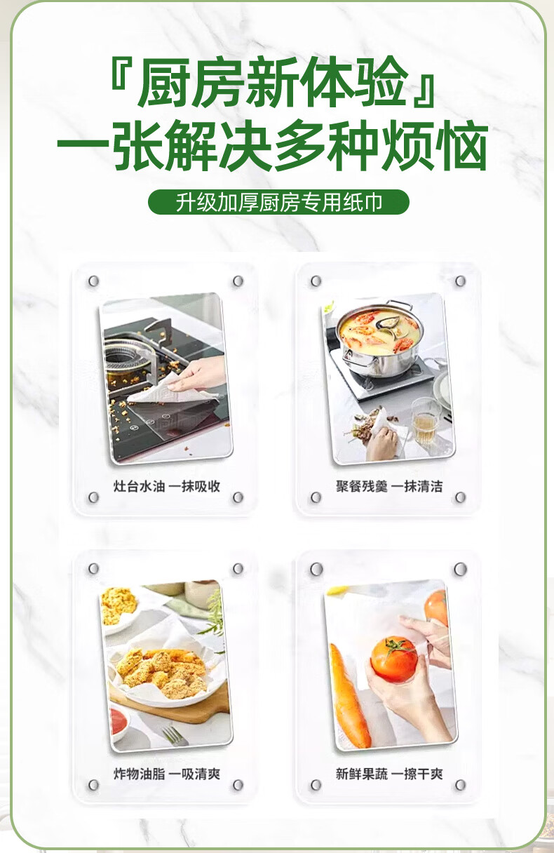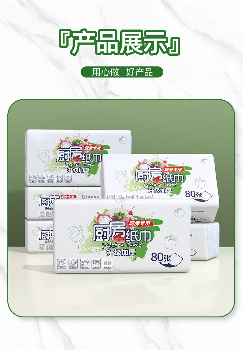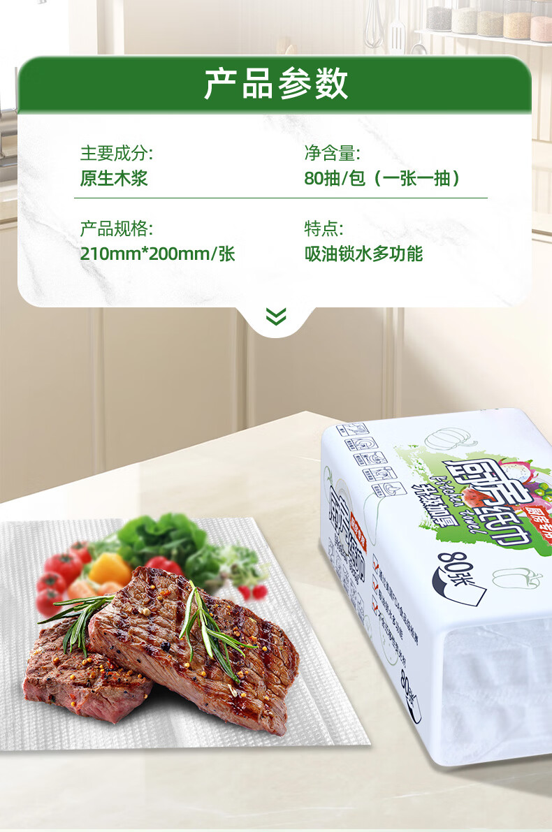 FDA food-grade kitchen tissue paper is thick and strong, oil-absorbing, water-absorbing and decontamination disposable removable 80-pack food-grade kitchen paper 1 layer 80-pack * 12 packs