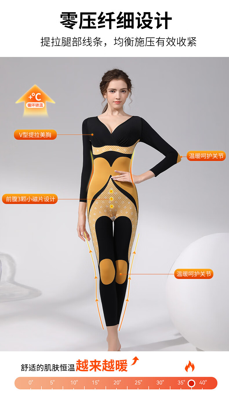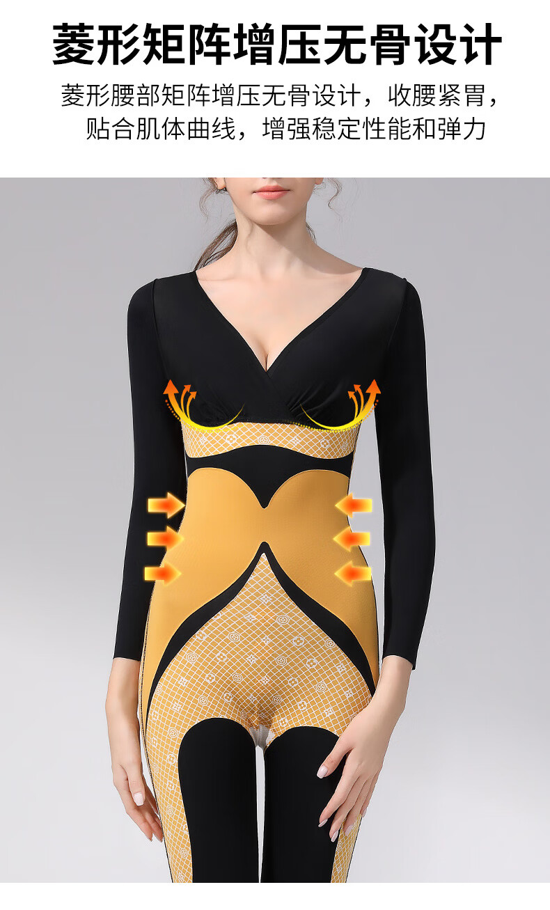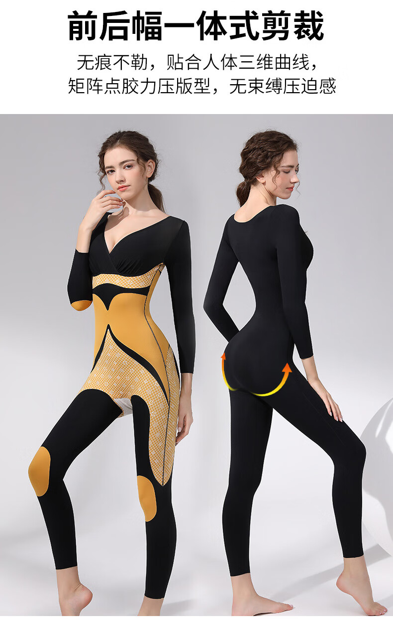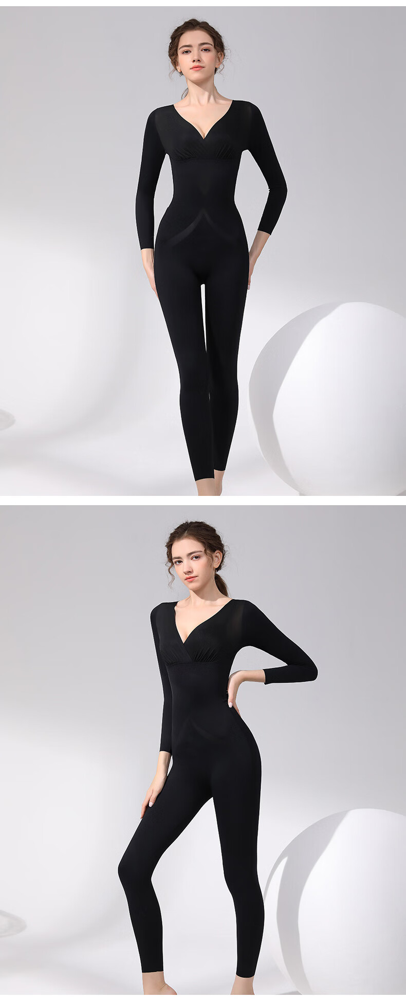 Tingmei (GRACWELL) new product autumn and winter full body shaping jumpsuit slimming buttocks waist corset tummy control long sleeves long pants body shaping black M (recommended weight 95-110 pounds)