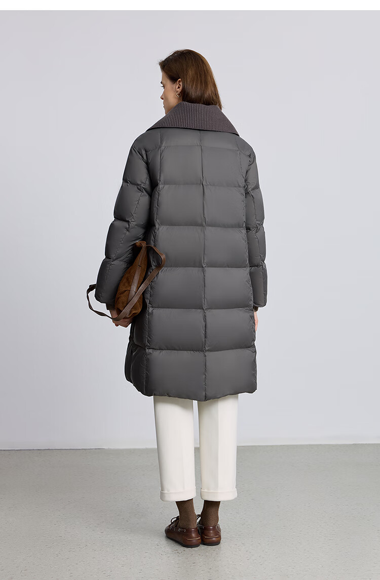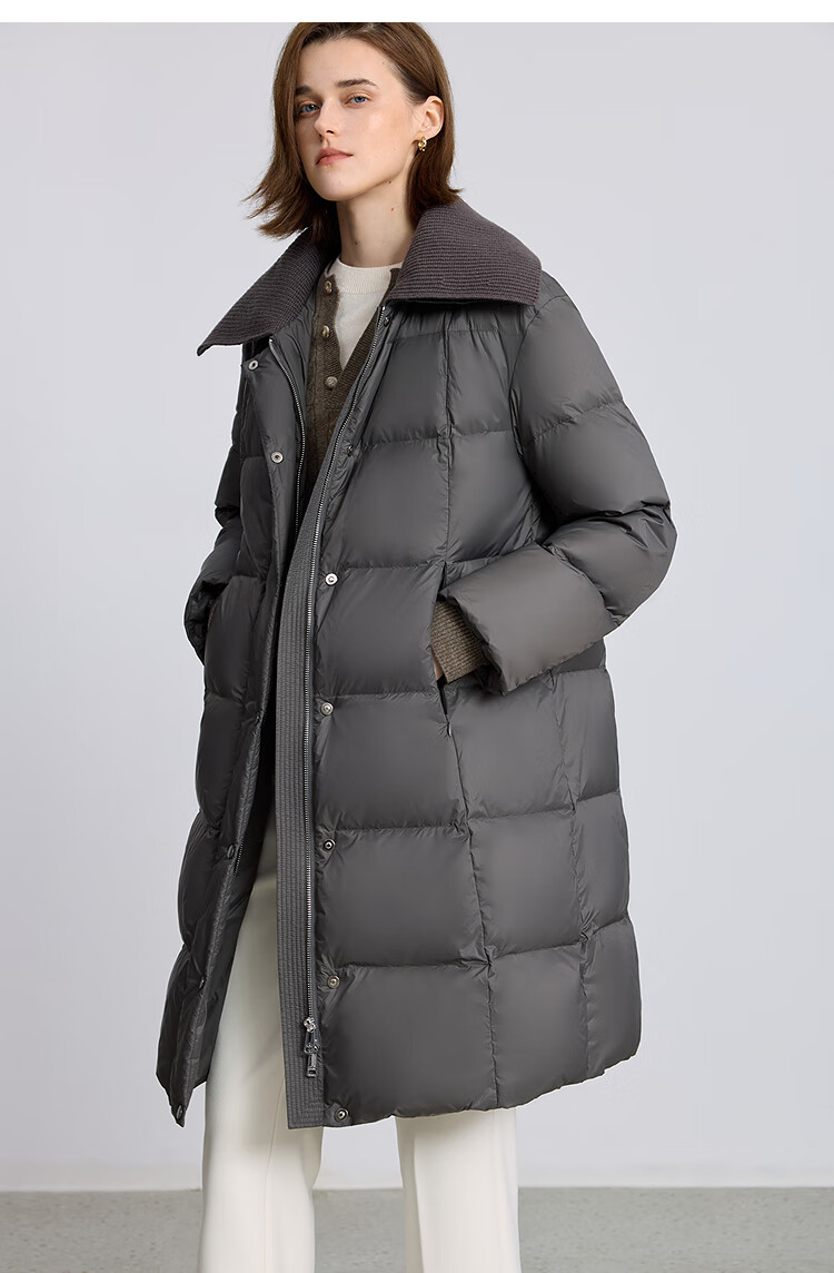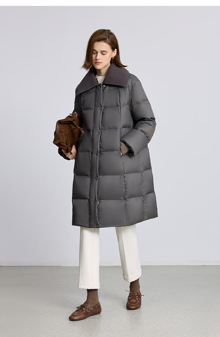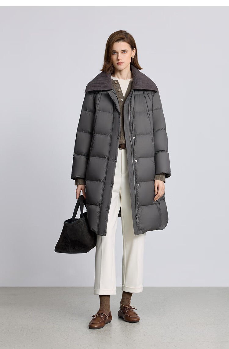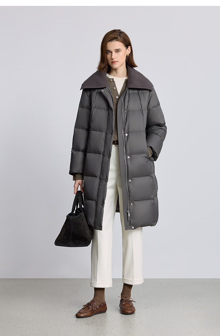 LILY2025 Winter New Retro Knitted Lapel Loose Casual 90 Duck Down Puff Down Jacket Women's Long 506 Medium Gray S