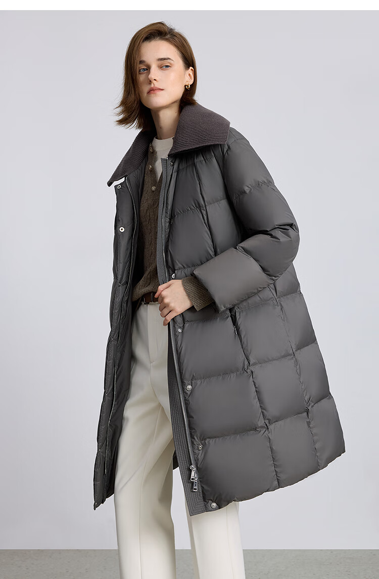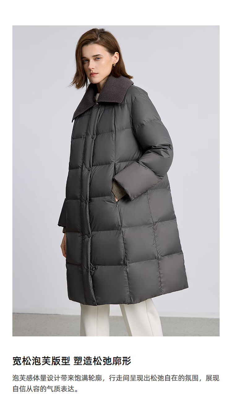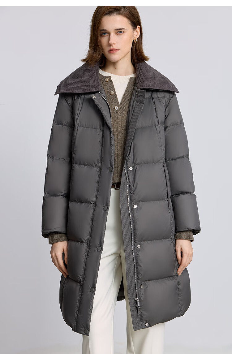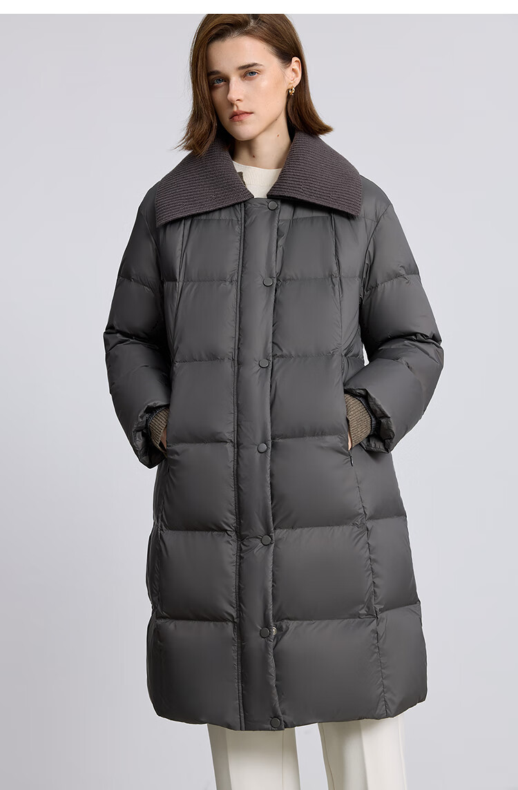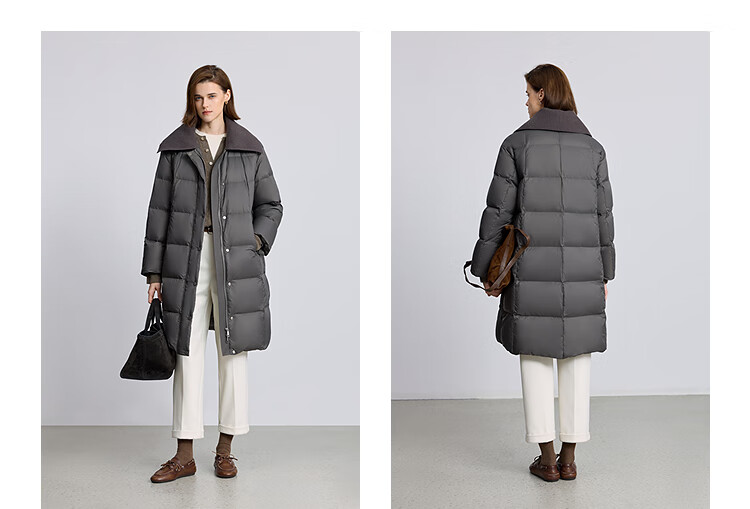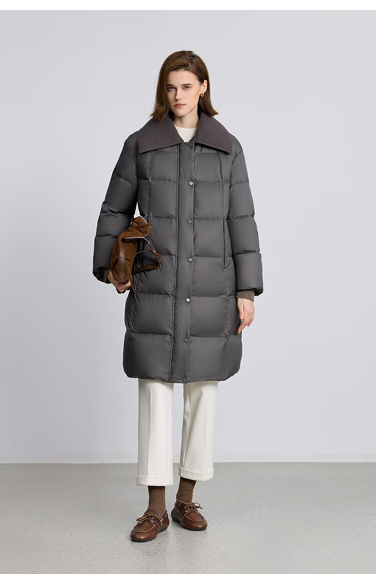 LILY2025 Winter New Retro Knitted Lapel Loose Casual 90 Duck Down Puff Down Jacket Women's Long 506 Medium Gray S