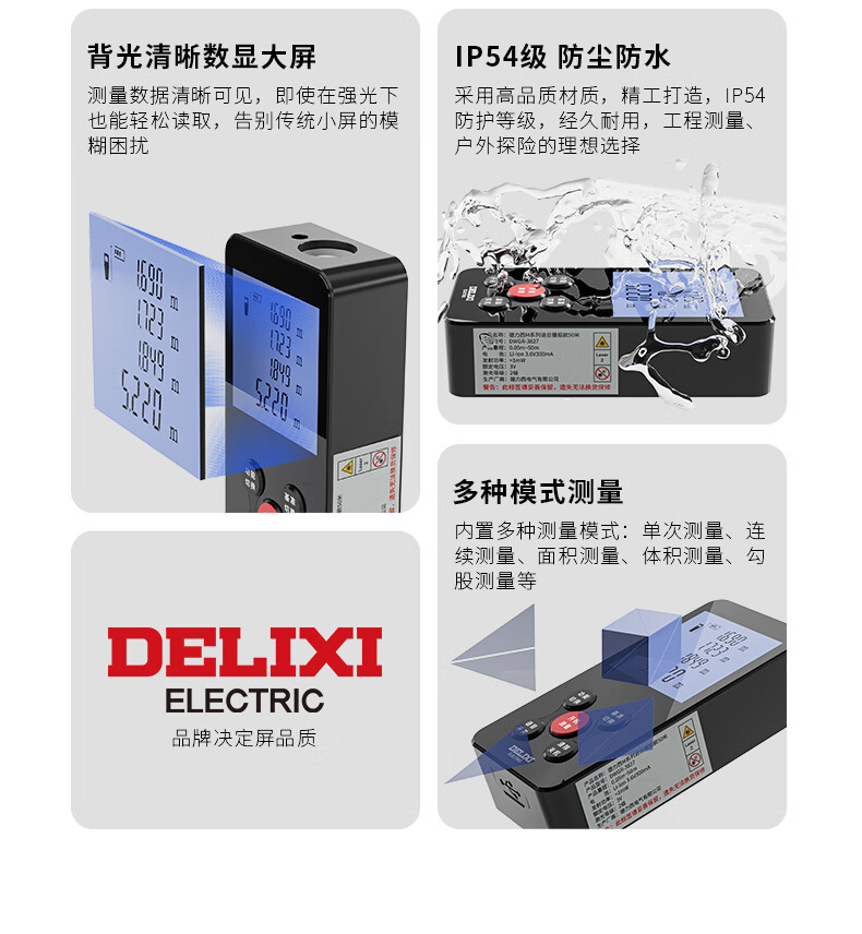 Delixi Laser Distance Measurement High-precision Electronic Ruler Handheld Designer Measurement Room Instrument 50 Meters_ _High-Precision Distance Meter + Battery