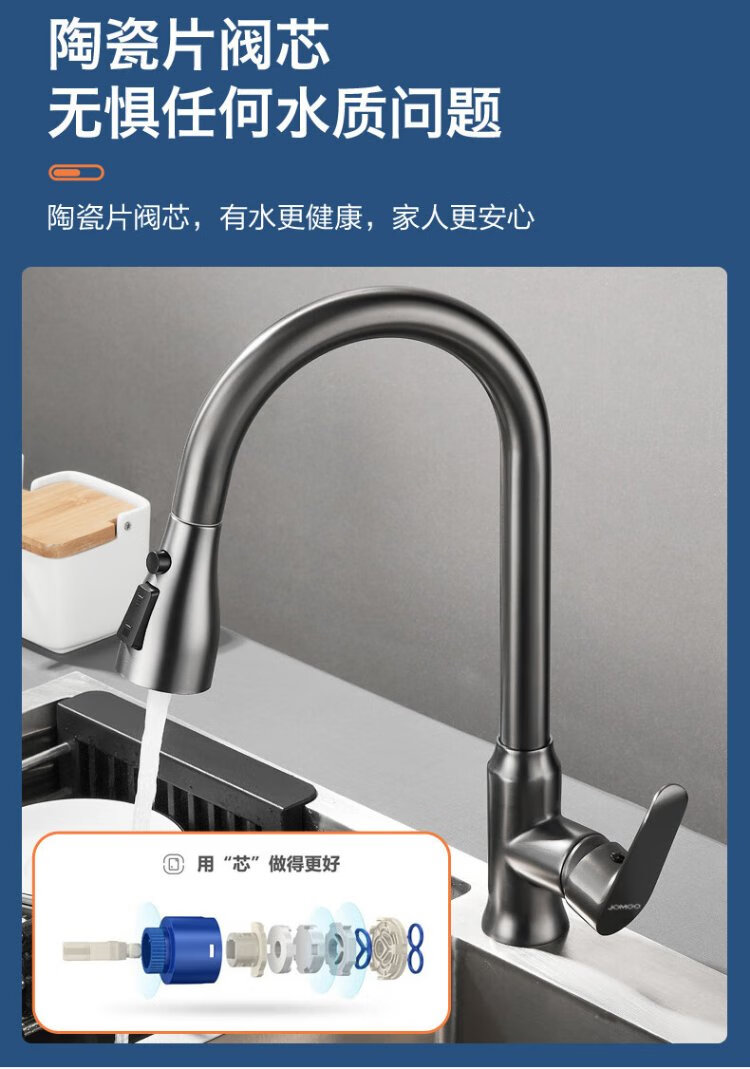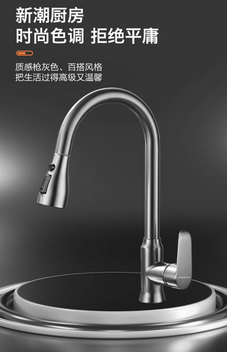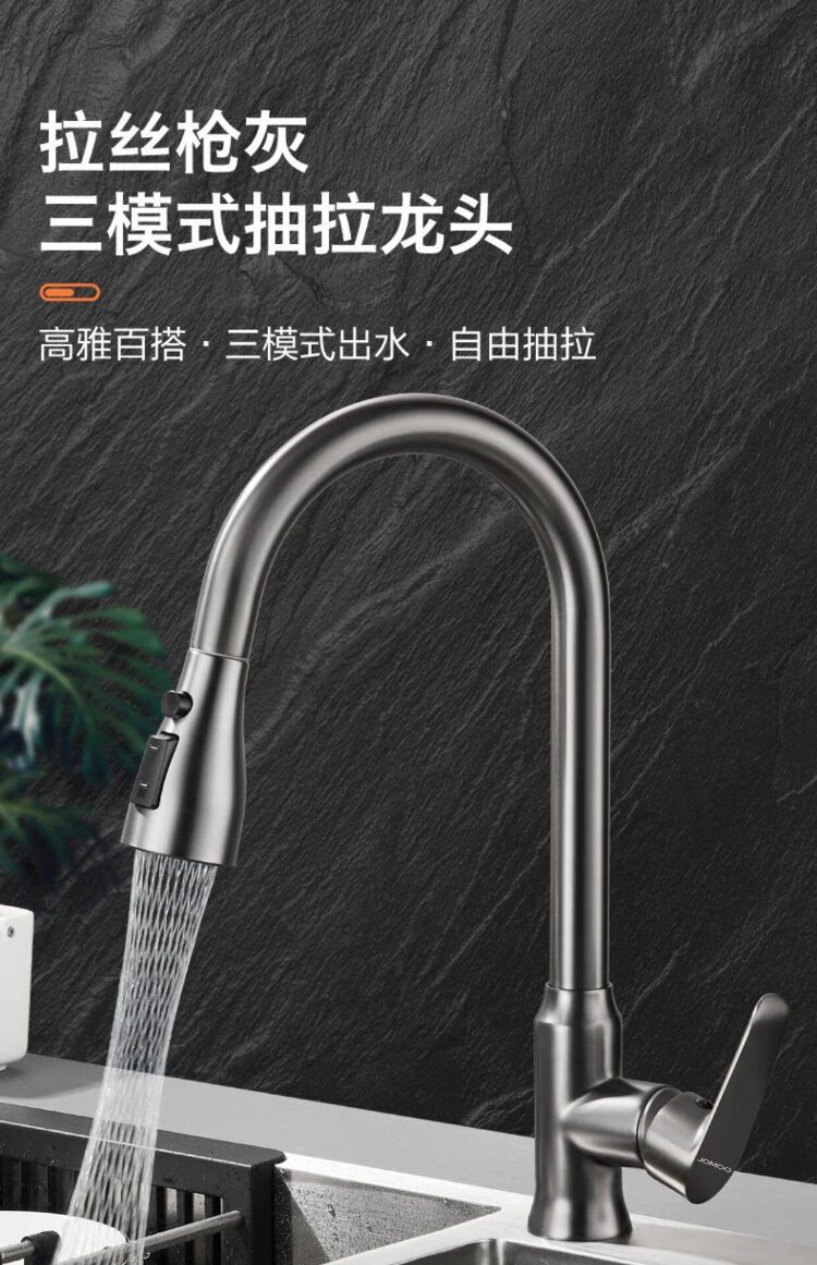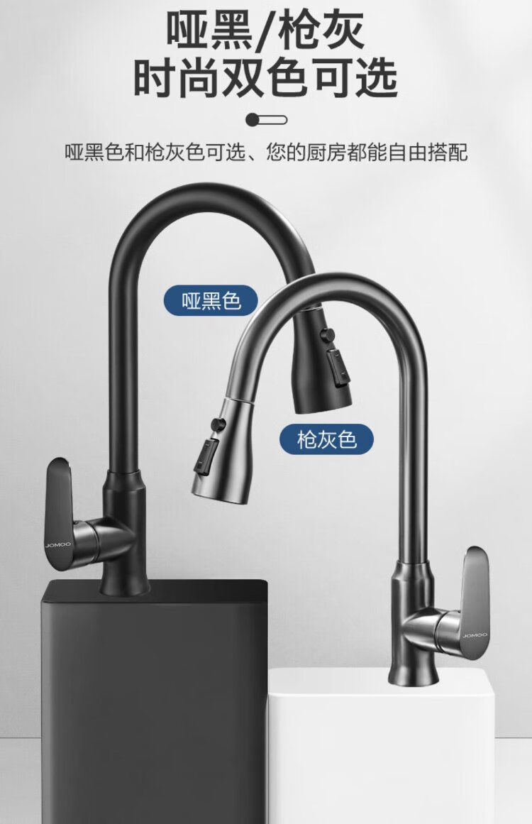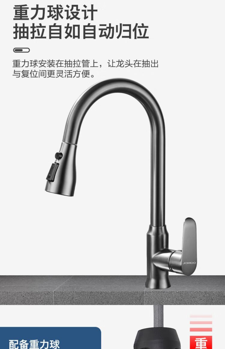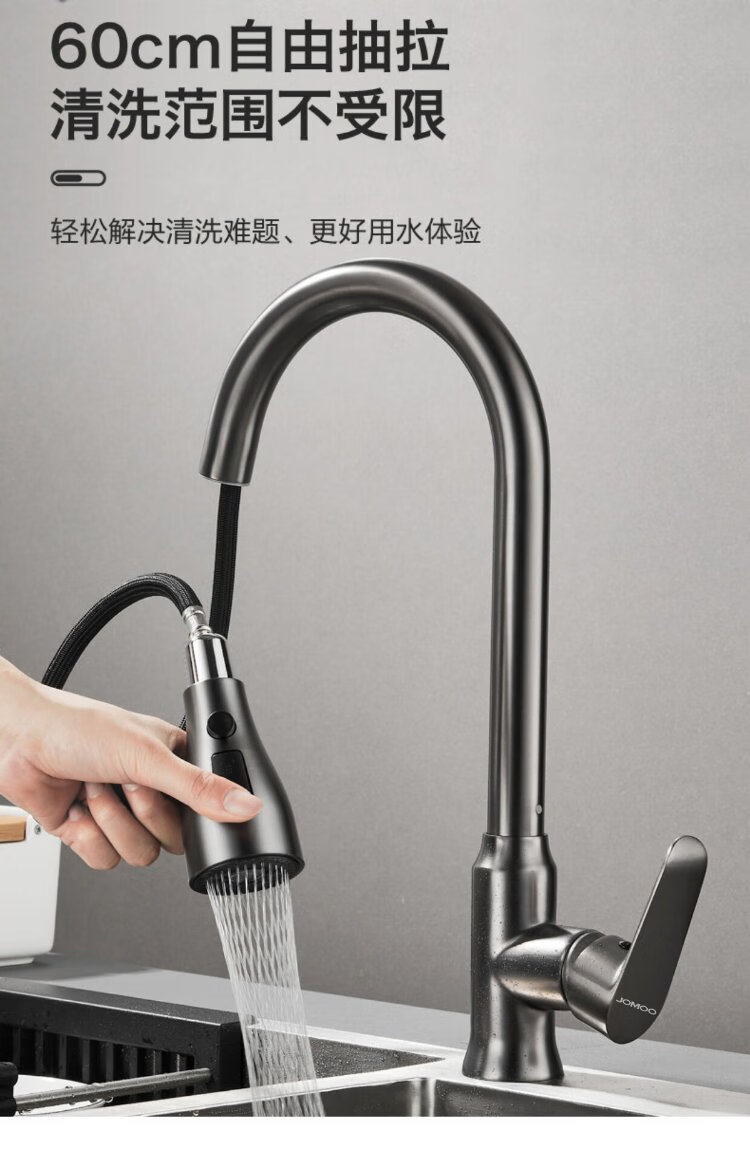 JOMOO all-copper kitchen pull-out hot and cold faucet anti-splash vegetable basin washing dishes laundry pool balcony rotatable sink small waist double blade water outlet - gun gray