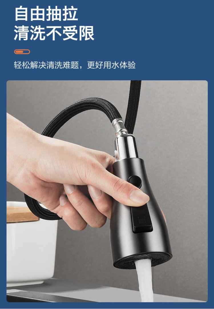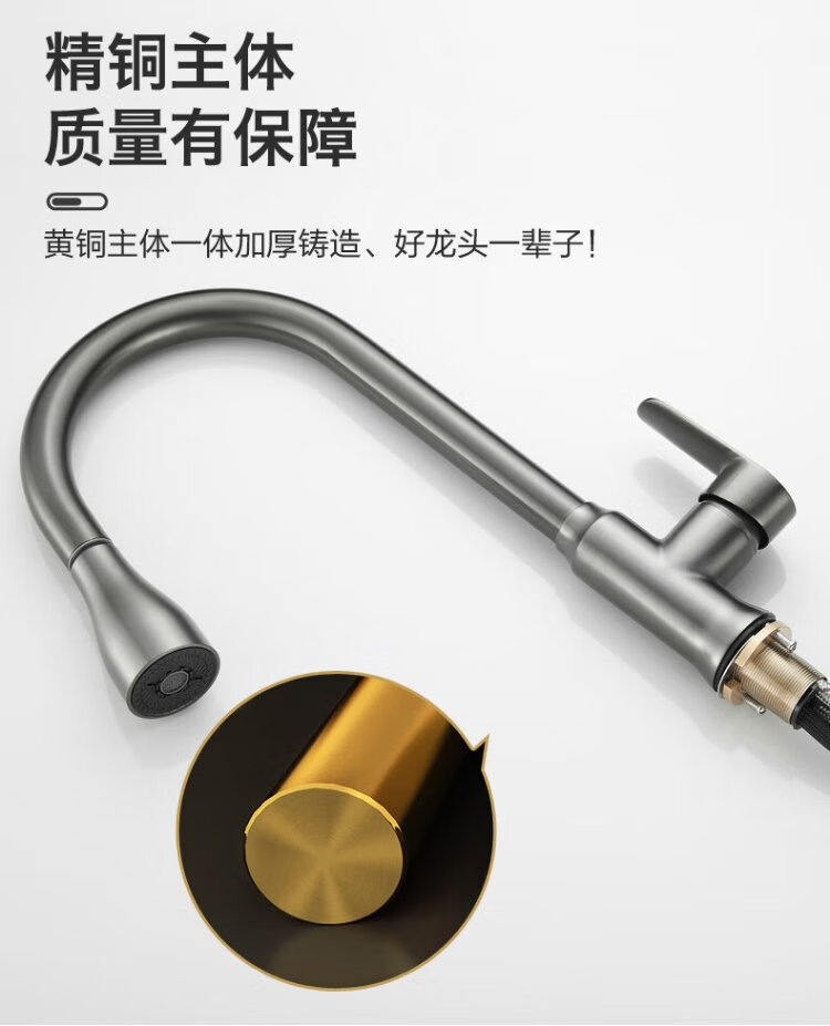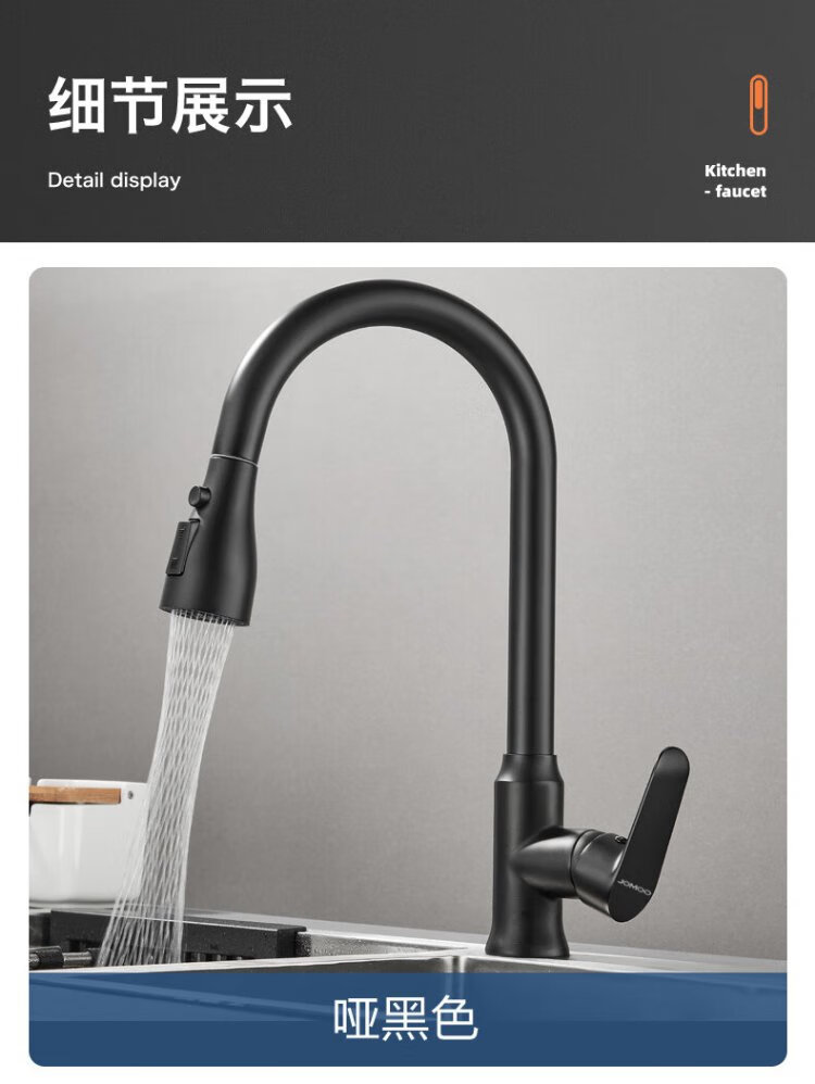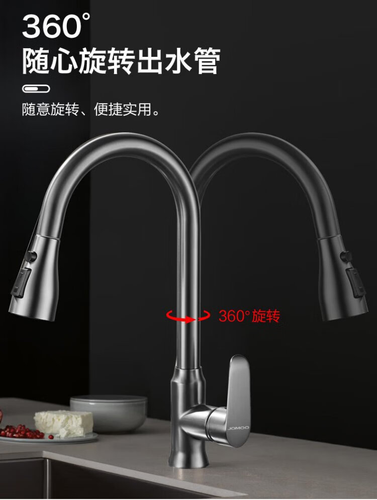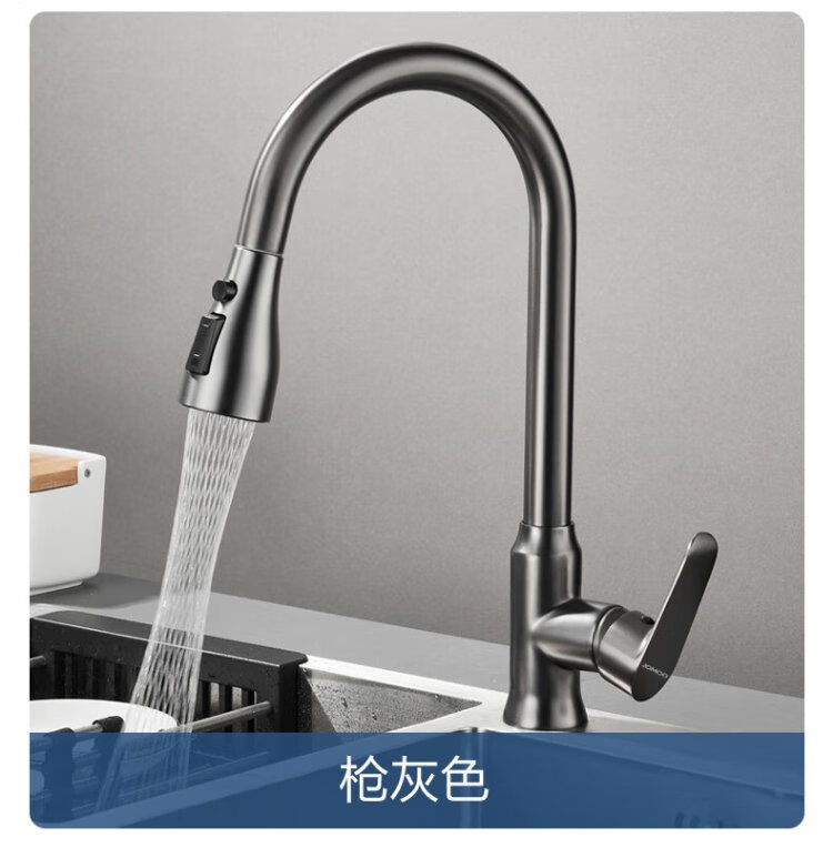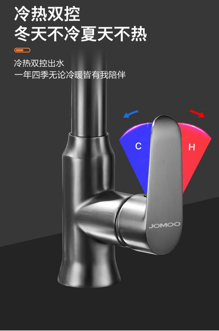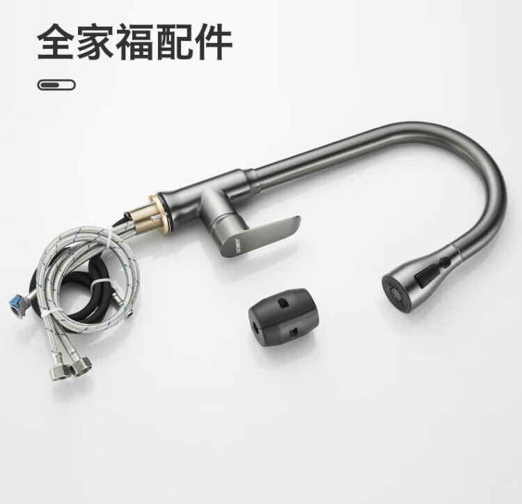JOMOO all-copper kitchen pull-out hot and cold faucet anti-splash vegetable basin washing dishes laundry pool balcony rotatable sink small waist double blade water outlet - gun gray