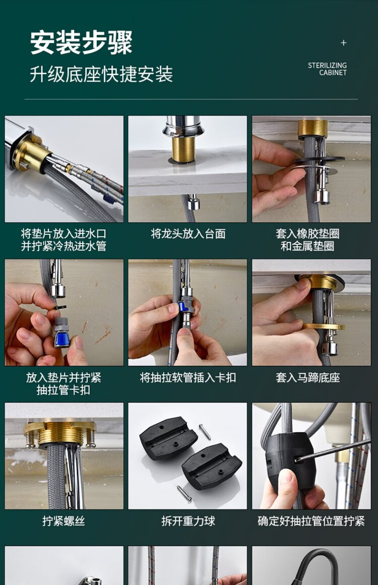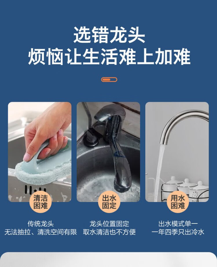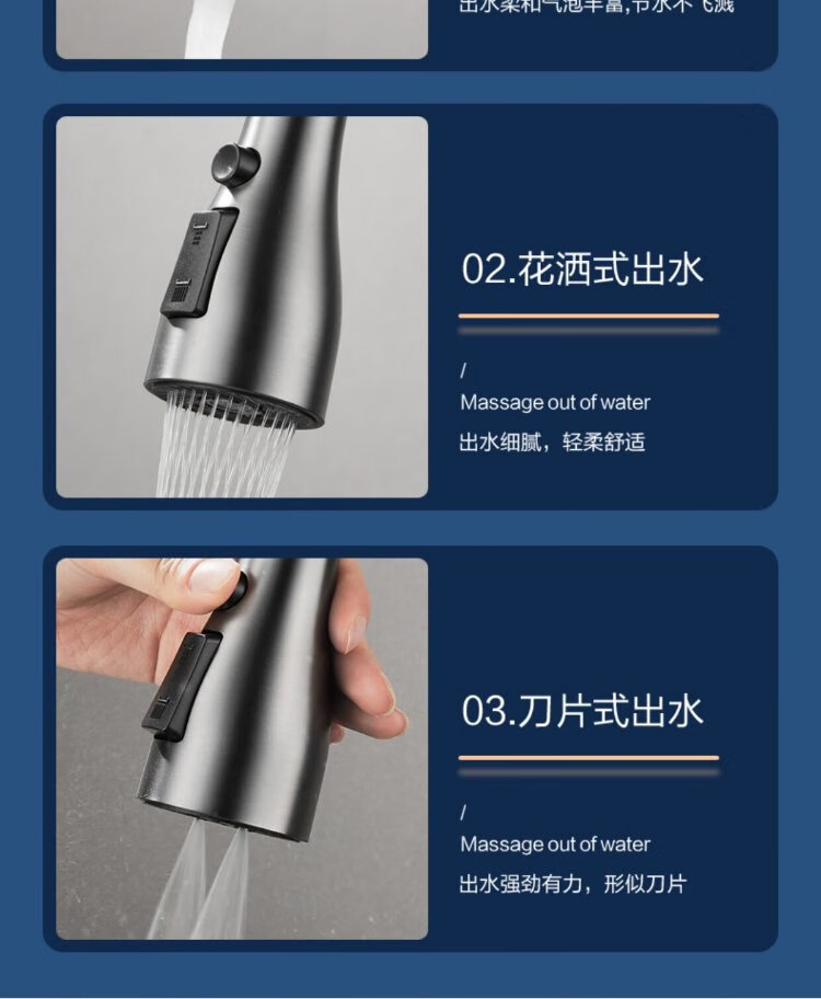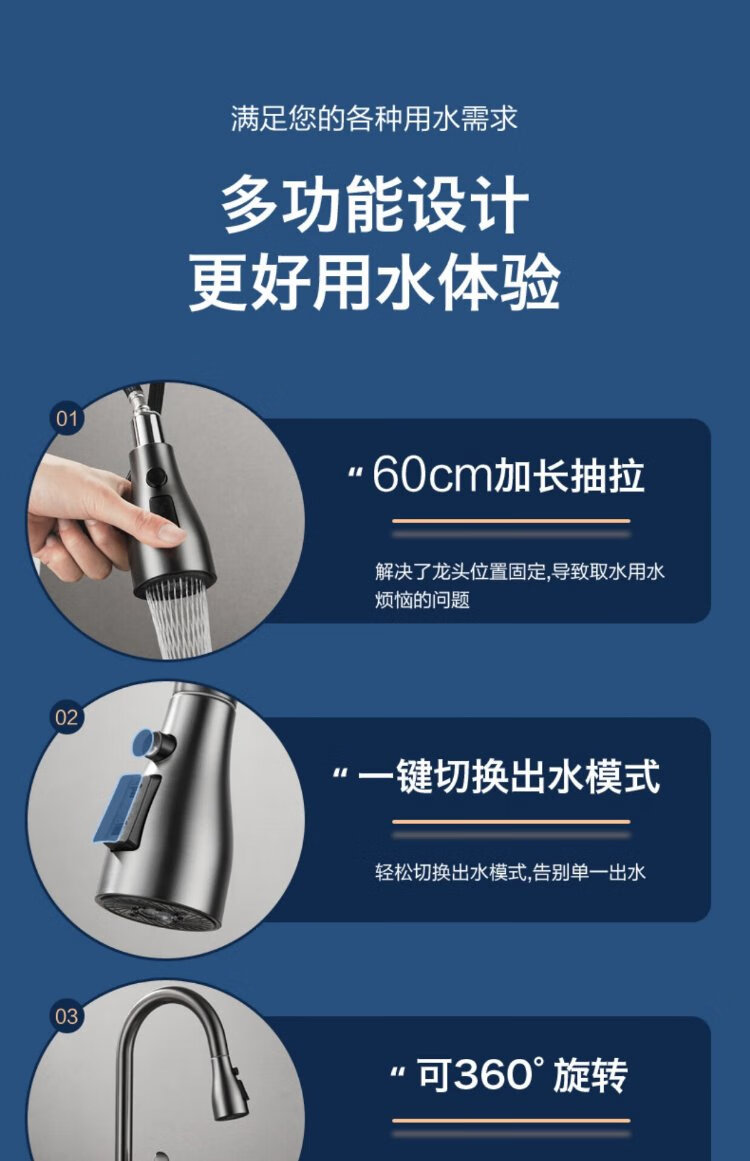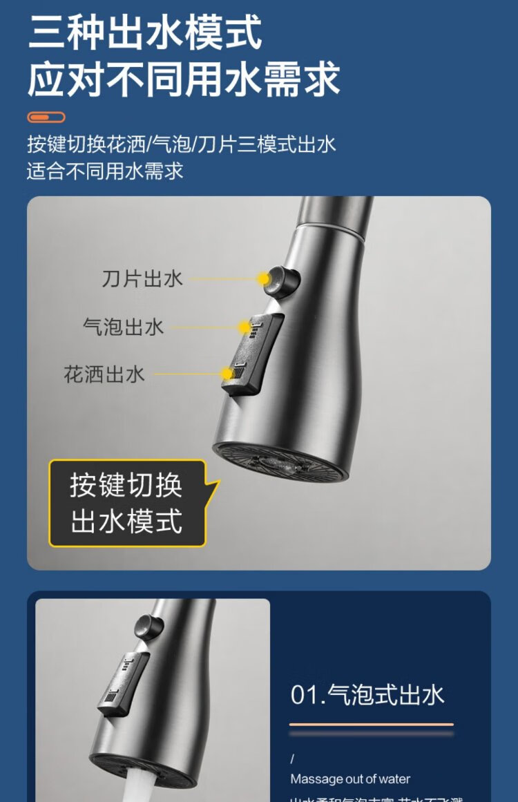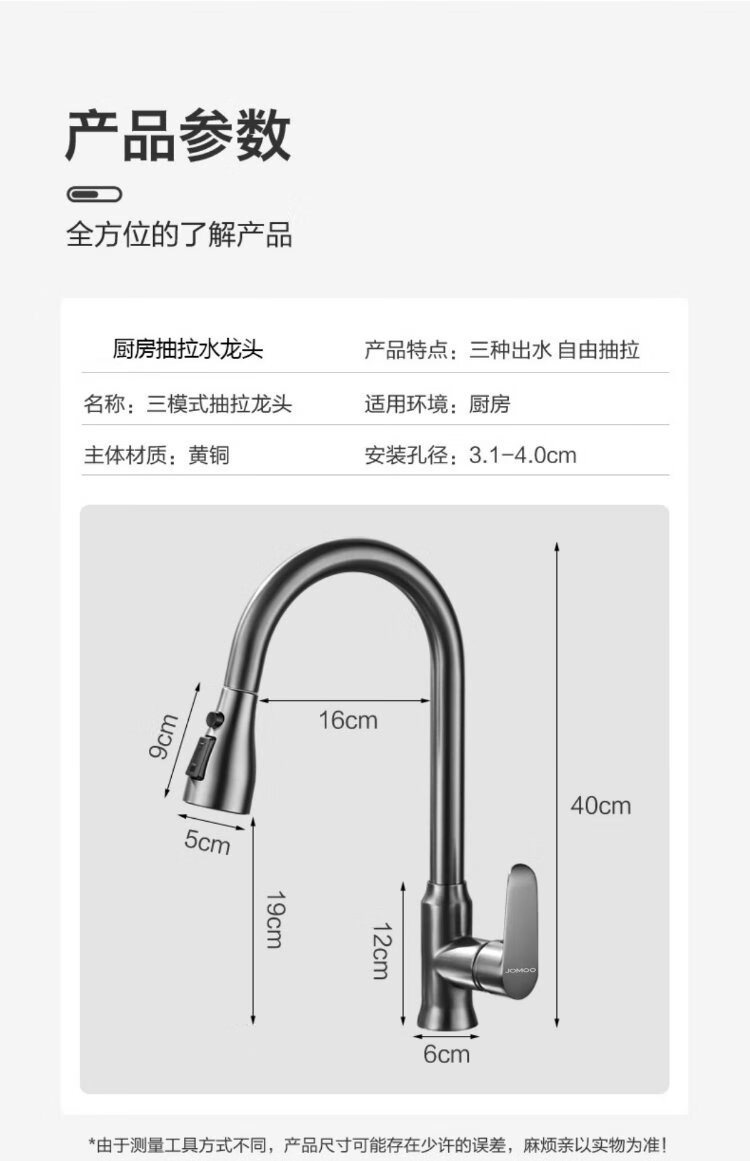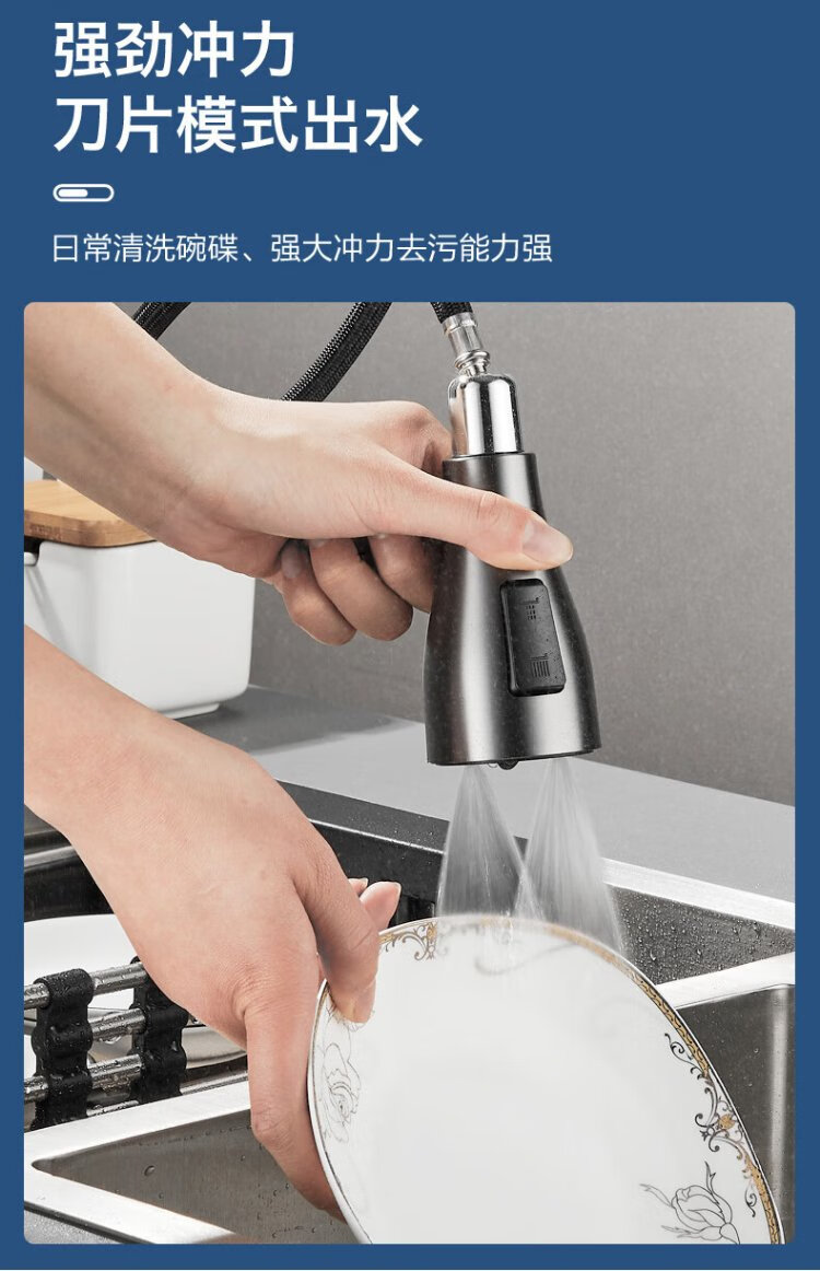 JOMOO all-copper kitchen pull-out hot and cold faucet anti-splash vegetable basin washing dishes laundry pool balcony rotatable sink small waist double blade water outlet - gun gray