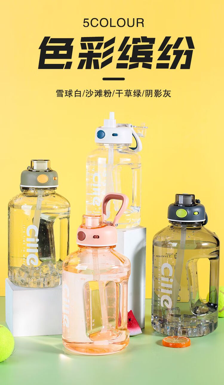 Xile large-capacity water cup for men and women sports water bottle bucket ton bucket ton cup high temperature resistant ton bucket Chinese style snowball white 1.0L