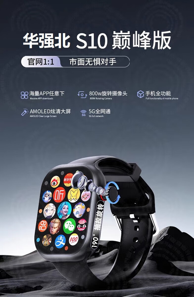 Wami 2025 new Huaqiangbei S10watch smart phone watch can insert card S9max multi-function full screen ivory white 256G full network 5G version smart watch flagship version supports card WiFi
