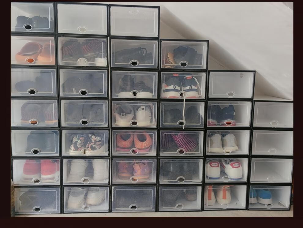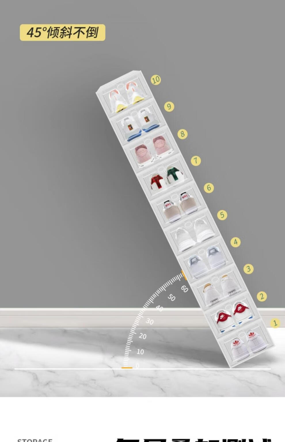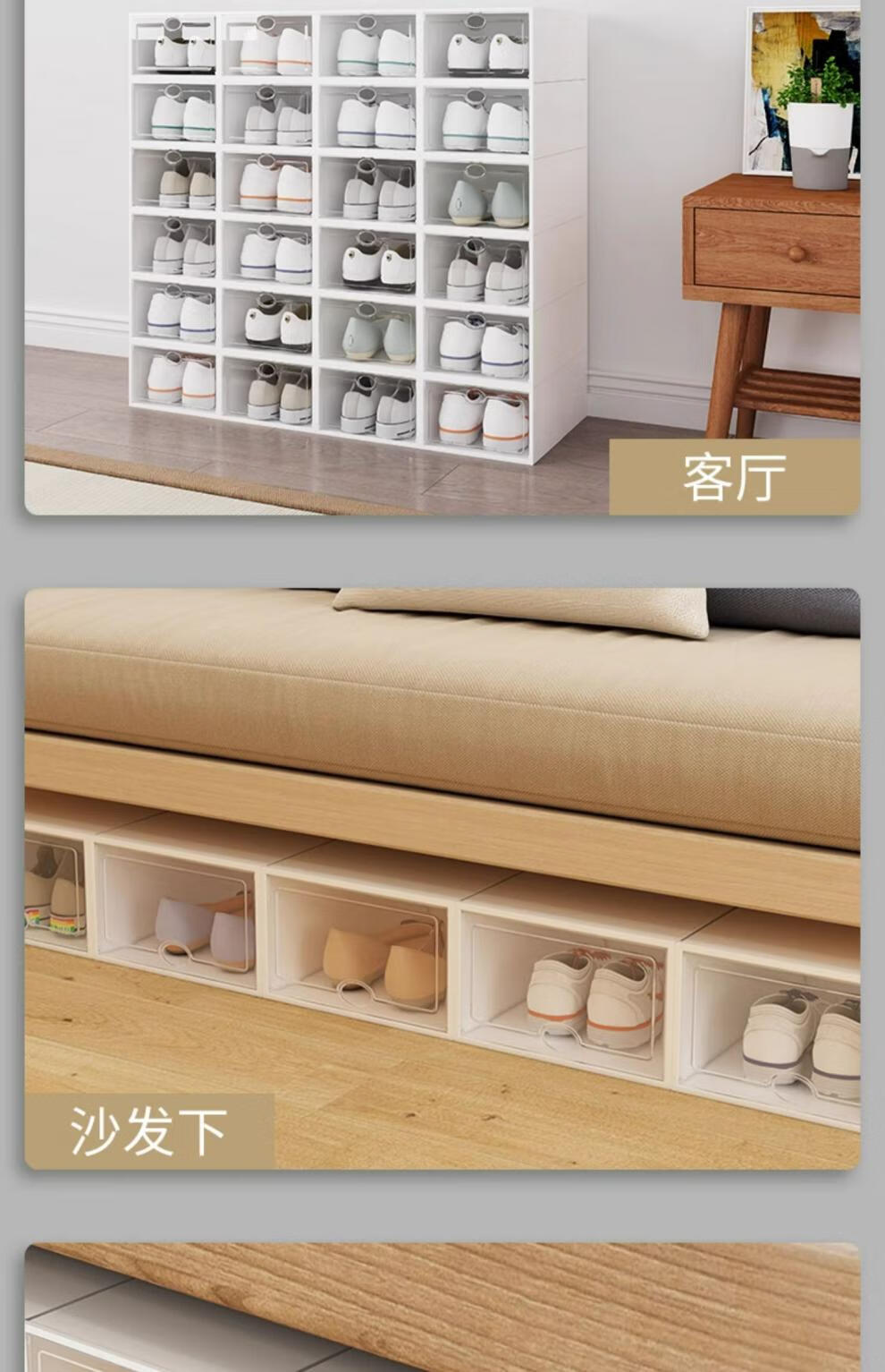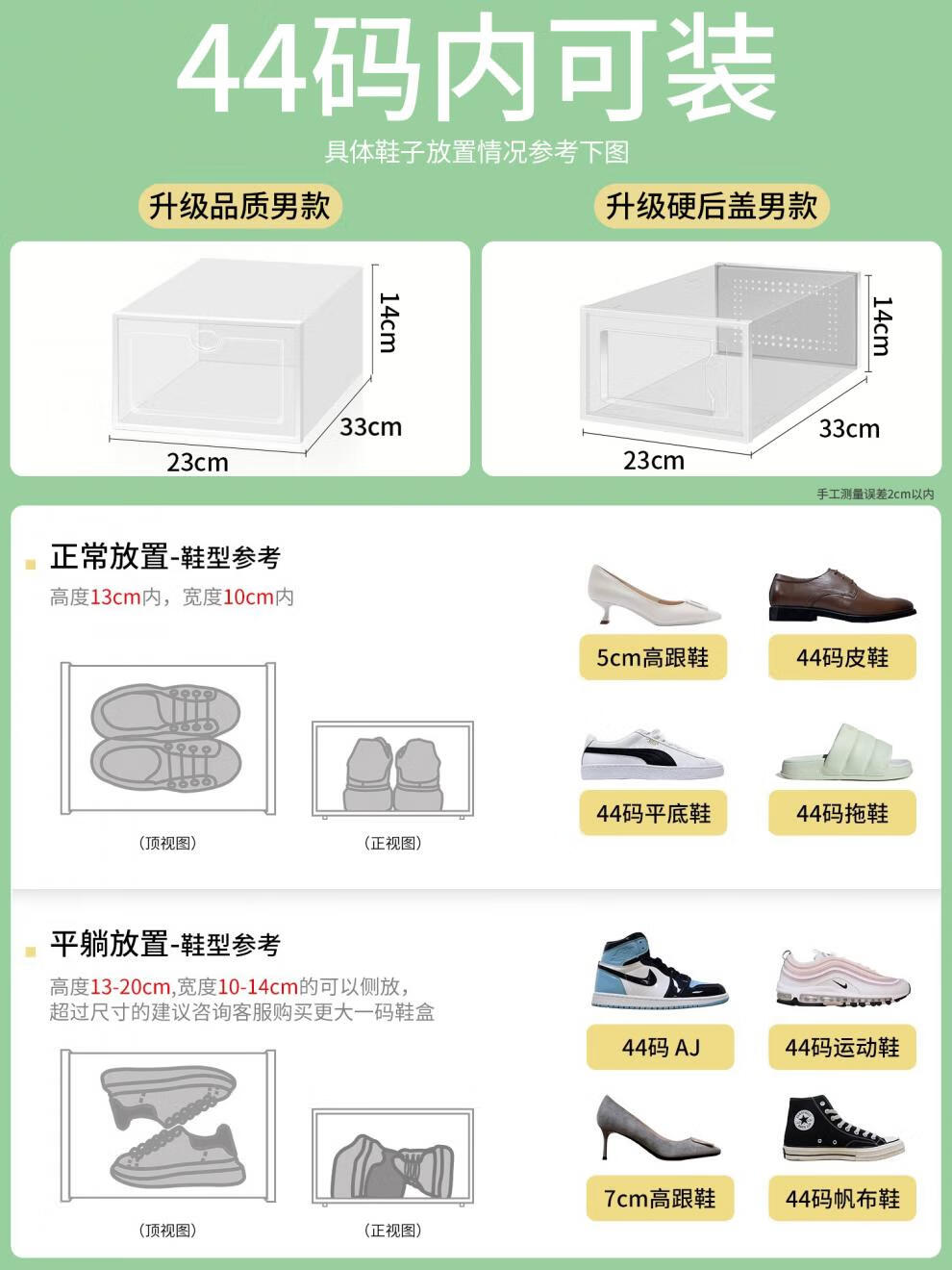 MieLanat Thickened Shoe Box Flip Shoe Storage Folding Storage Box Drawer-Type Transparent Shoe Cabinet Plastic Shoe Rack Space-Saving Artifact Upgraded Thickening - Stronger Load-bearing Size 44 Male White Total 6 Pieces Width 23_ 0x0x0cm