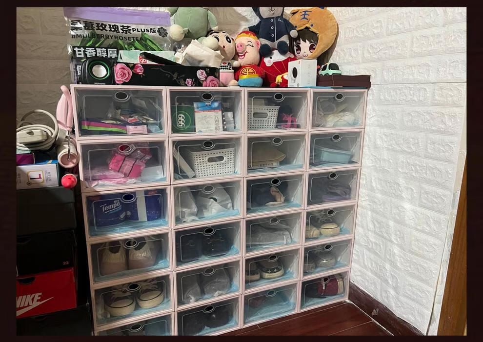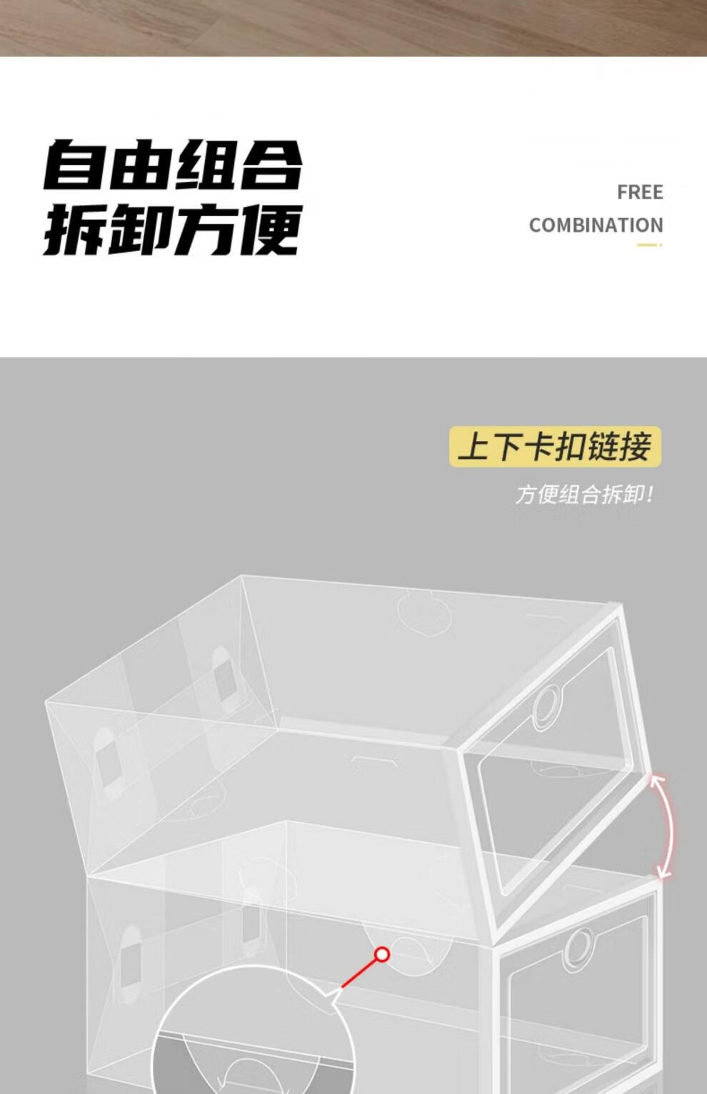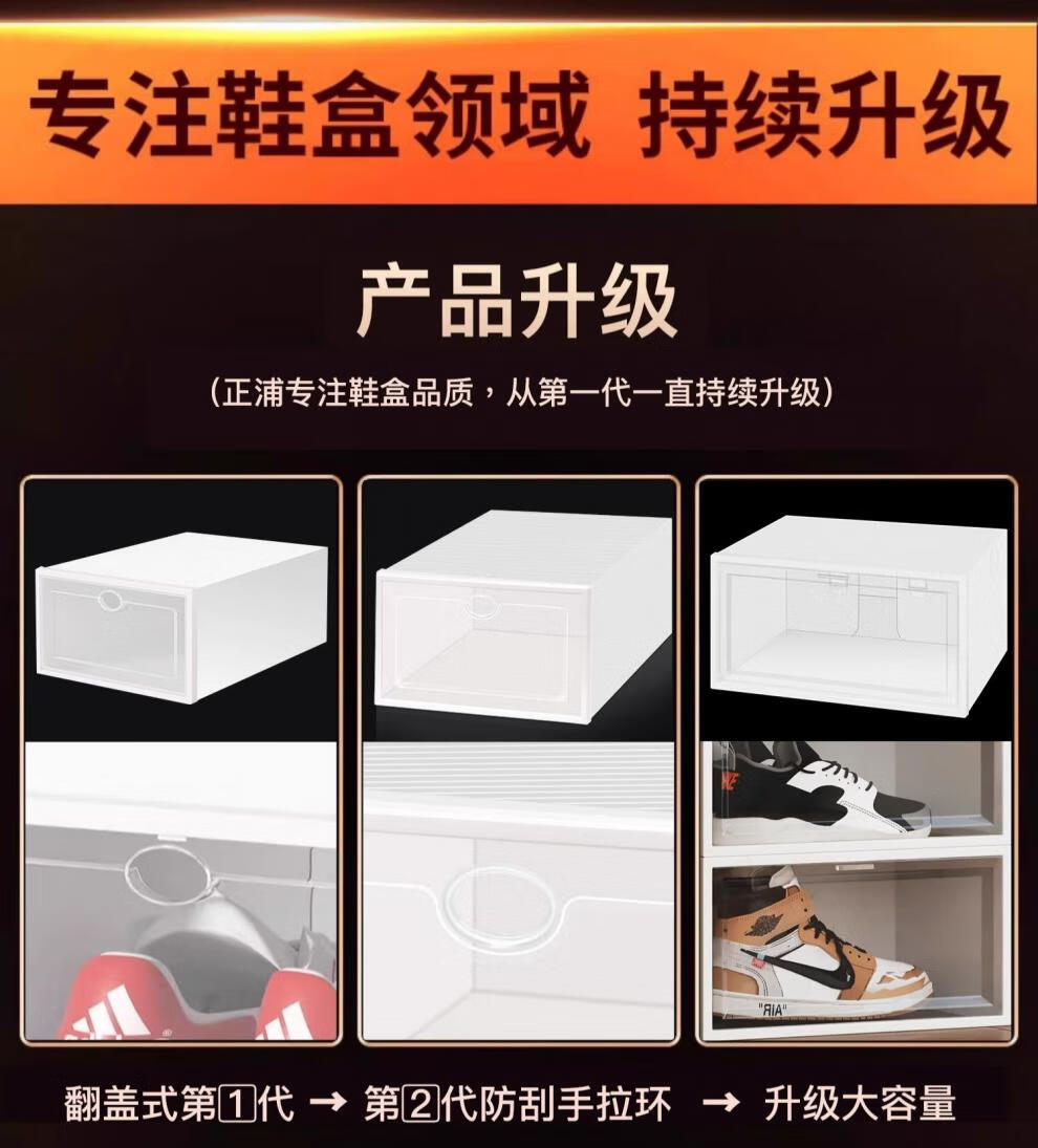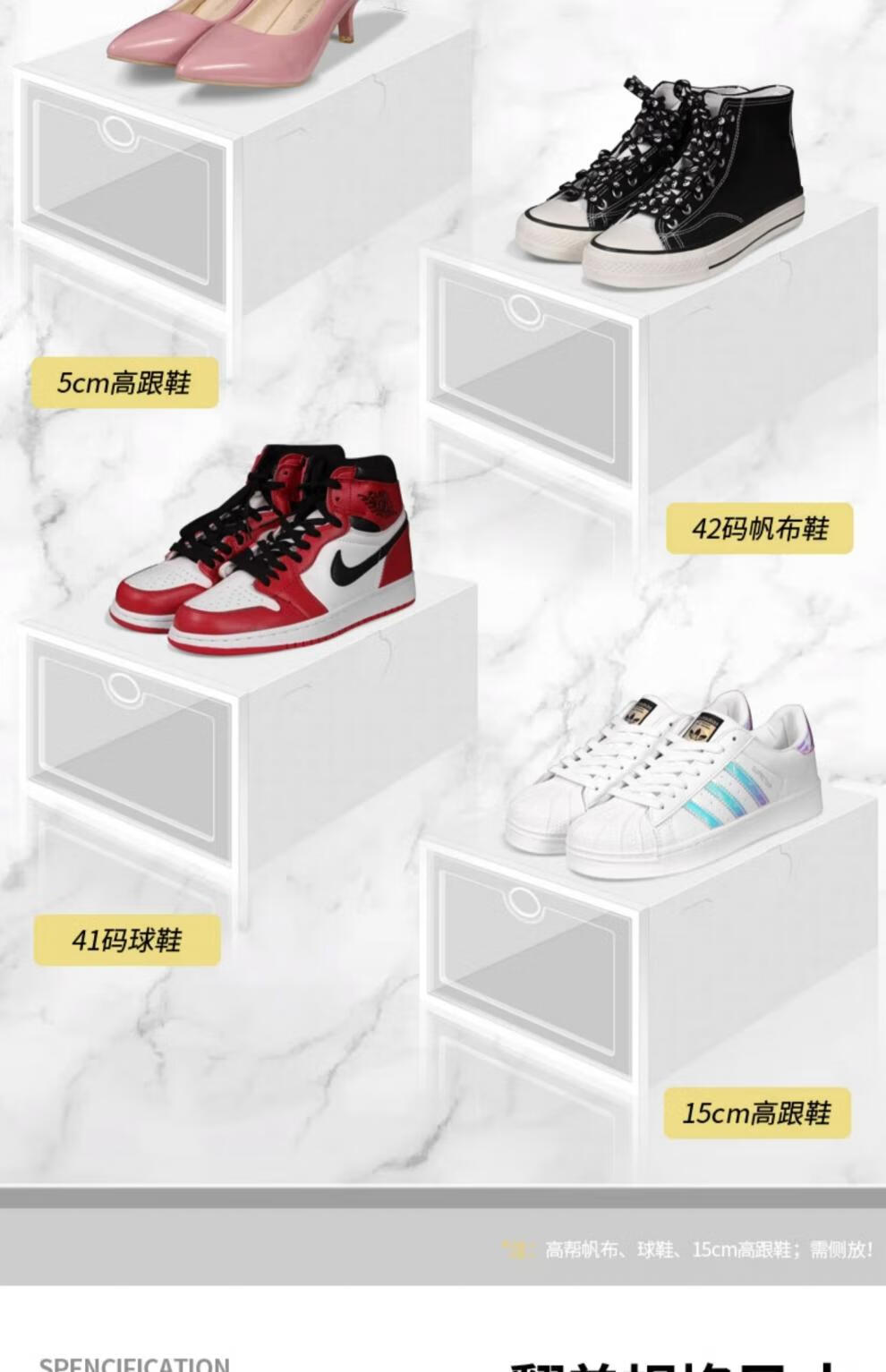 MieLanat Thickened Shoe Box Flip Shoe Storage Folding Storage Box Drawer-Type Transparent Shoe Cabinet Plastic Shoe Rack Space-Saving Artifact Upgraded Thickening - Stronger Load-bearing Size 44 Male White Total 6 Pieces Width 23_ 0x0x0cm