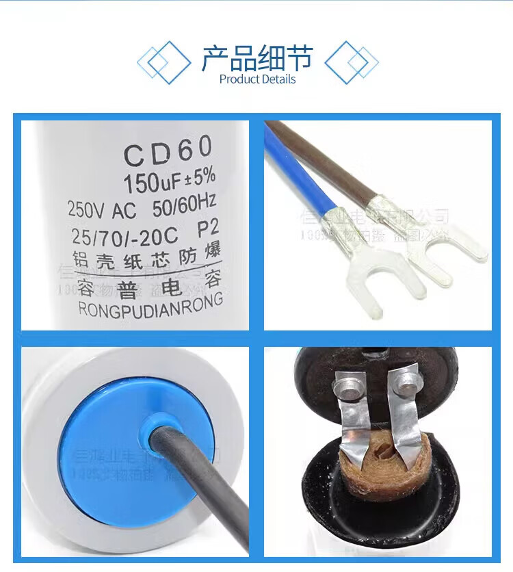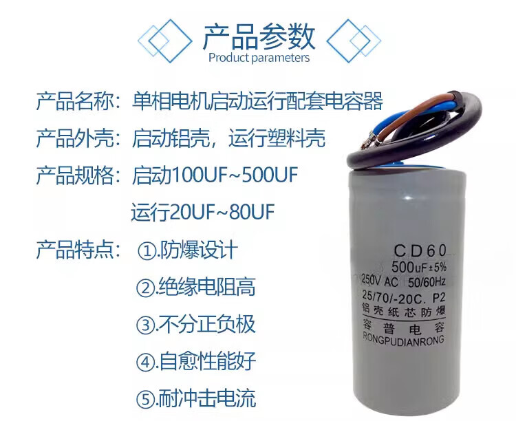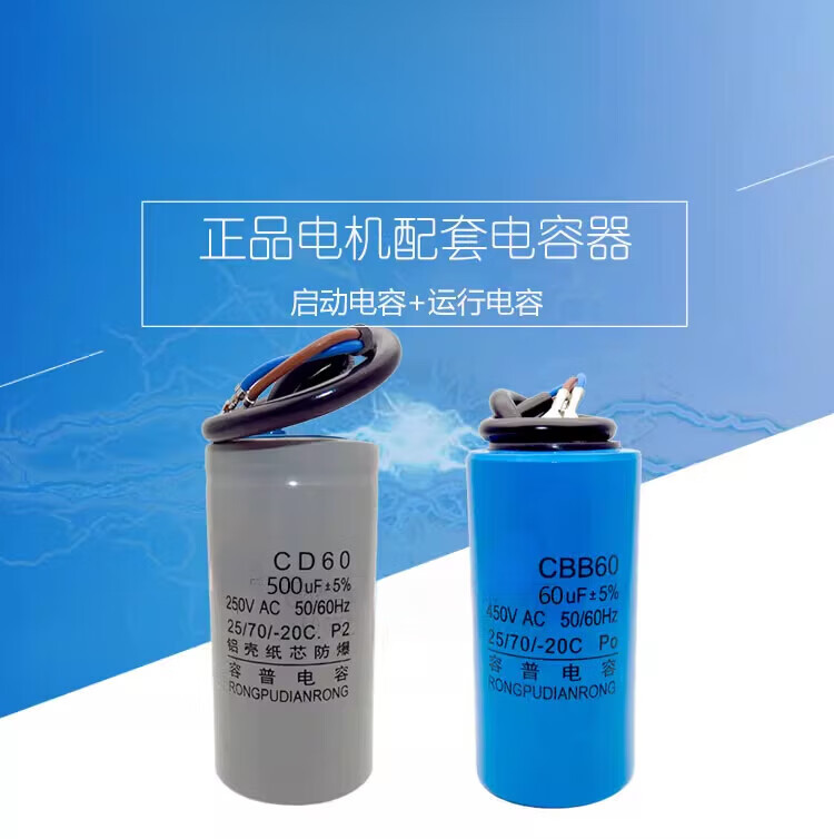 He Jiagong motor capacitor 450V single-phase motor 220V starting and running capacitor 250UF40UF300UF50U aluminum shell 250V250UF + large volume 40UF