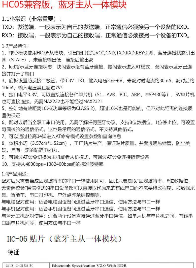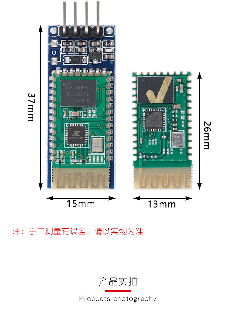 HC05/HC06 Bluetooth serial port transparent transmission module Bluetooth wireless serial port communication module SMD type/with base plate HC05 Bluetooth module_with base plate No specifications