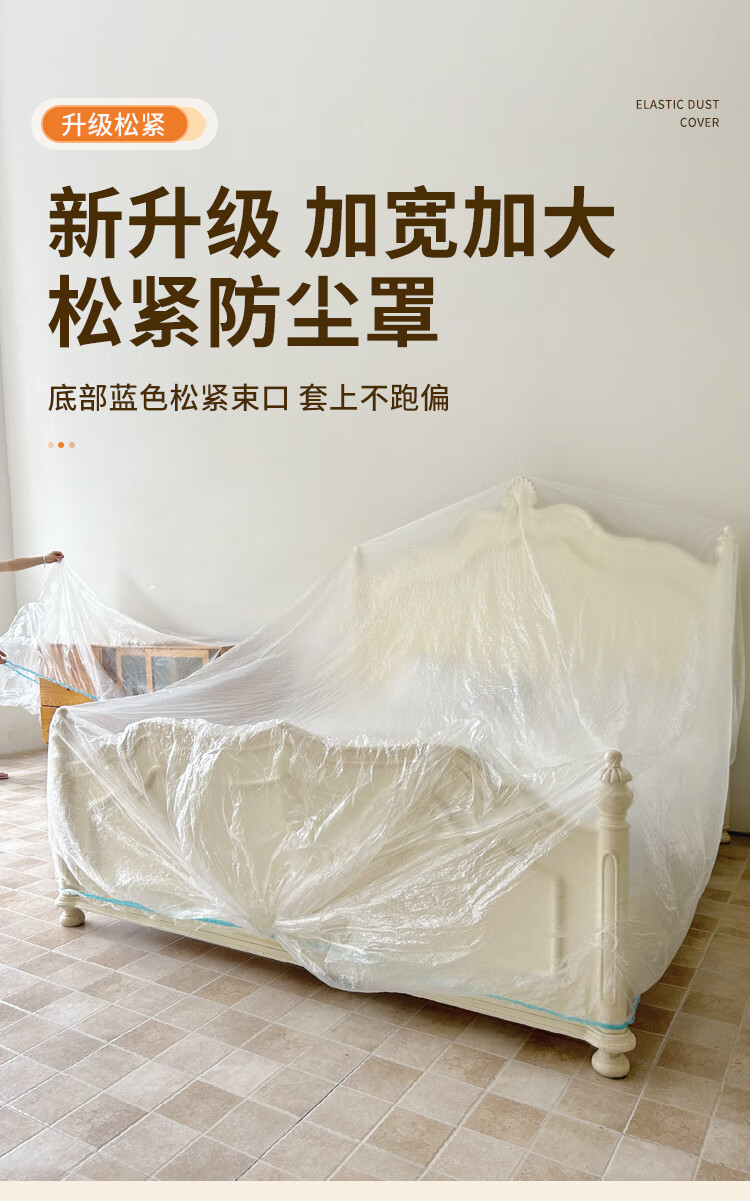 Disposable bedspread dust cover elastic drawstring bed extra large bed dust cover furniture full cover enlarged and thickened 3 pieces elastic drawstring 2 meters wide double bed cover suitable for 200x220x90cm