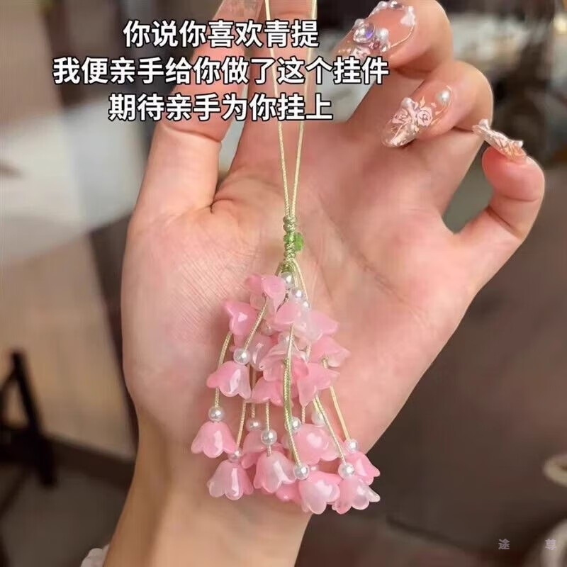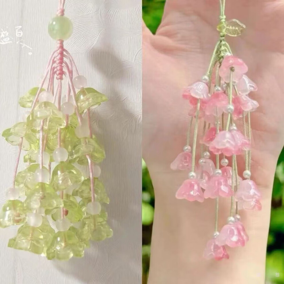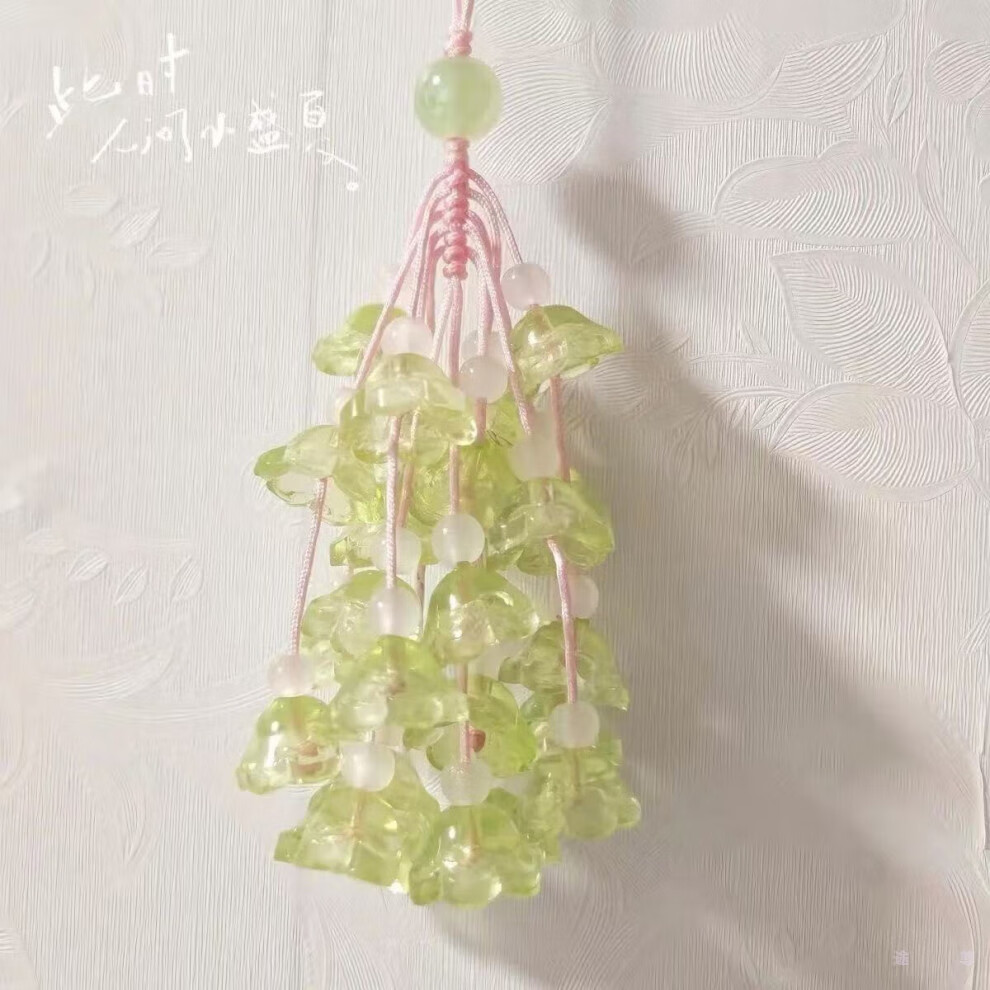 Patila green grape pendant, lily of the valley flower, handmade diy material package, small fresh mobile phone chain bag pendant, creative keychain, green grape + lily of the valley flower, one material package each