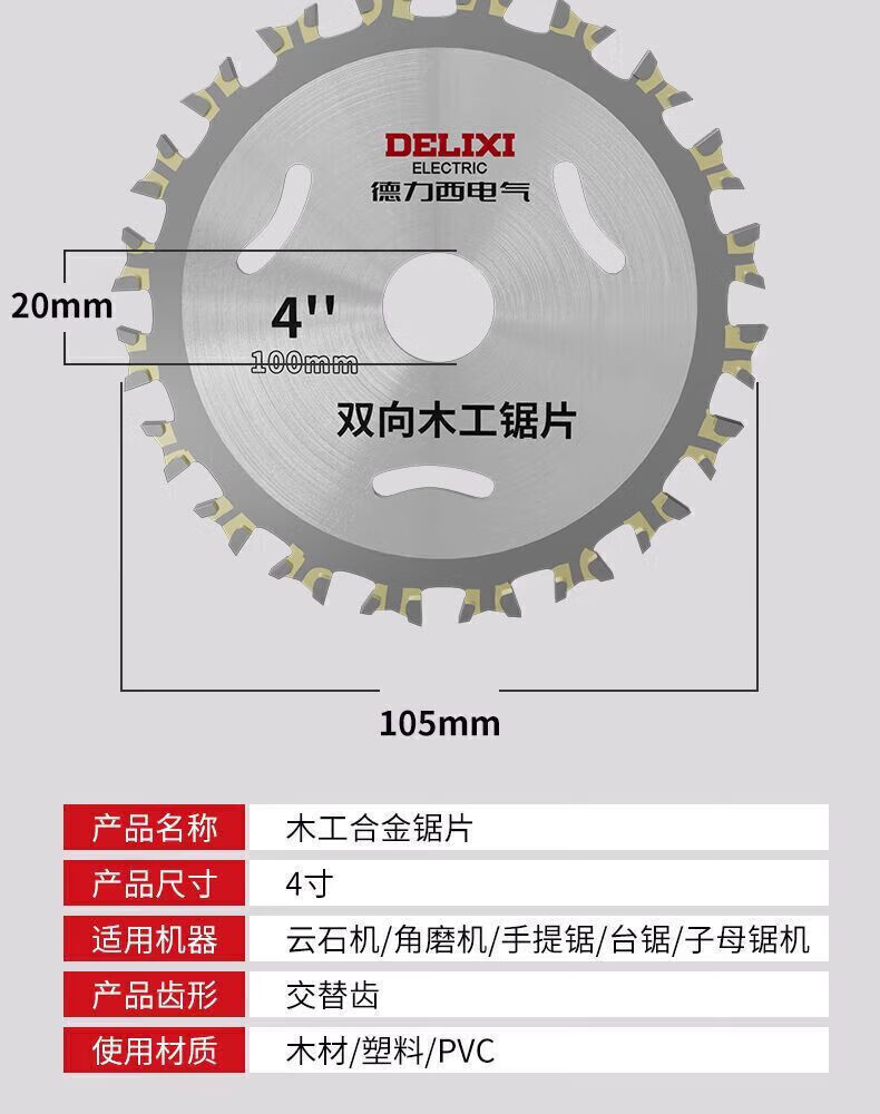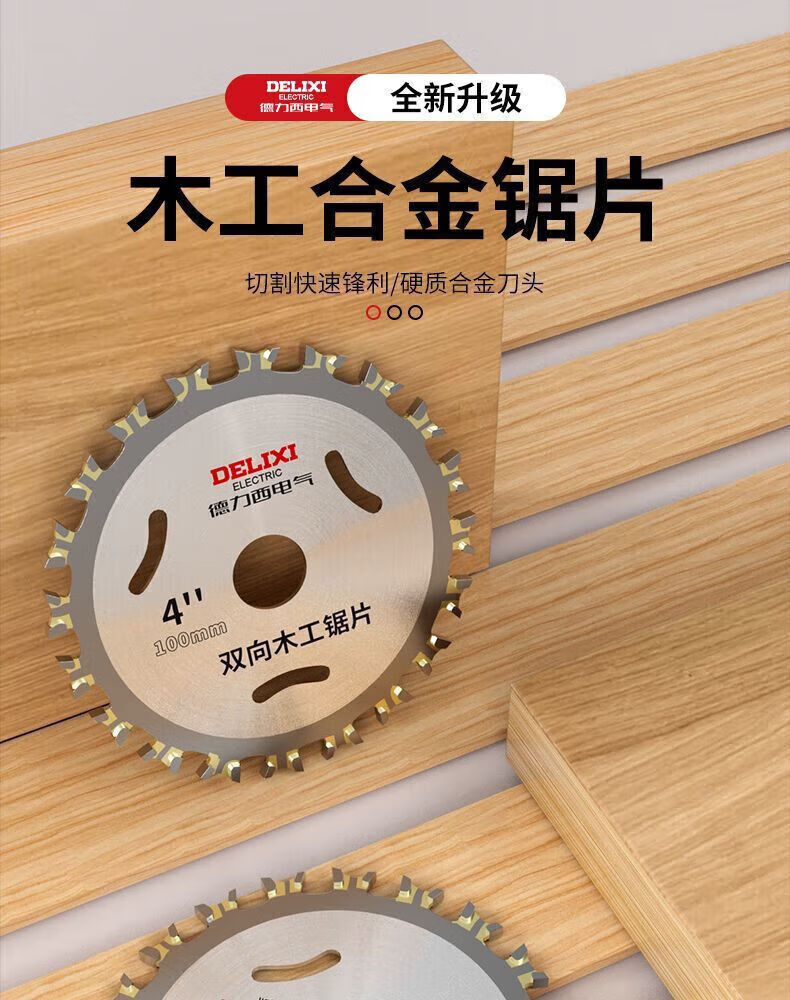 Delixi Electric double-sided alloy woodworking saw blade hard two-way wood angle grinder cutting blade circular saw blade sharp and wear-resistant 4-inch two-way saw blade 1 piece