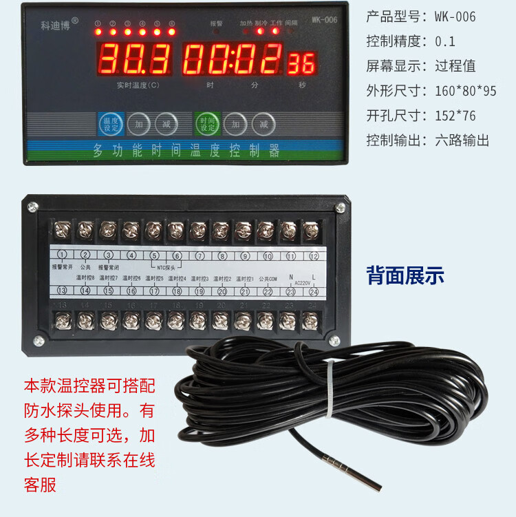 Multifunctional time and temperature controller thermostat switch livestock breeding fan water pump 4 6 8 multi-channel time control six-channel instrument + 20 meter probe