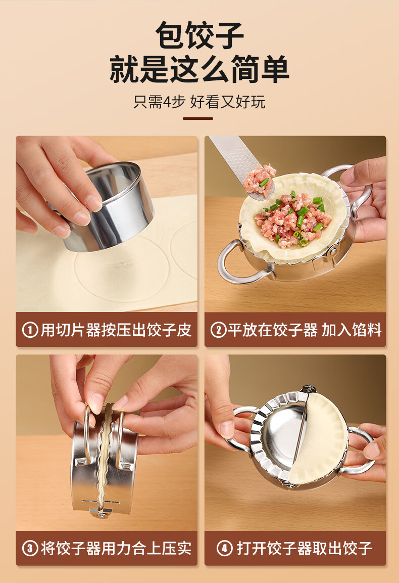 Fat Donglai's same style dumpling making tool tool, dumpling wrapper pressing mold, lazy fancy dumpling peeling household set, pattern, 2 pieces, 7.5CM dumpling maker, 304 stainless steel