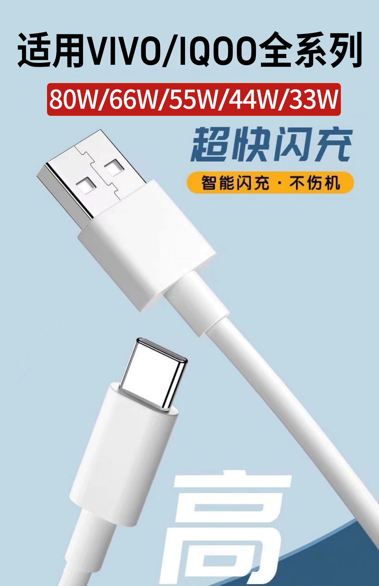 EQCG is suitable for vivo/iqoo charging cable 80w120W super flash charging data cable X200pro/80/70/S30/20/19/18/17iqooneo6se/Z10/9urbo 80W super flash charging cable 1 meter USB port