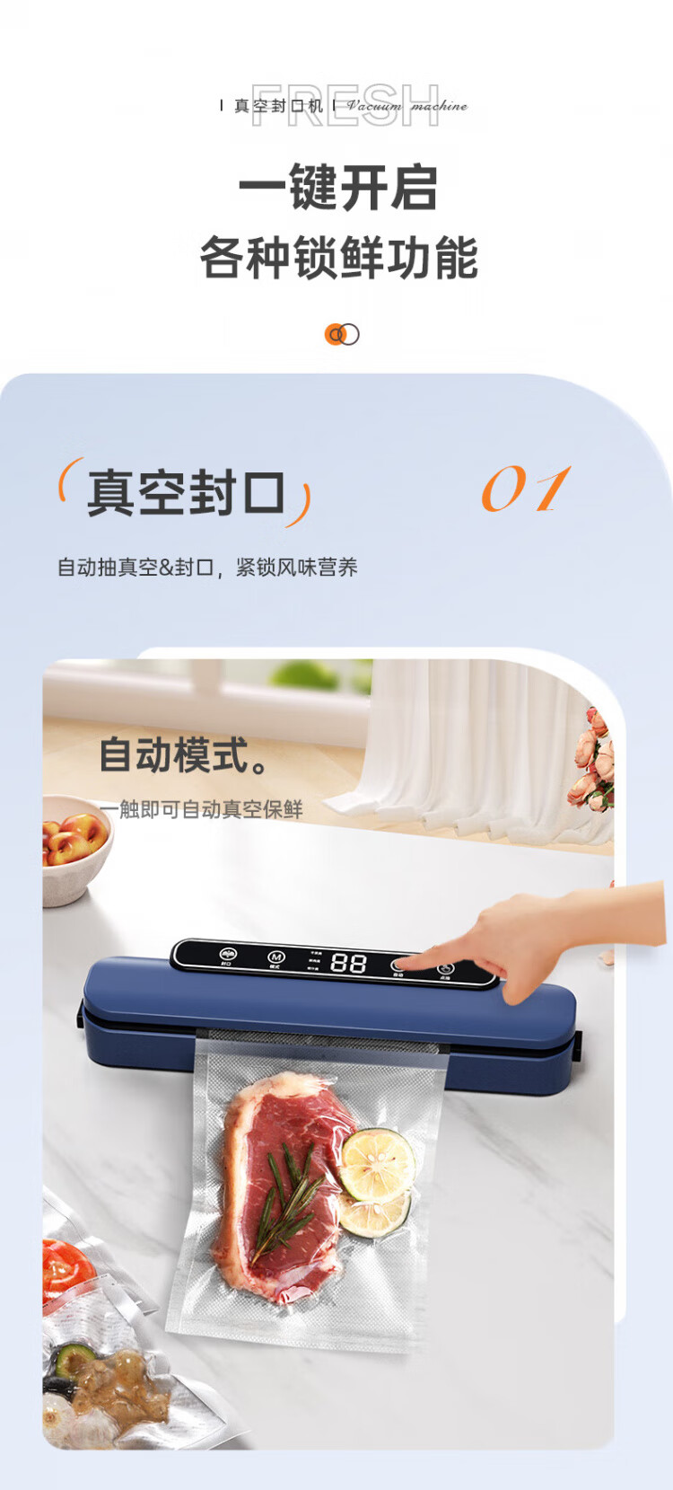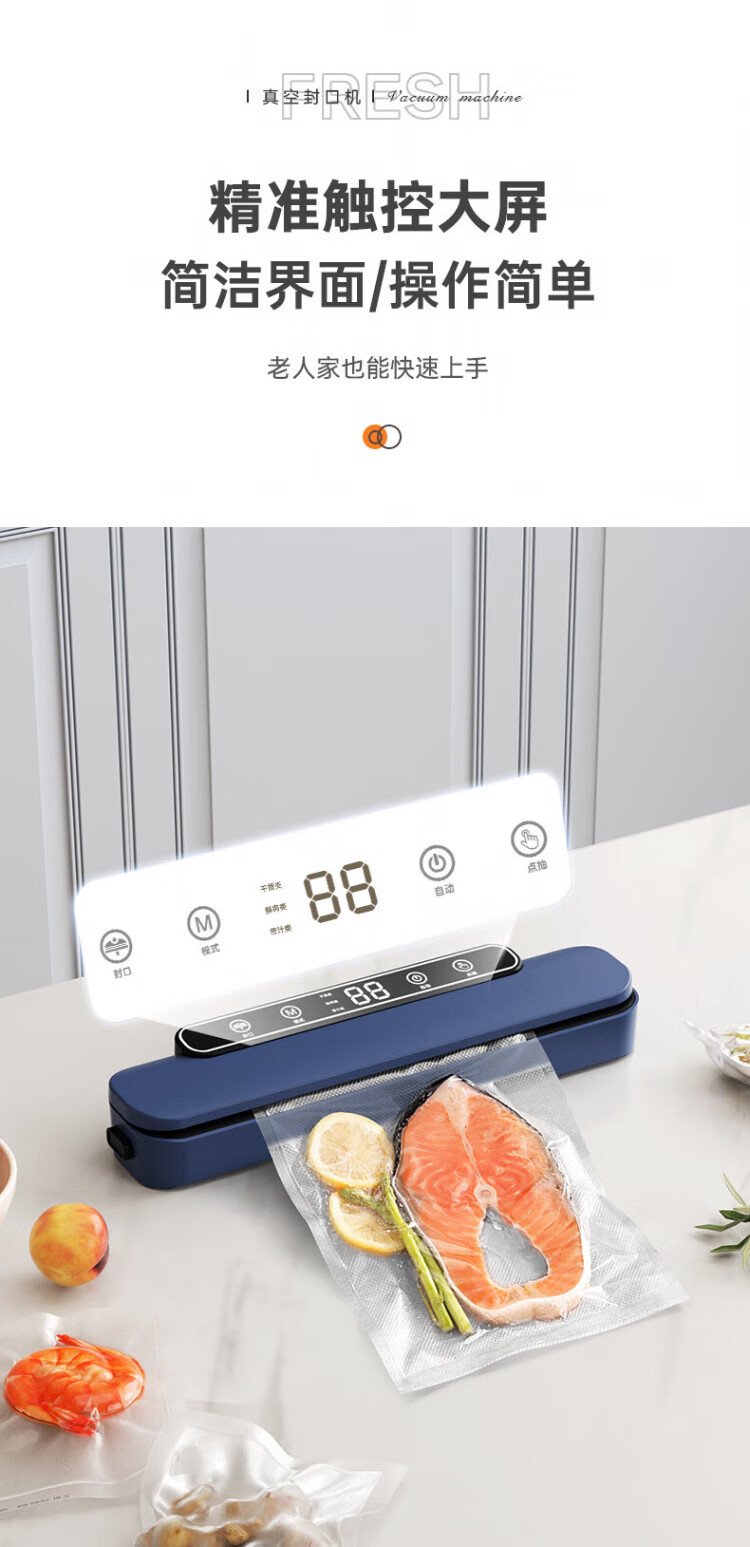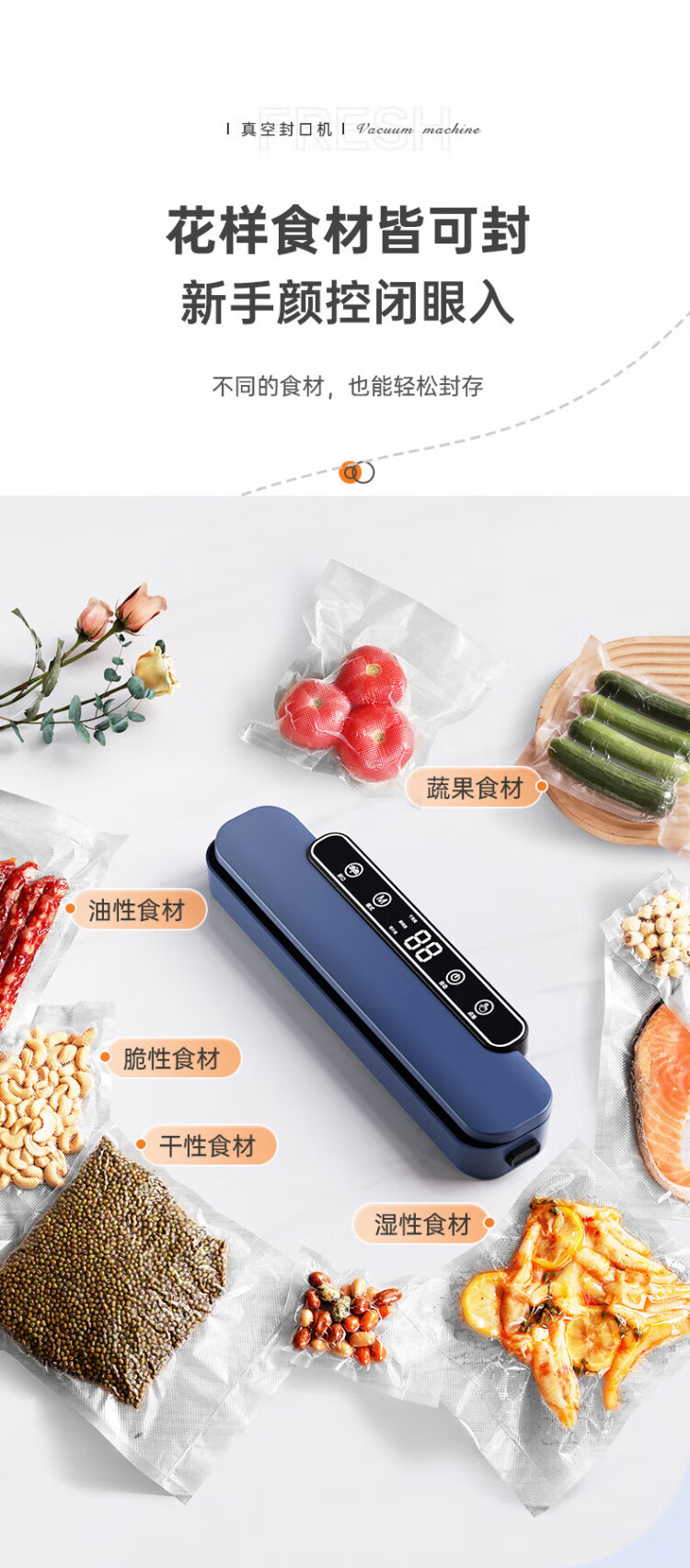 QCSK German vacuum sealing machine food dry and wet dual-use fresh-keeping compression vacuum packaging machine fully automatic high-power household commercial high-suction bag-free plastic sealing machine sausage bacon free 30 20*30 pattern bags intelligent display purple light sterilization