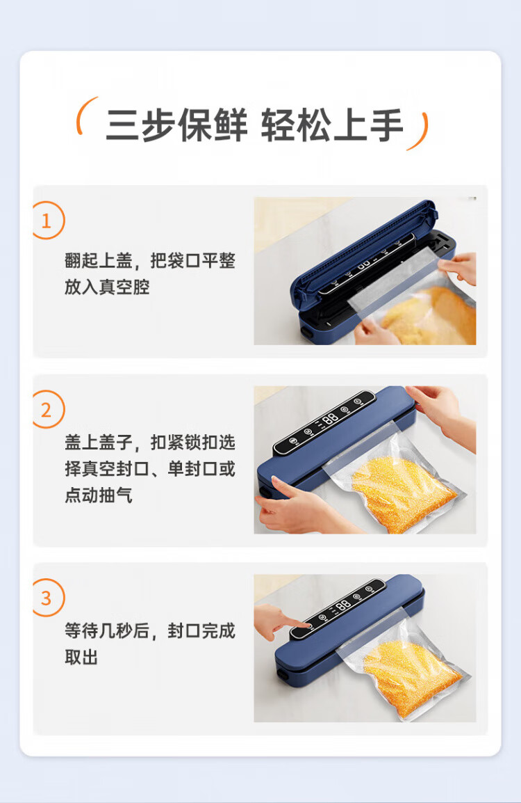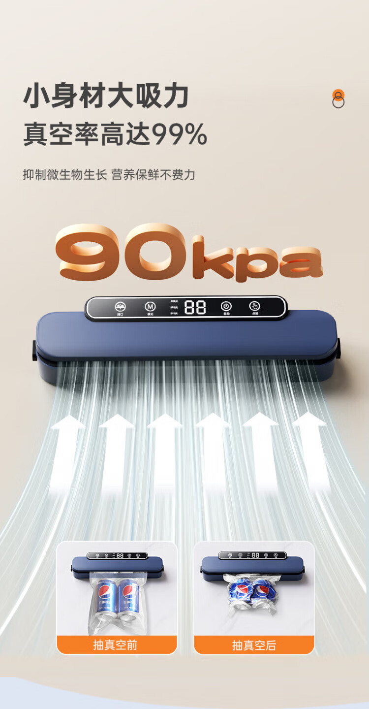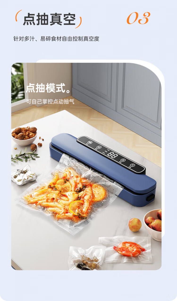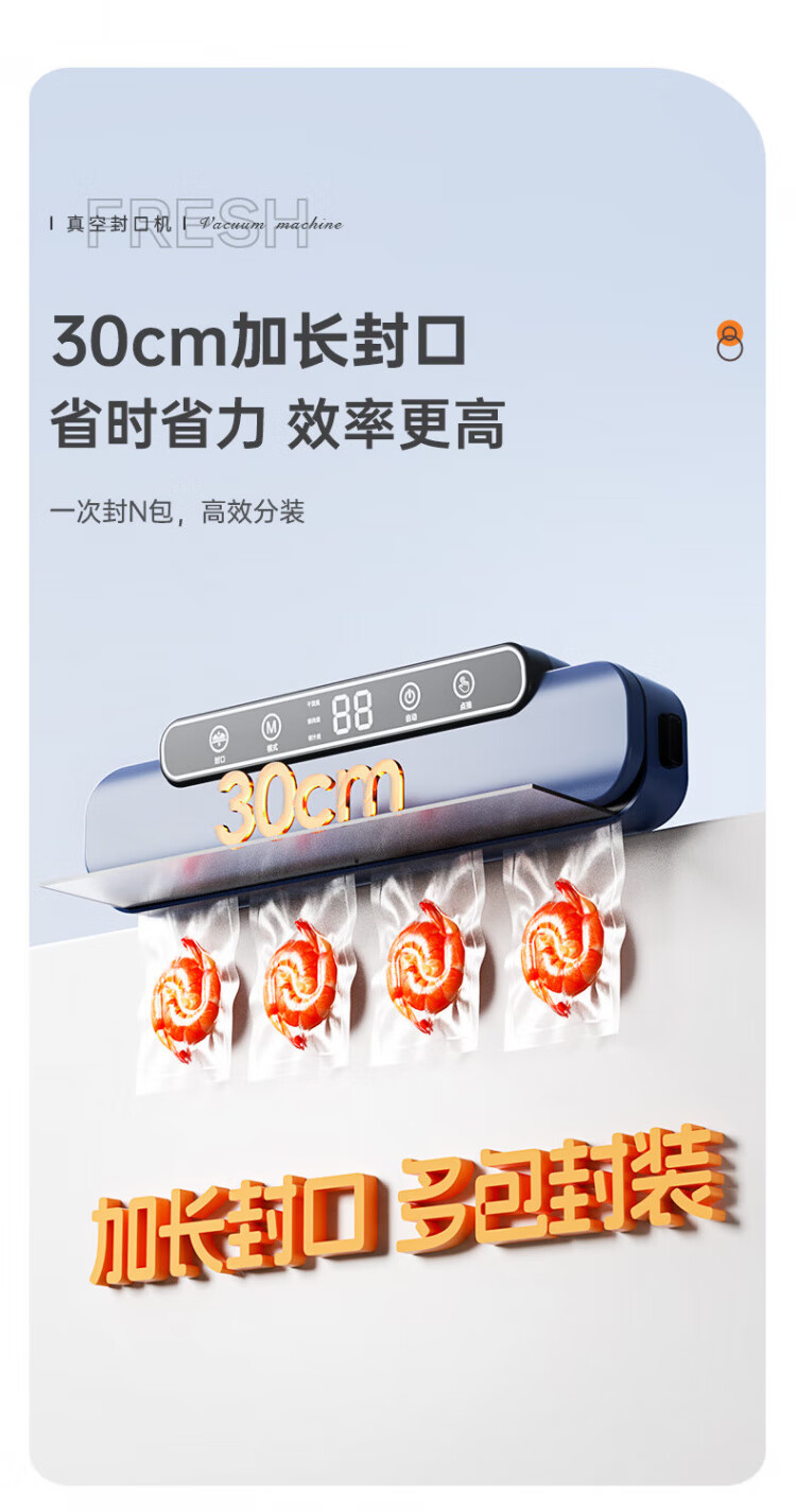 QCSK German vacuum sealing machine food dry and wet dual-use fresh-keeping compression vacuum packaging machine fully automatic high-power household commercial high-suction bag-free plastic sealing machine sausage bacon free 30 20*30 pattern bags intelligent display purple light sterilization