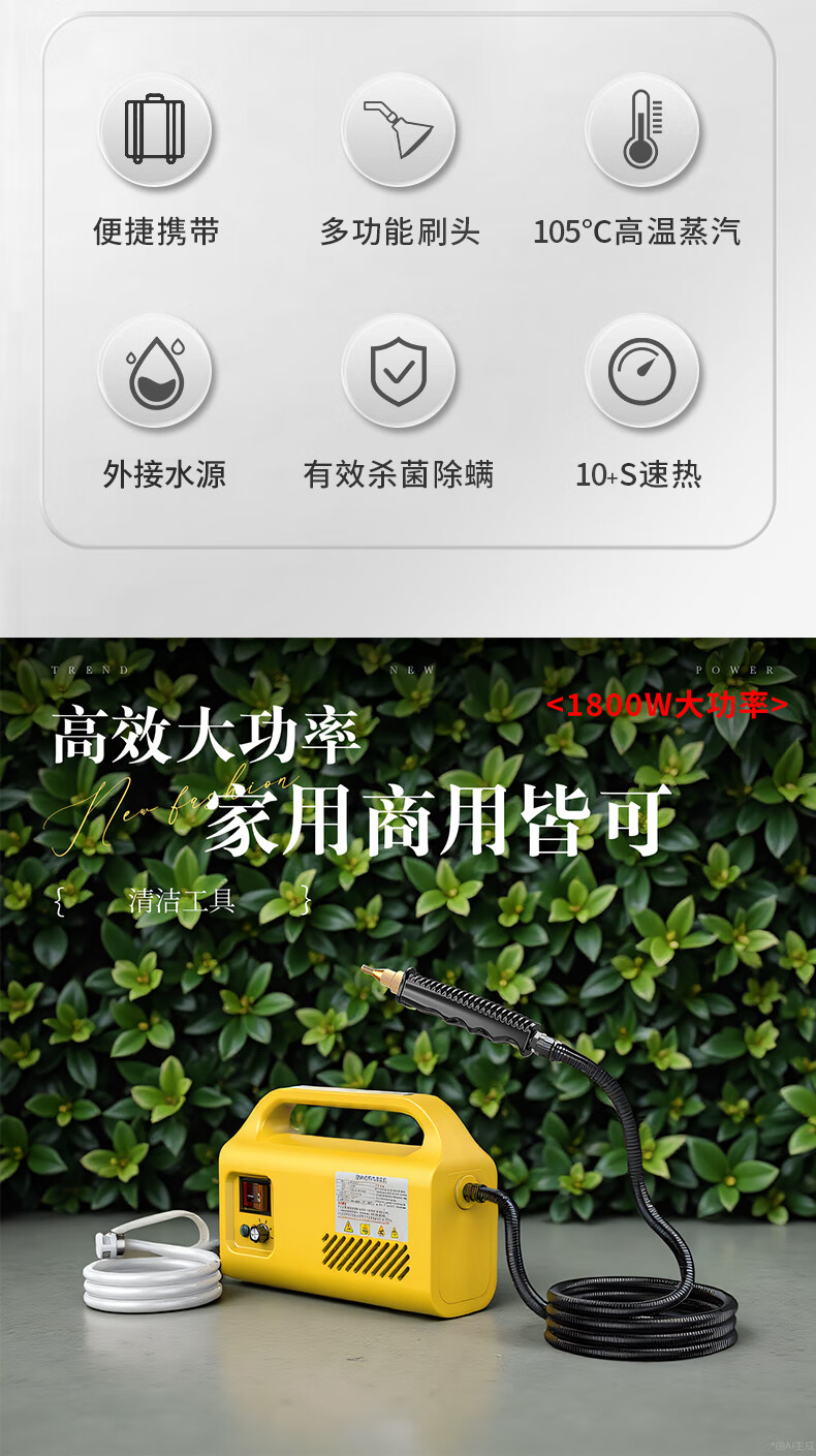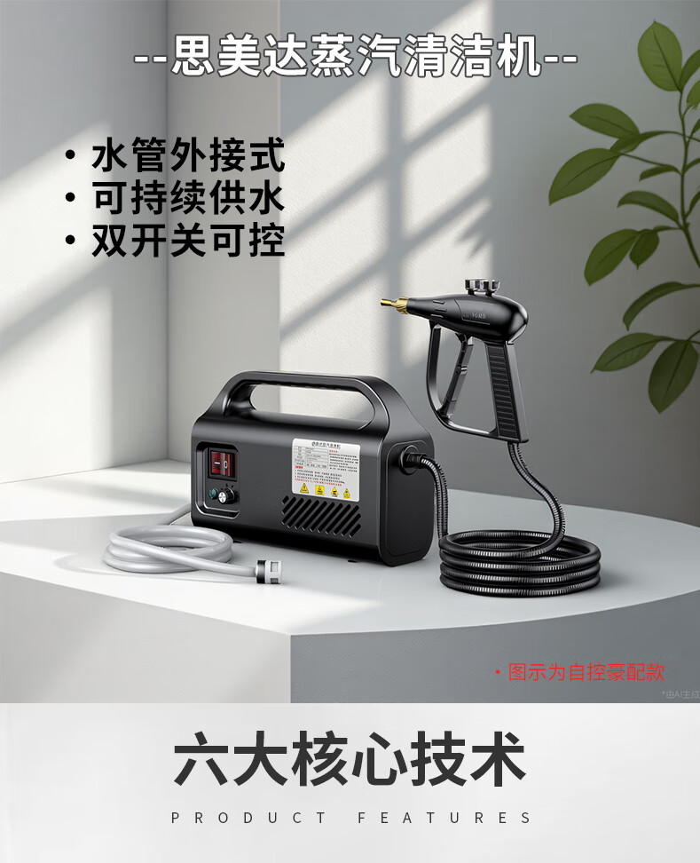 SMAYDA high temperature and high pressure steam cleaner, household kitchen range hood cleaning artifact, multi-functional commercial car washing machine, automatic spray gun, yellow, luxury equipment - start and stop + rich accessories