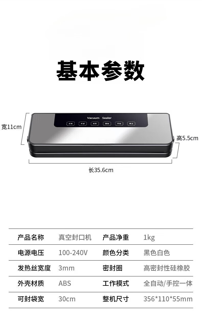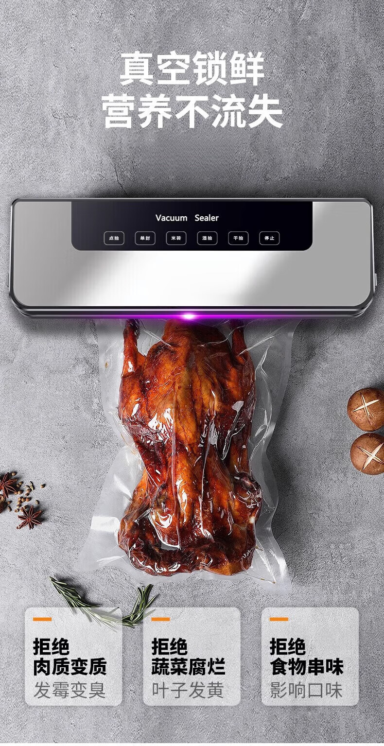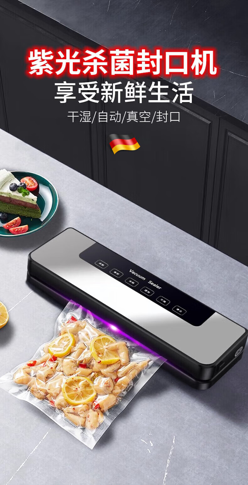 QCSK German vacuum sealing machine wet and dry household large suction food vacuum machine commercial large suction bag-free fully automatic vacuum packaging vacuum compressor sealing machine UV sterilization/dual pump large suction +30 vacuum bags