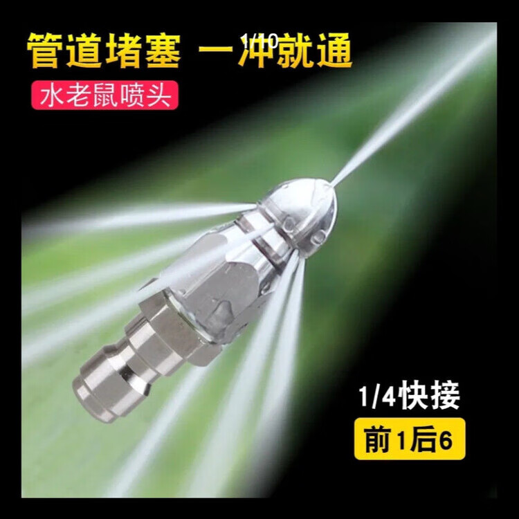 Mo Peng Shui Mouse High Pressure Nozzle Stainless Steel 1/4 Quick Plug Front One Rear Six Nozzles Sewer Pipe Cleaning German Quality Super Pressure One Rear Six Nozzles Quick Unblocking Water Mouse Front One Rear Six Nozzles Unclogging Artifact Grab