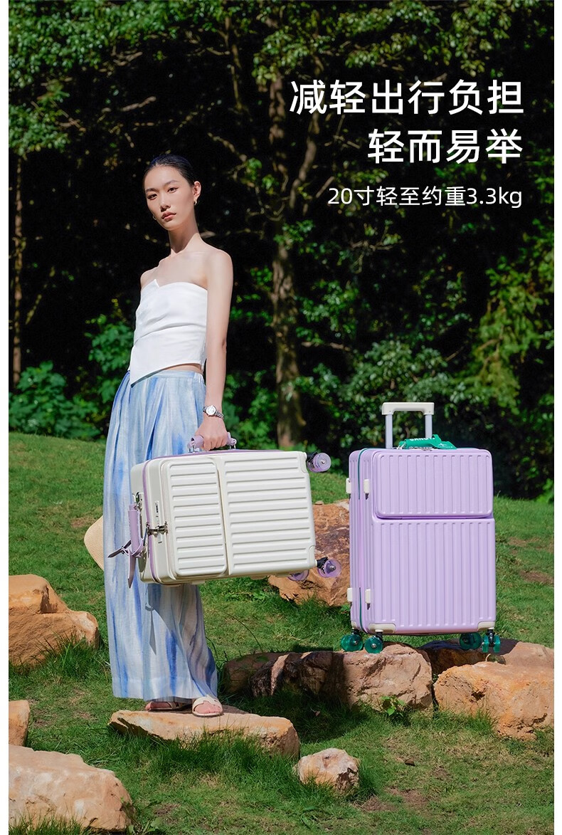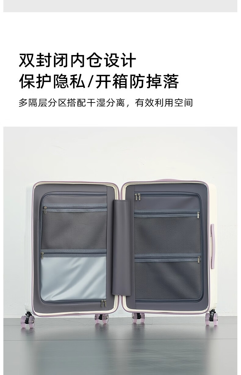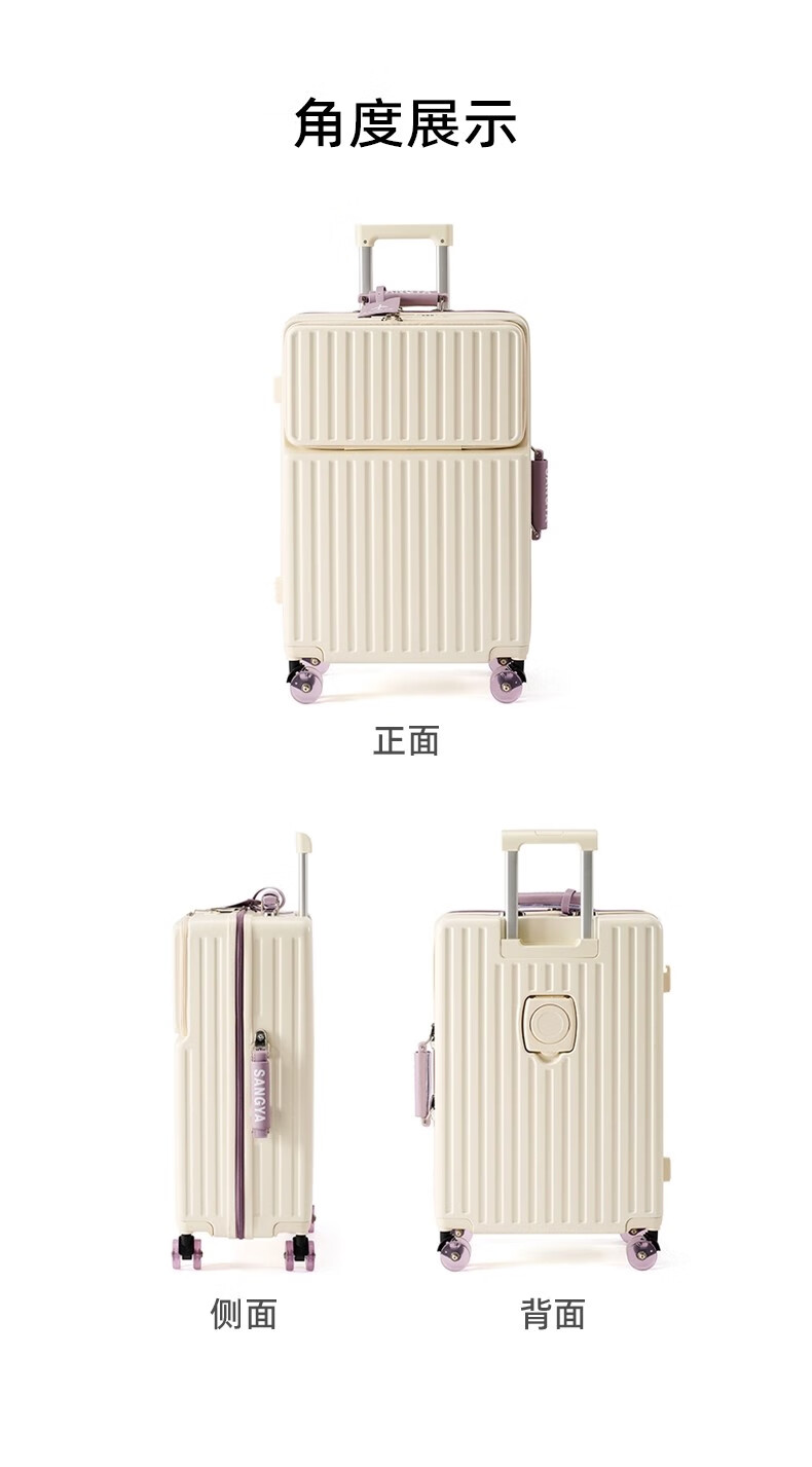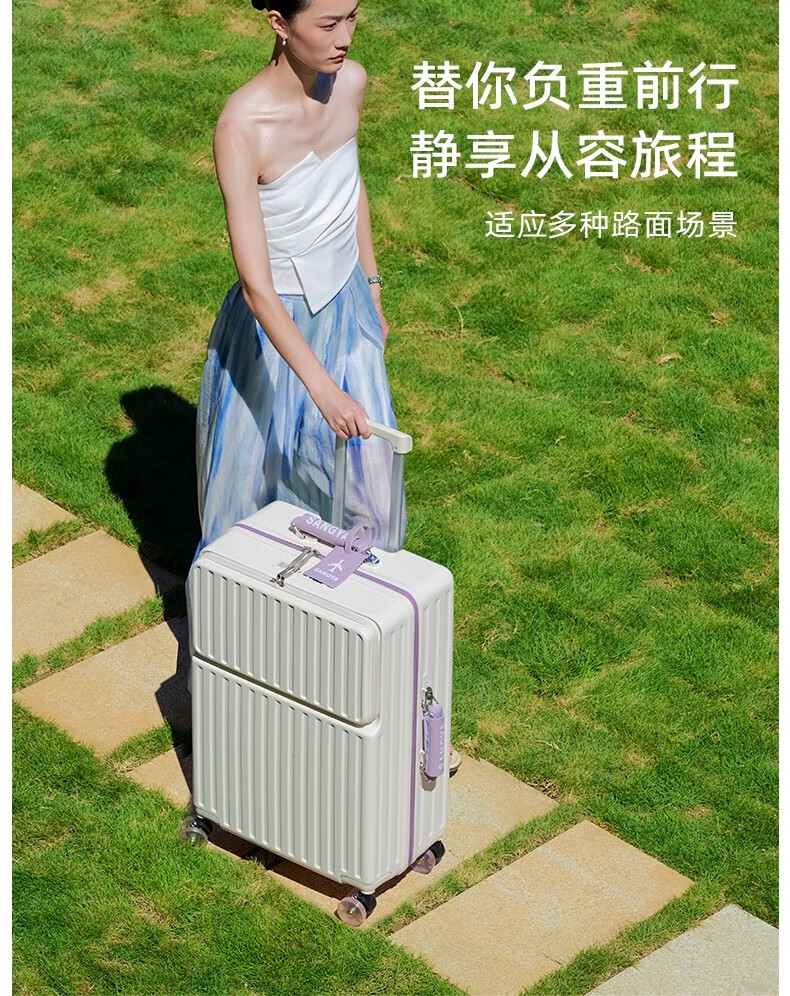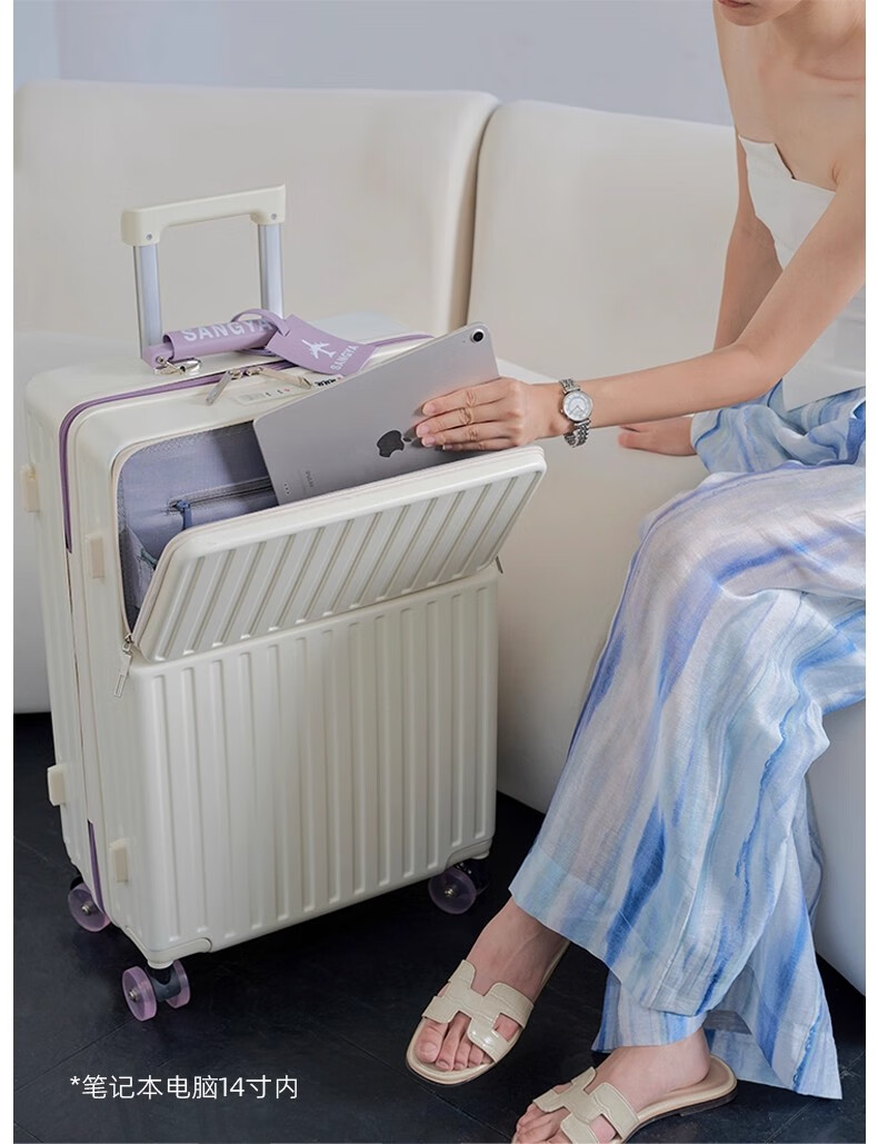 Luggage 2026 New Front Opening Skate Wheel Boarding Case 20 Inch High-Looking Travel Explosion-proof Zipper Multi-Function Milk White 20 Inch