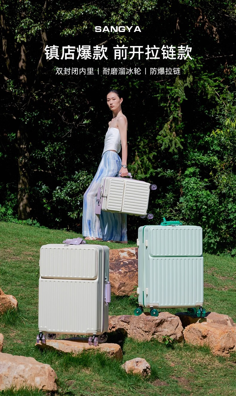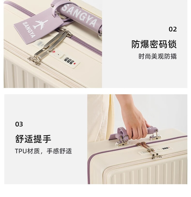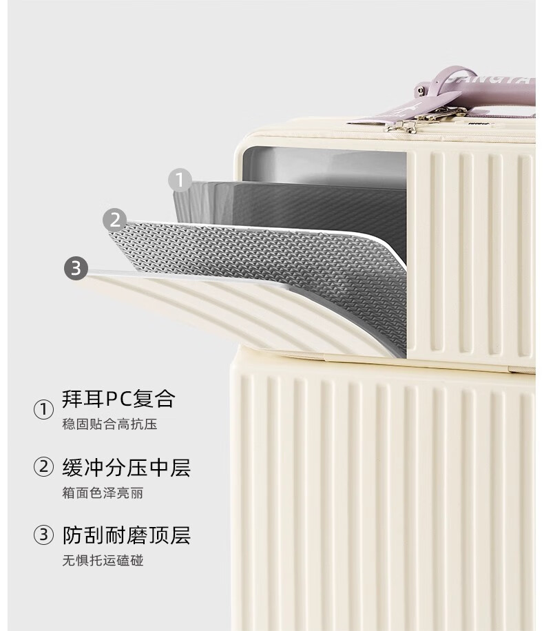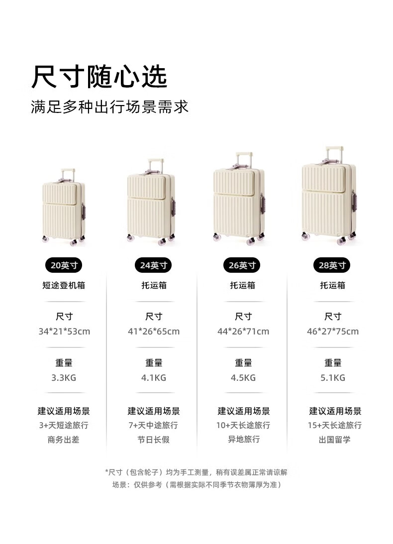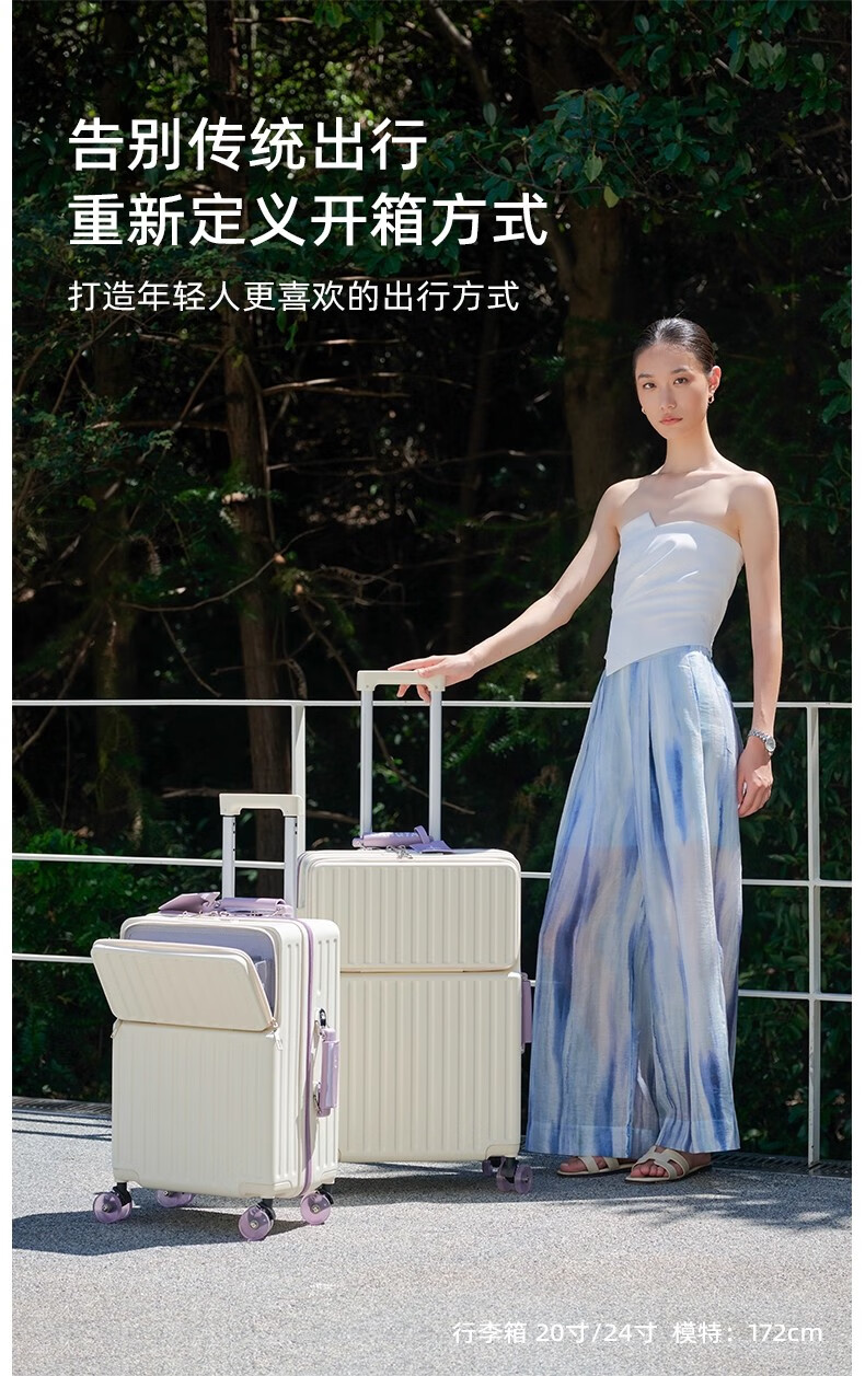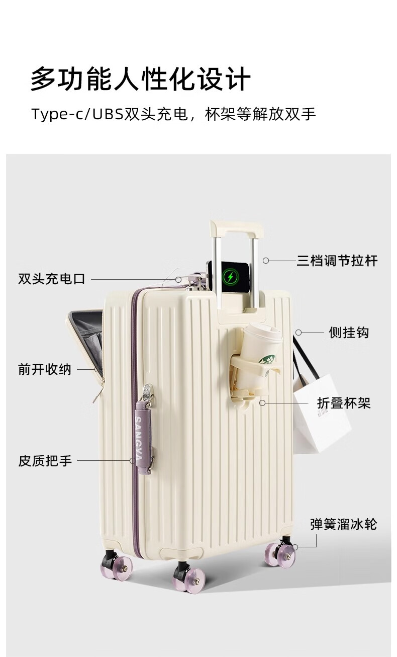 Luggage 2026 New Front Opening Skate Wheel Boarding Case 20 Inch High-Looking Travel Explosion-proof Zipper Multi-Function Milk White 20 Inch