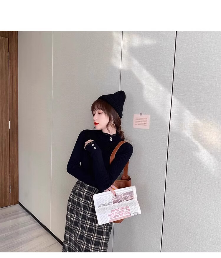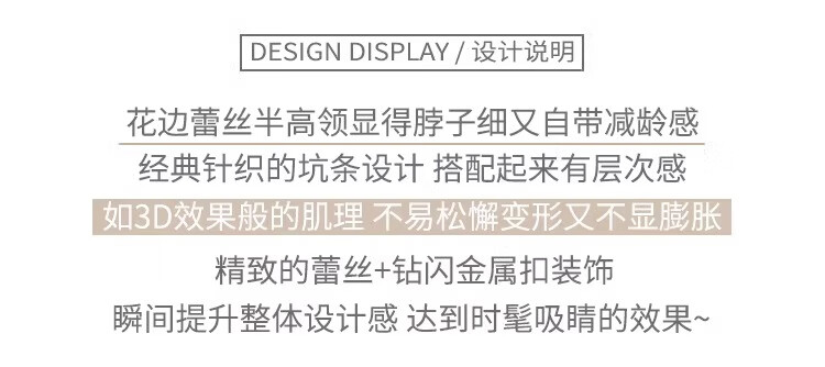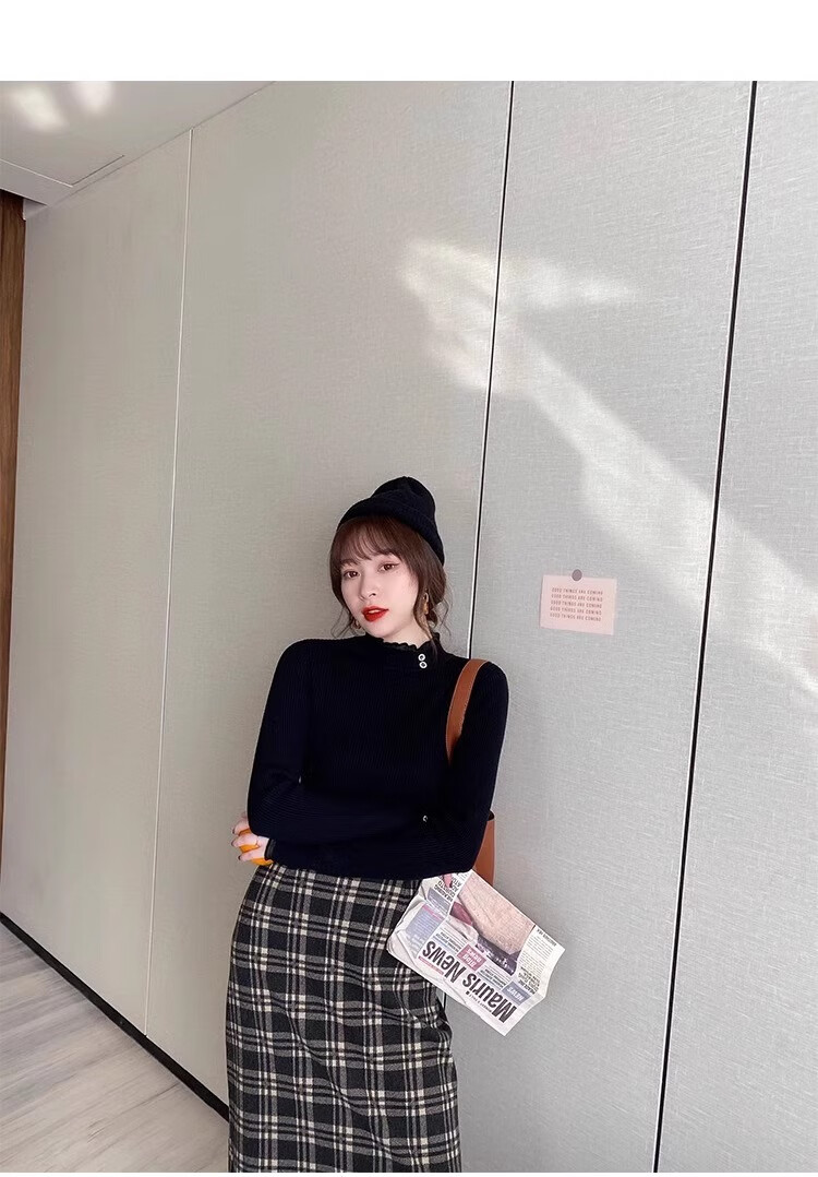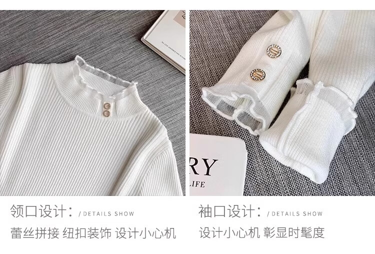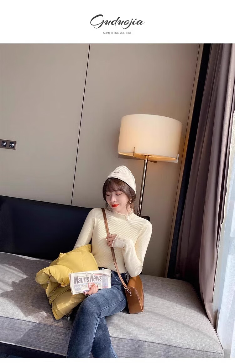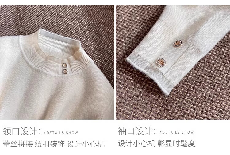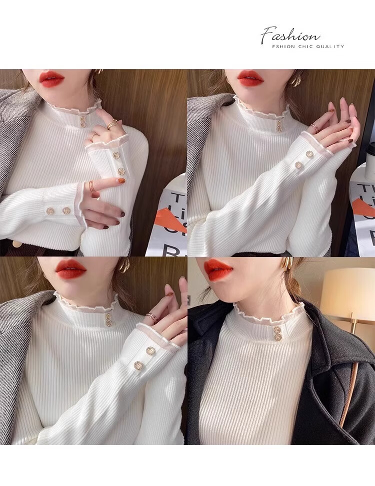 Lace half turtleneck bottoming shirt for women with knitted sweater tops slimming fungus pullover sweater MF92 apricot L Weight recommendation 110-128 pounds