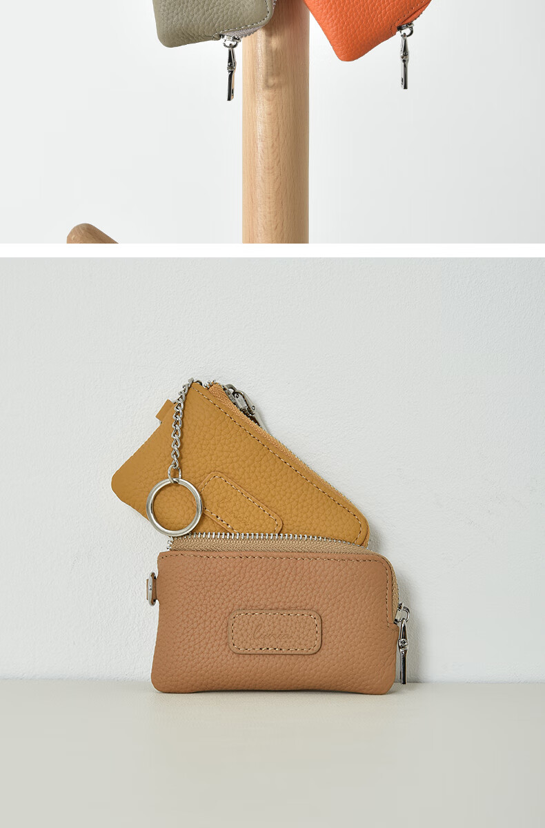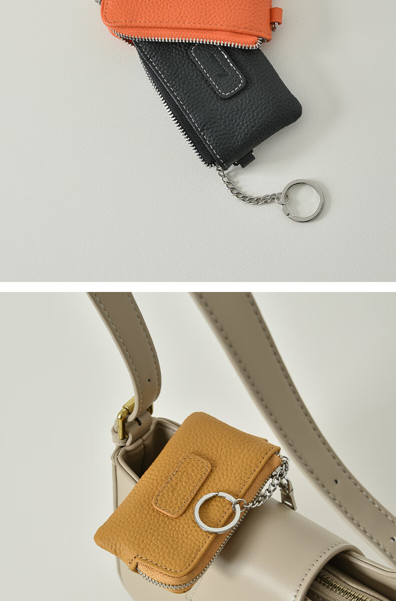 Lunia cowhide mini key bag, compact car key bag, access card key bag, portable ins card bag, biscuit color