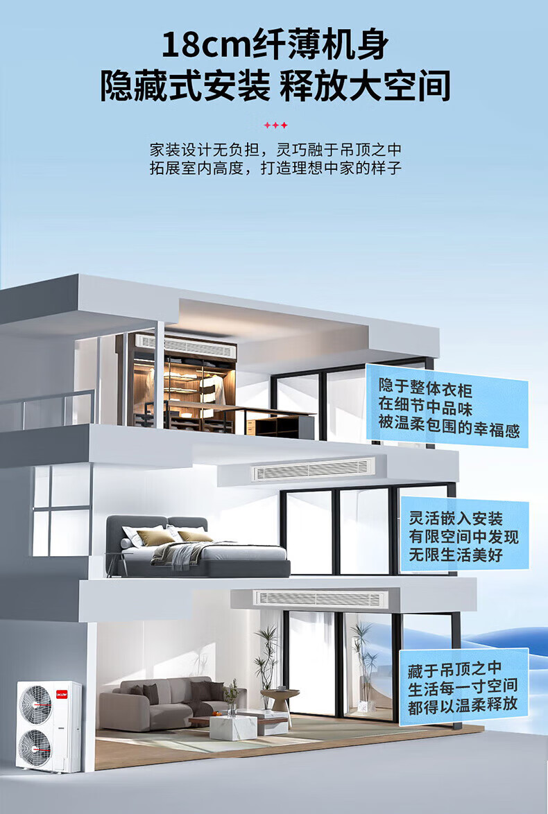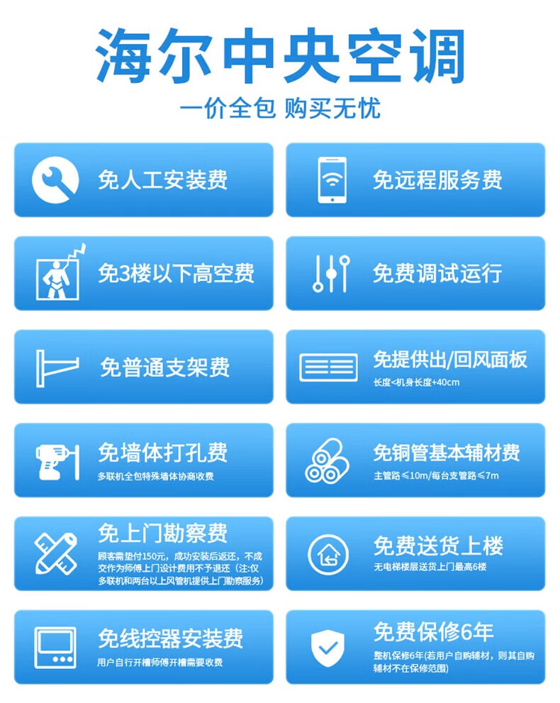 Haier offers an instant 15% discount on your order. Available nationwide. Central air-conditioning multi-split one-to-four fully DC variable frequency one-to-one energy efficiency living room produced by Zhijia. One-price all-inclusive. Leader Yuanqi 6 HP. One-to-four for three rooms and one living room. 120 double fans.
