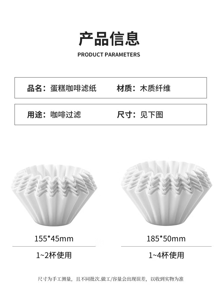 Puree cake-shaped coffee filter paper filter paper wave-shaped coffee filter hand-brewed coffee drip type cake-shaped filter paper large size 25 sheets