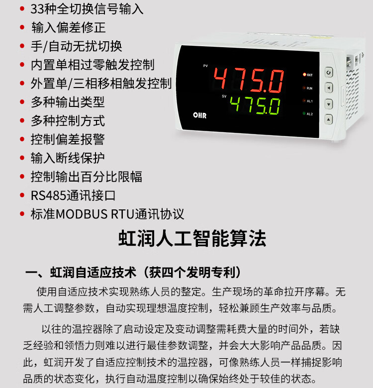 Hongrun temperature controller digital display temperature controller intelligent pid regulator industrial constant temperature and pressure digital display meter A300 PID thermostat 1 control output + 2 alarm
