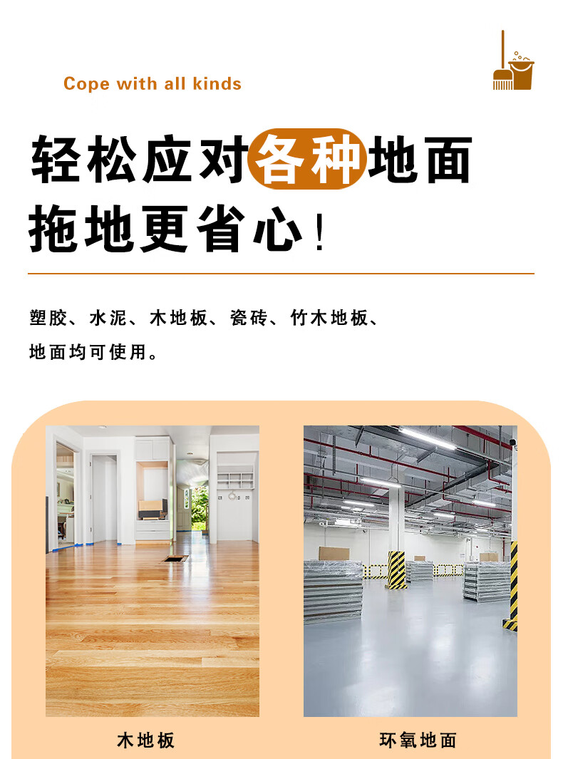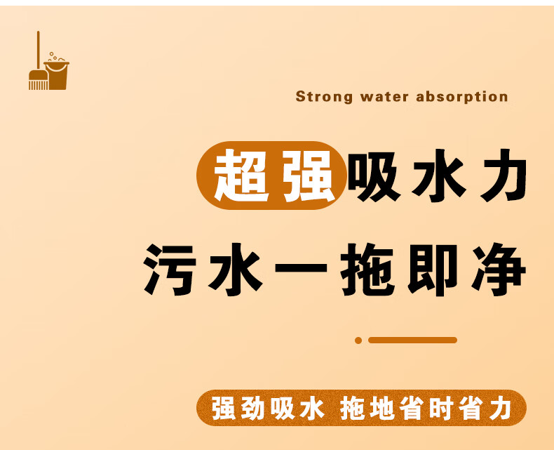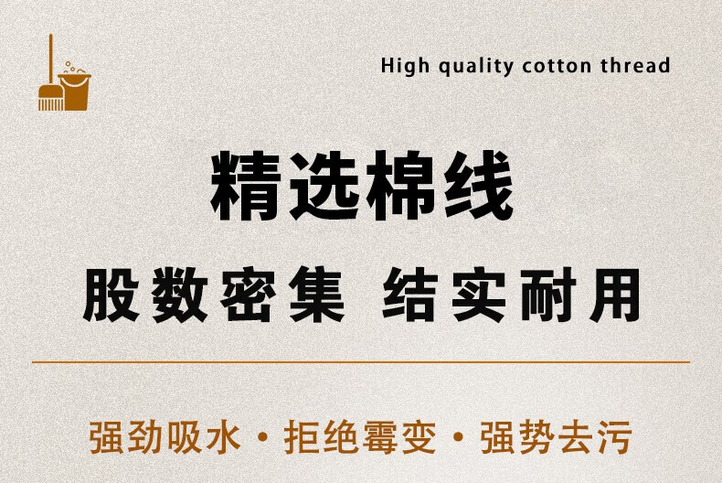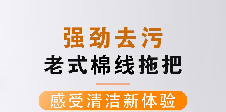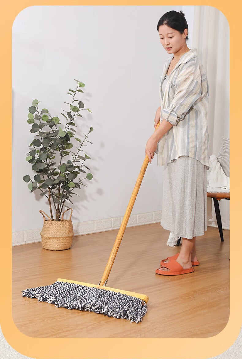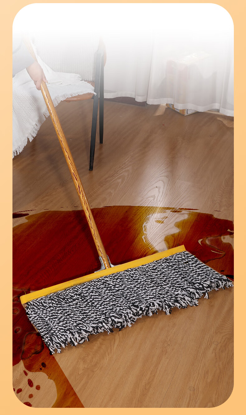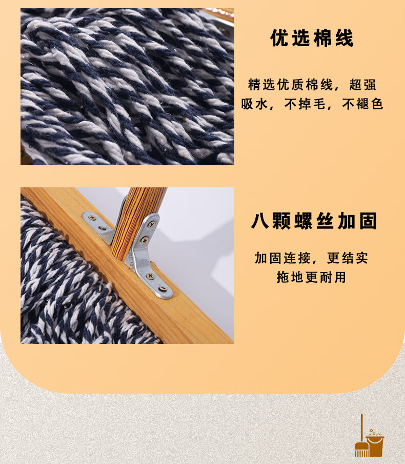 Wood pole industrial mop, old-fashioned round head mop, absorbent cotton thread, wet and dry public toilet cleaning factory supermarket, white line enlarged round head mop